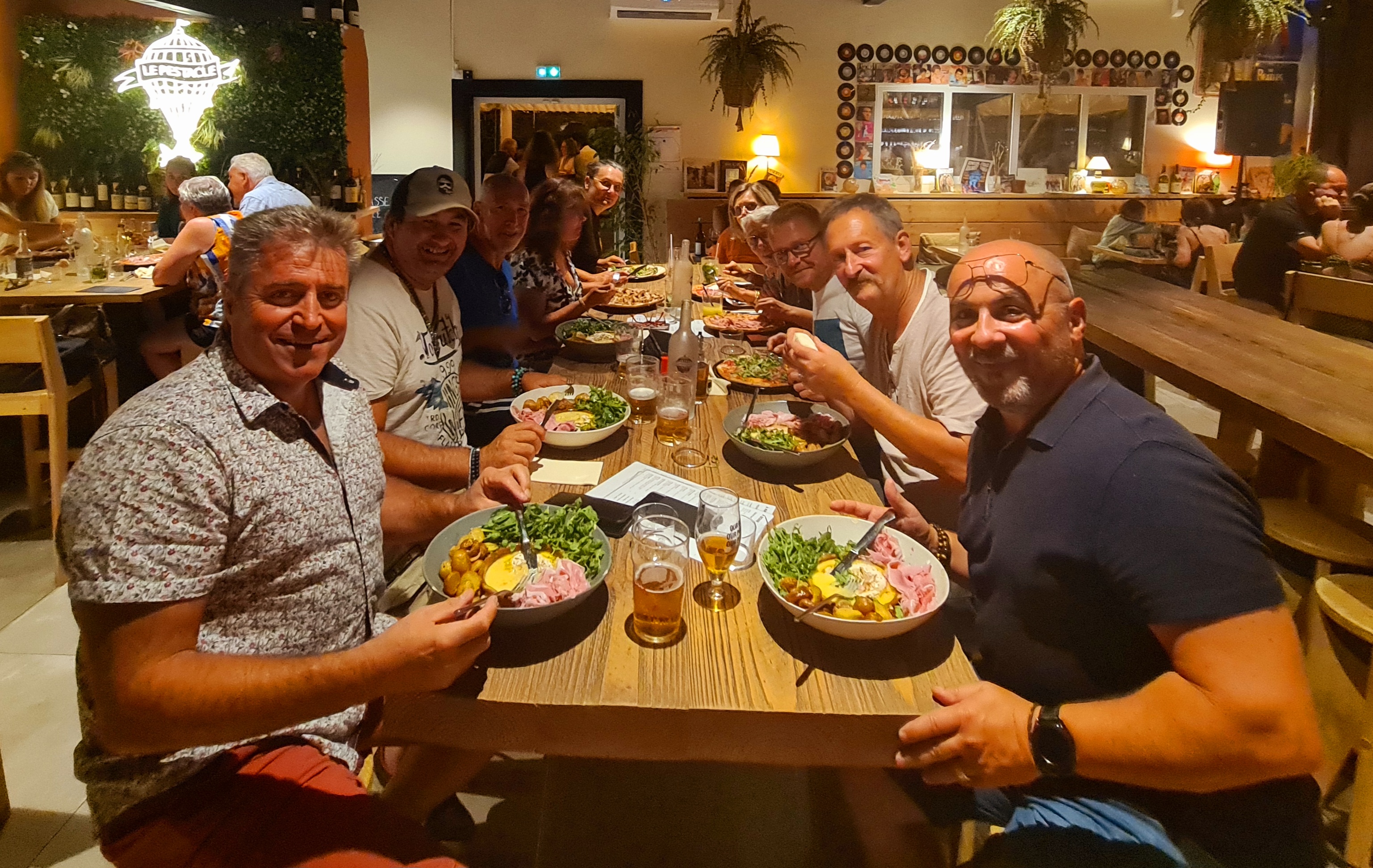 Arrivé dans le bassin mercredi il était évident que le mercredi soir nous allions déguster notre côte de cochon grillée au feu de bois avec des pommes de terre grenailles , top niveau et ce vendredi midi nouveau menu. Asperges et son crémeux de petits pois Oeuf parfait et sa crème de champignons pleurotes Poitrine de veau confite et sucrine rôtie Chocolat liégeois à leur façon Tarte aux citrons à leur façon. Bref bravo au nouveau chef c'est top niveau. Merci à vous tous pour votre l'accueil l'ambiance est chaleureuse. Merci à toi Lou pour ta gentillesse et générosité dans ton accueil et tes conseils. Merci à tous. On est jamais déçu