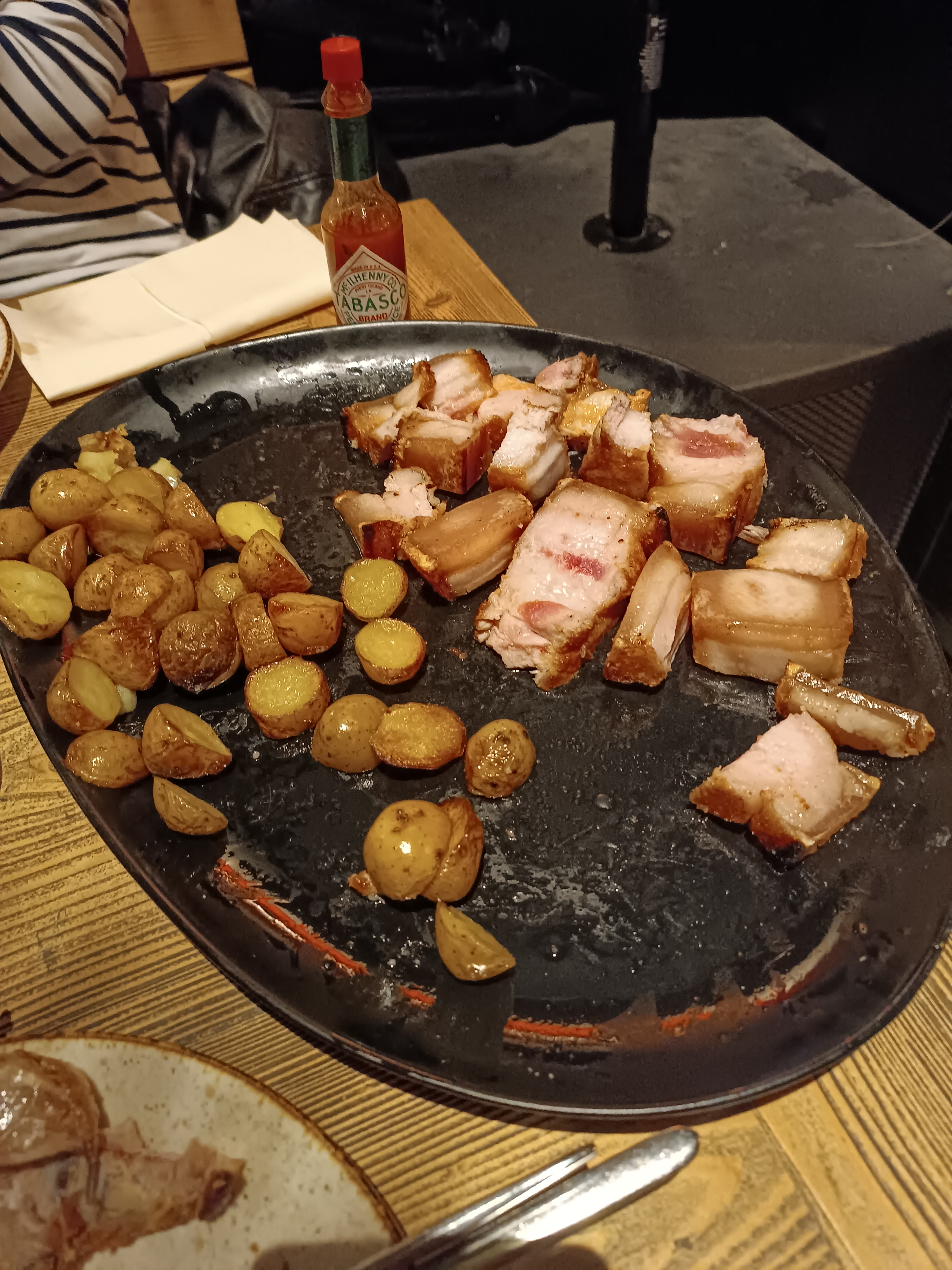 Très très déçus ! Conseillés par un restaurateur du coin, nous voilà au restaurant Pestacle. Installés, nous commandons tapas et un bon vin argentin. L'appétit venant en mangeant, nous commandons une côte de cochon ibérique, pas donnée mais ibérique. 1,2 kg, accompagnée par des pommes de terre. 55 euros. Une fois sur la table, déception, elle est très, très, très grasse. Peu de viande à manger, Et beaucoup de gras laissé dans nos assiettes. Dommage que, après nous avoir posé la traditionnelle question ça c'est bien passé , notre réponse n'ait pas plu. En guise de réponse à notre remarque c''était trop cher, il n'y ait eu que du dédain. Moralité : évitez la côte de cochon !