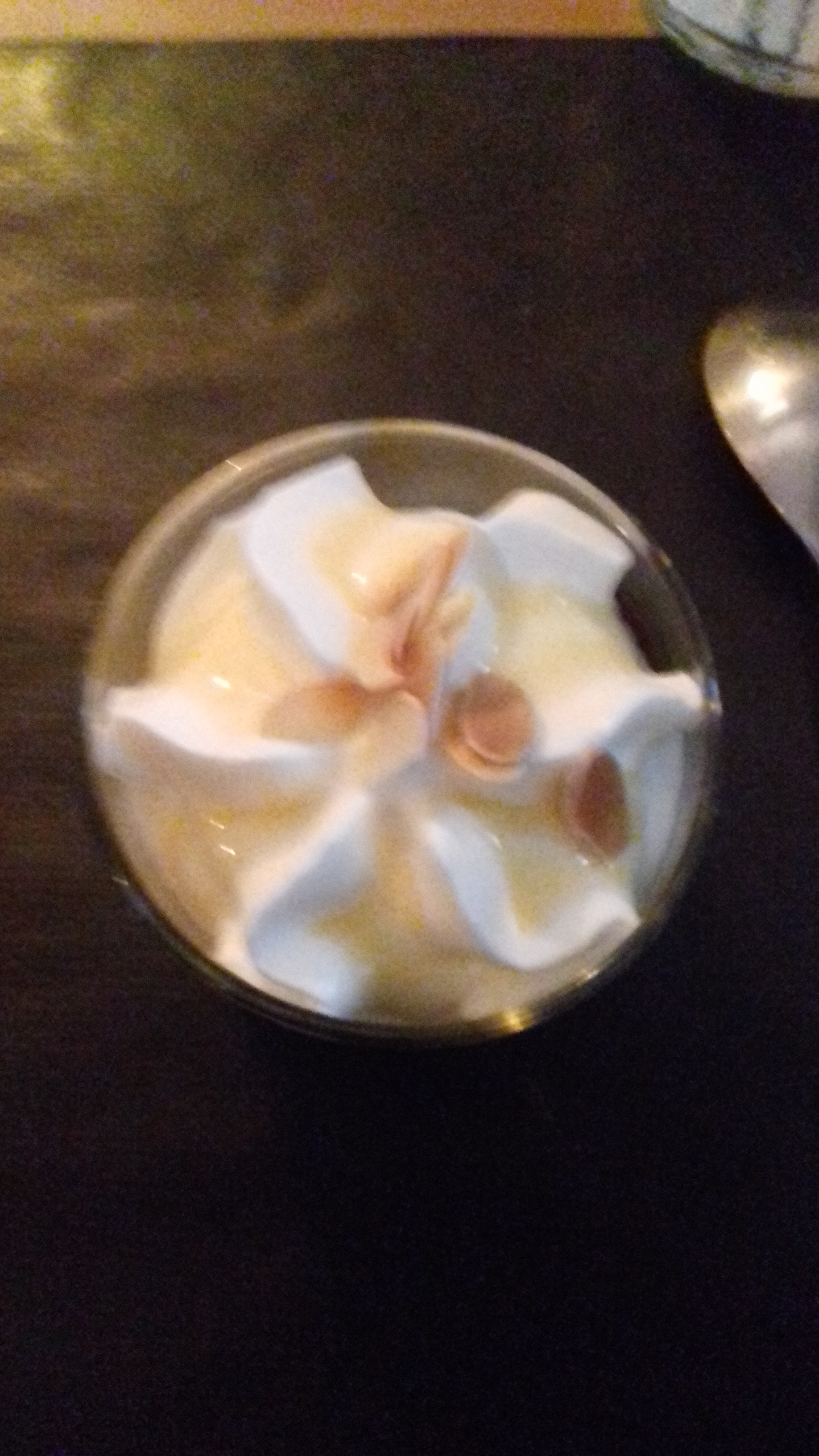 Petit resto vraiment très sympa et surtout avec une cuisine du jour excellente, je me suis régalé, j'ai pris le poulet Bio sauce Teriyaki-Riso (14,90€) parfait au niveau des saveurs, top ! et en dessert une verrine façon Banofee, banane, caramel beurre salé, mousse mascarpone vanille et sablé breton (8,90€), juste EXCELLENT :)
