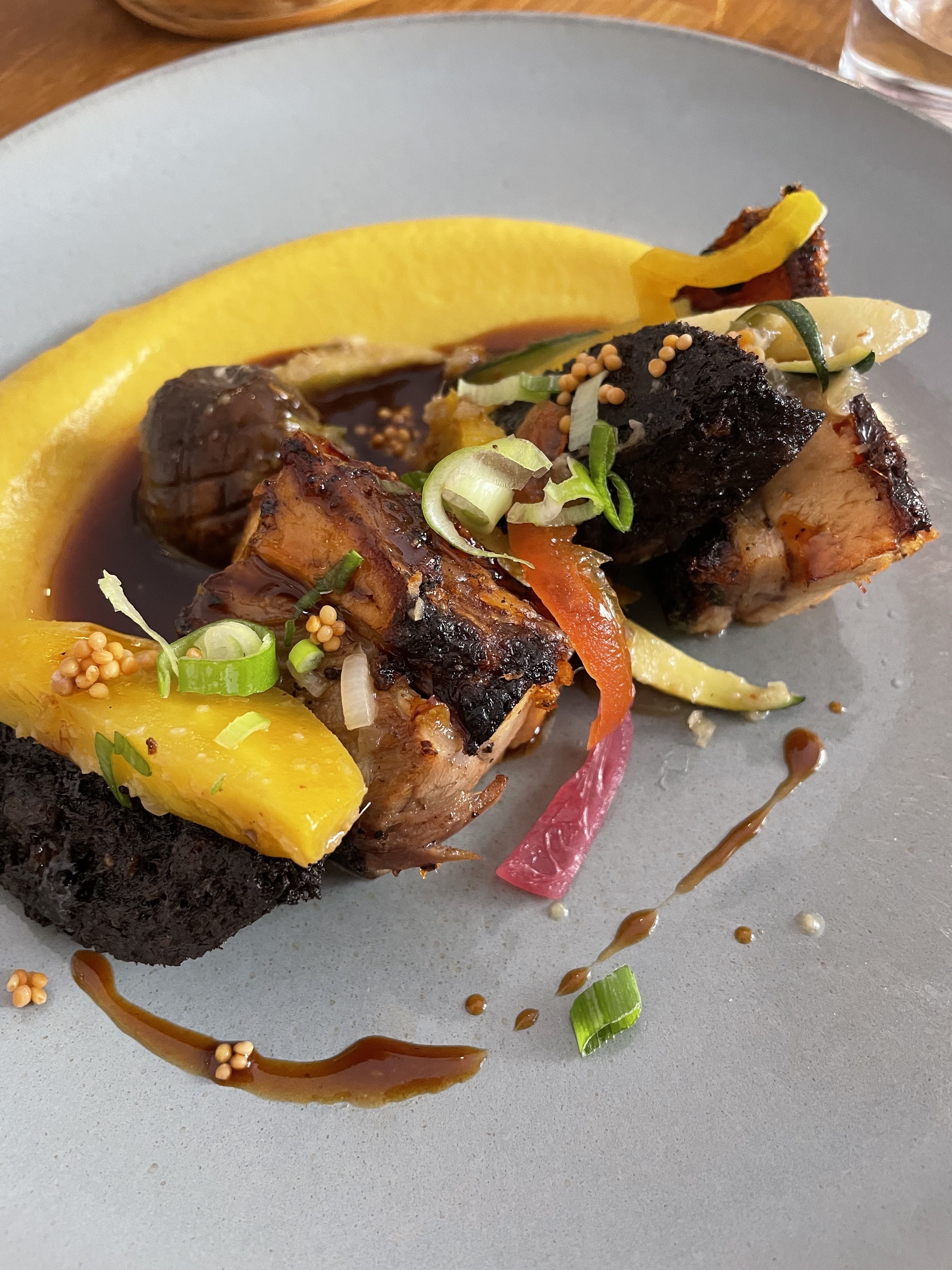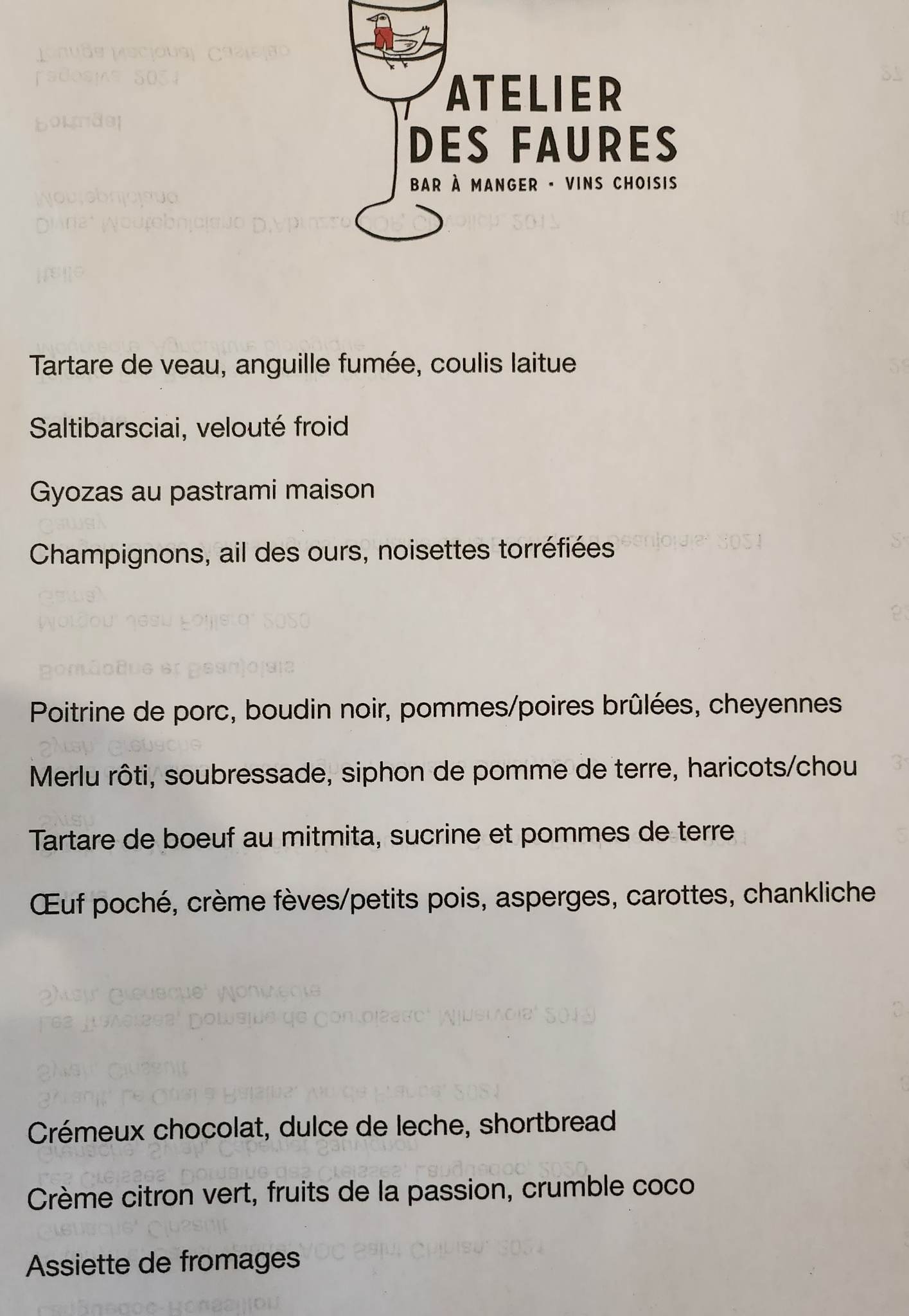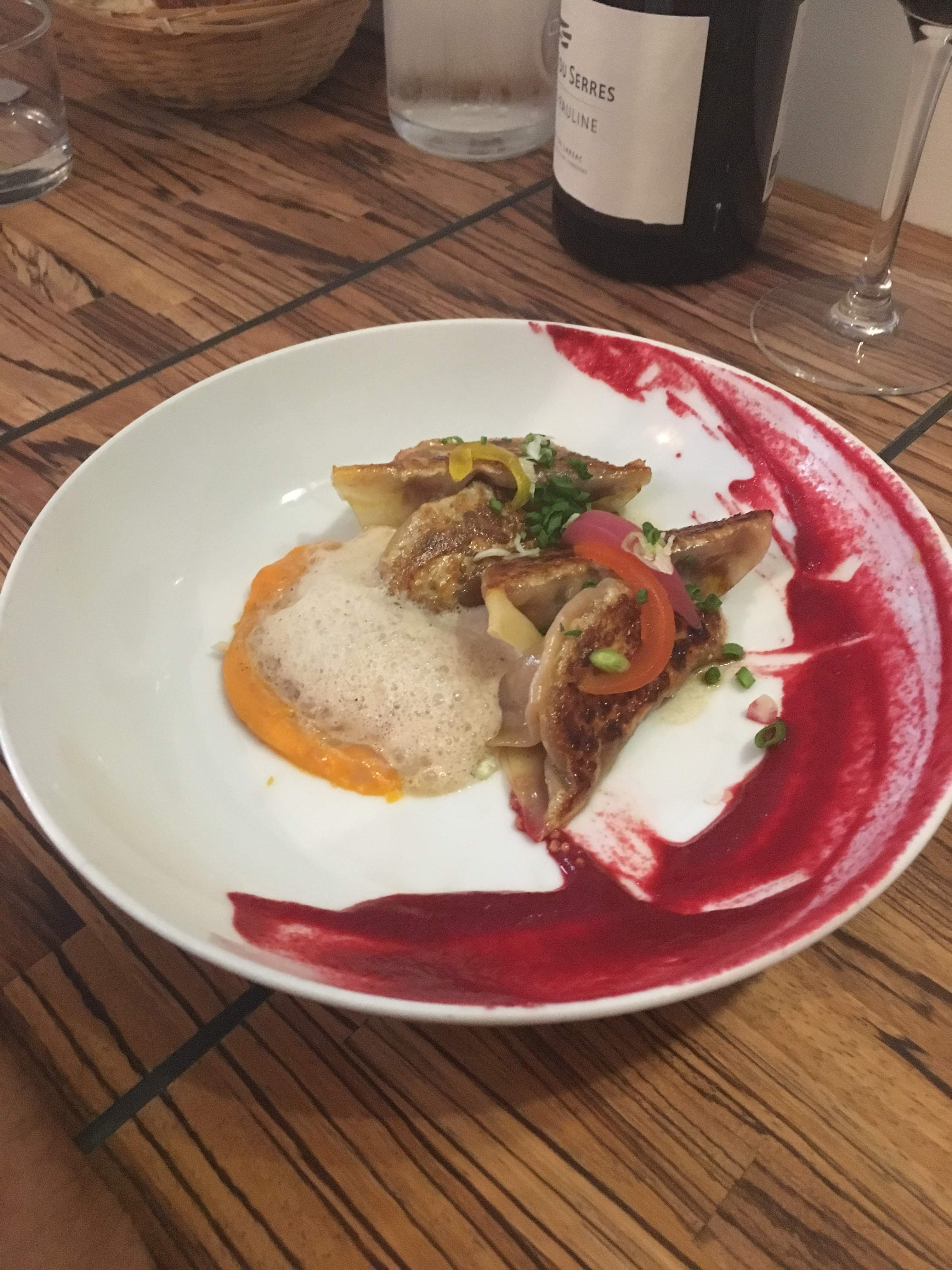 😋 Gros coup de cœur resto piur l’Atelier des Faures où le chef Roman Winicki twiste avec brio des plats bistrot canaille avec des saveurs d’Asie et d’orient ! — Ce soir là : 🥟 Gyozas au pastrami 🐮 Tartare de bœuf aux épices mimita et pâtes soba 🐂 Tataki de bœuf, PDT, jus de veau aux huîtres 🍋 Crème citron, fruit de la passion, fruits secs et sablé