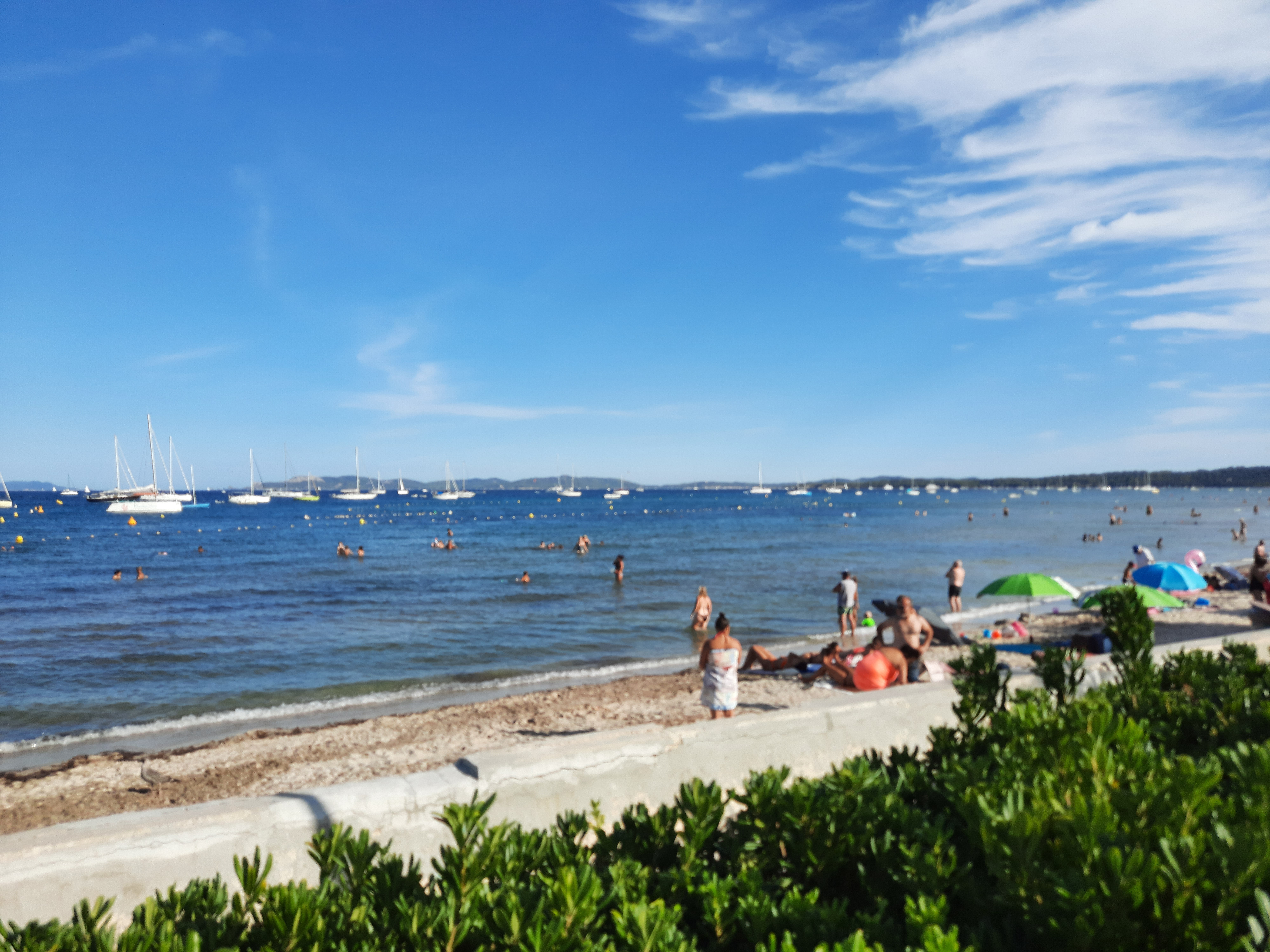 Un restaurant au bord de mer ... vue sur les îles d'or ...Belle terrasse ombragée Sauf que nous sommes sortis 3h après notre arrivée Service très lent et pas attentif aux demandes des clients Plats moyens et cuisinier débordé Cetait un lundi donc service restreint selon un des serveurs qui était désolé pour nous