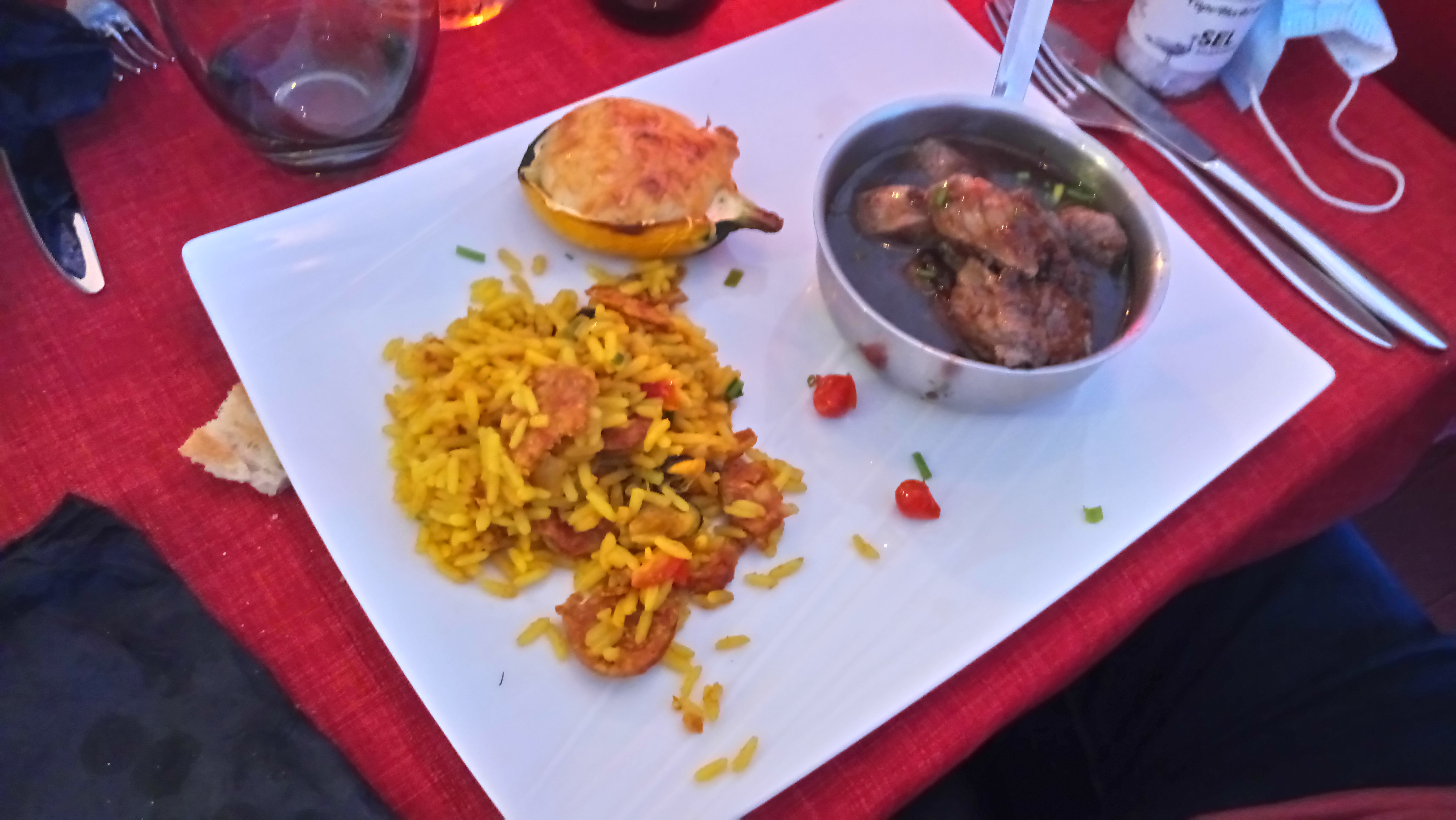 Excellent ! Superbe paella ! Je vous conseille d'en prendre seulement une pour 2 personne lors de votre choix car le plat est assez conséquent. Sinon j'ai adoré le moelleux au chocolat pas du tout lourd, très léger.