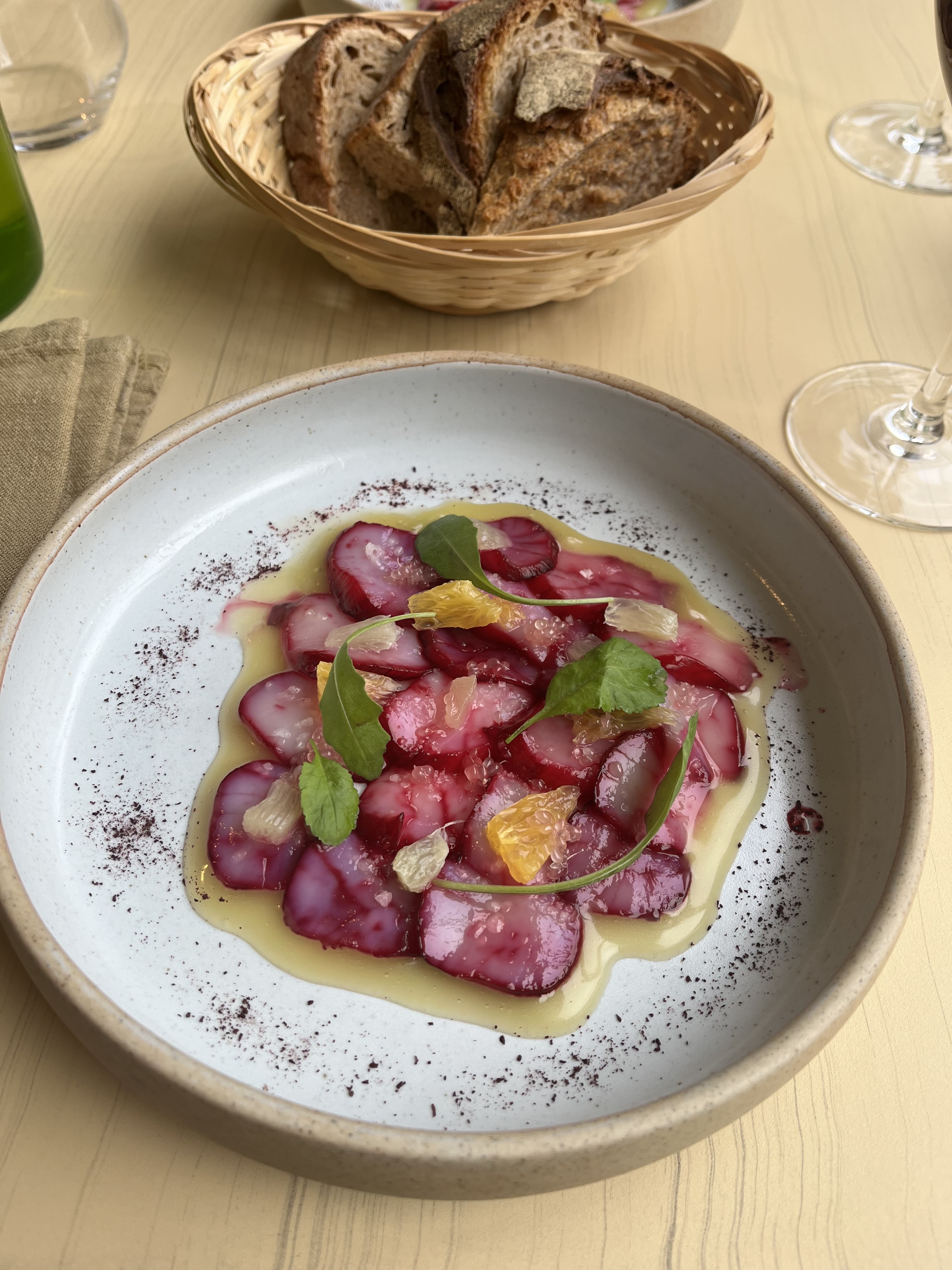 Je suis déjà venue une fois il y a un mois et demi mais je n'avais pas bien goûté ahah Donc je suis revenue. Toujours aussi magnifique. S'il subsistait encore un doute, à présent, c'est une certitude. J'en parle autour de moi... Plats frais ; Cuisinés maison. De saisons. Produits locaux ; en circuit court. Pareil les boissons. Locales si possible. Tout est incroyable. Service remarquable. Le responsable de salle (et peut-être aussi associé ou co-fondateur) connait la carte et les produits sur le bout des doigts. Il prend le temps d'expliquer à chaque fois le concept du restaurant, la provenance des produits... Etc. C'est tellement agréable. Tout est parfait et unique. Visuellement comme gustativement. Même le pain est à tomber par terre _ et pour cause. Longue vie à ce beau restaurant. Je recommande vivement. Sans parler du fais que les prix sont tout à fait raisonnables. Nous reviendrons vite.