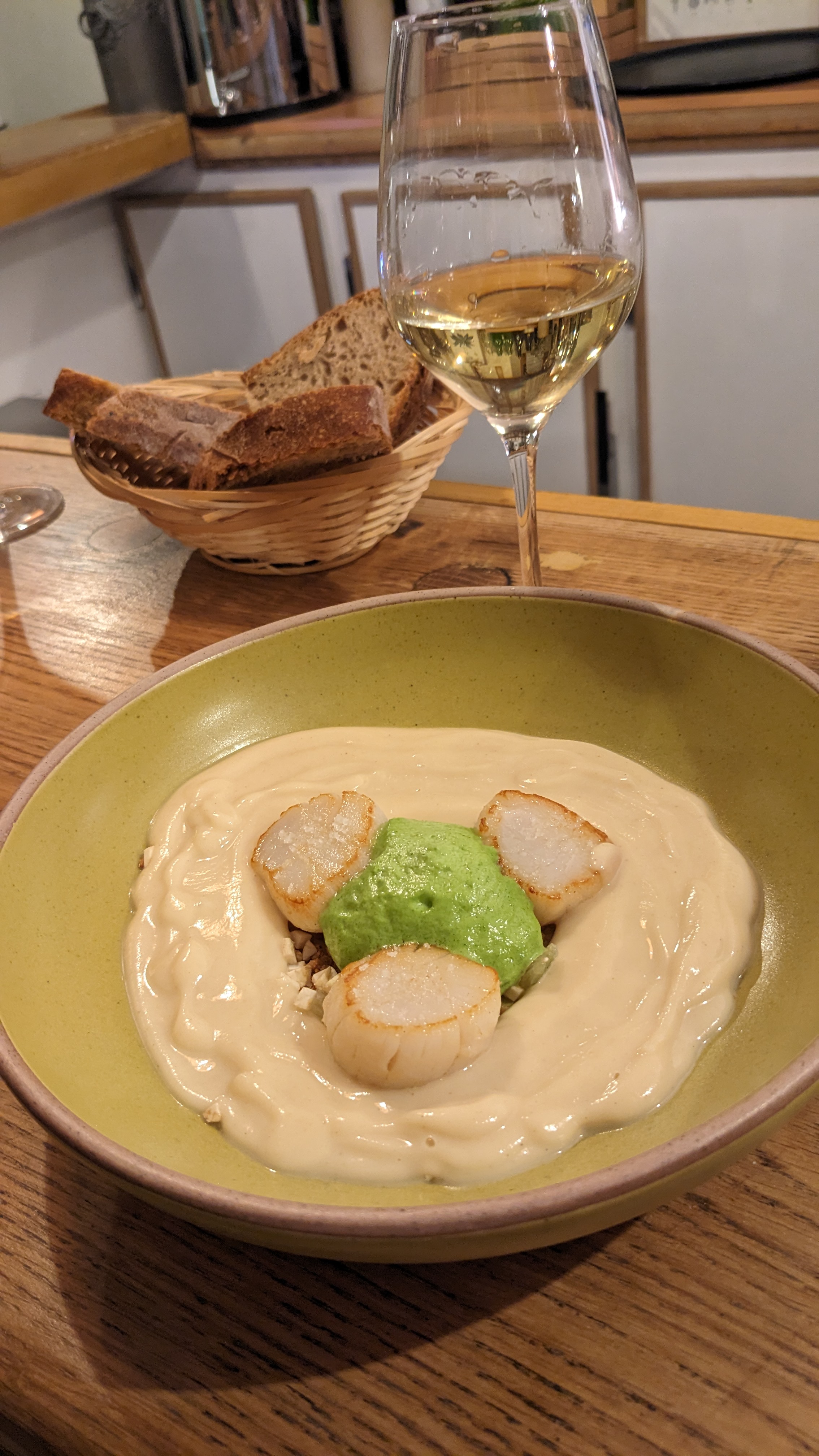 On c’est régalé ! De l’amuse bouche au dessert, tout était fin, travaillé et goûtu. Des produits frais et local. Une équipe de bon conseil. Une décoration et un repas au comptoir agréable. Merci