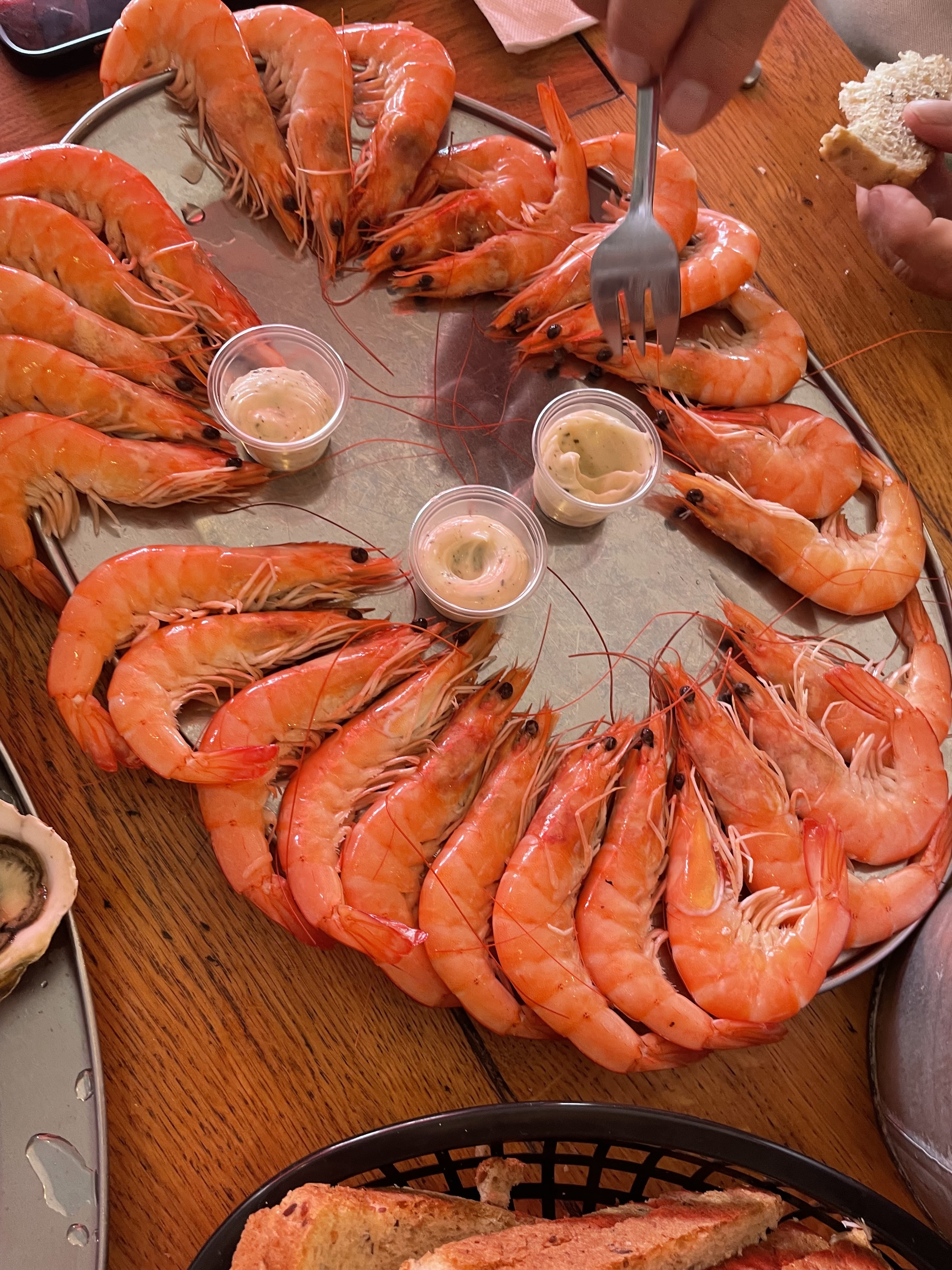 Huitres, crevette, moules a volonté de 10 a 12 h. Avec 25 CL de vin, 24 € Fruits de mer frais.