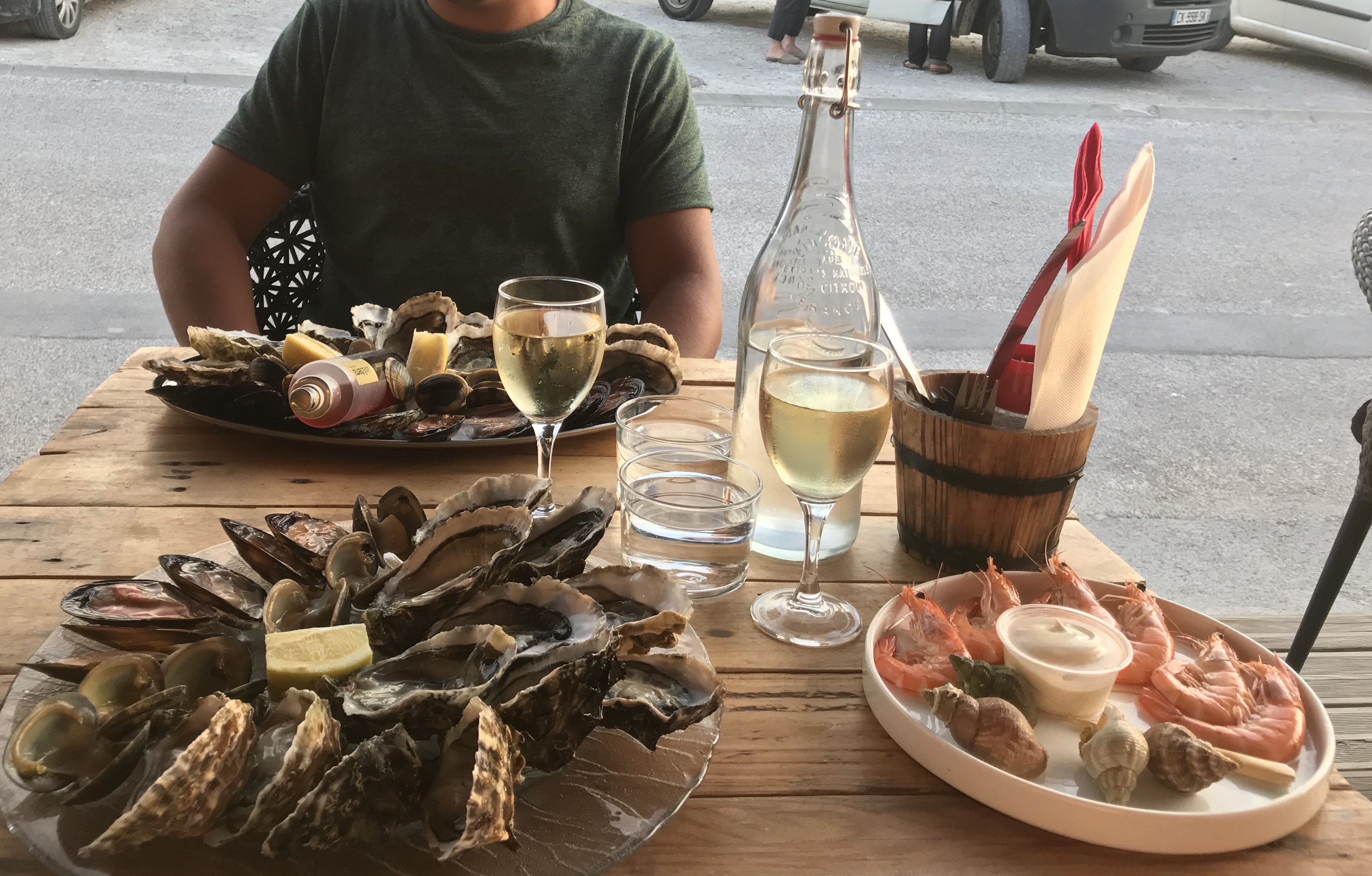 Magnifique...!!!!! assiette huîtres (extra) crevettes, bulots....(extra...) aïoli,pain, beurre,muscat doux...mais pas que...super accueil, playlist Sting(ce soir)super soirée merci!!!! excellent rapport qualité prix 👍 dorénavant ce sera mon bouchon....