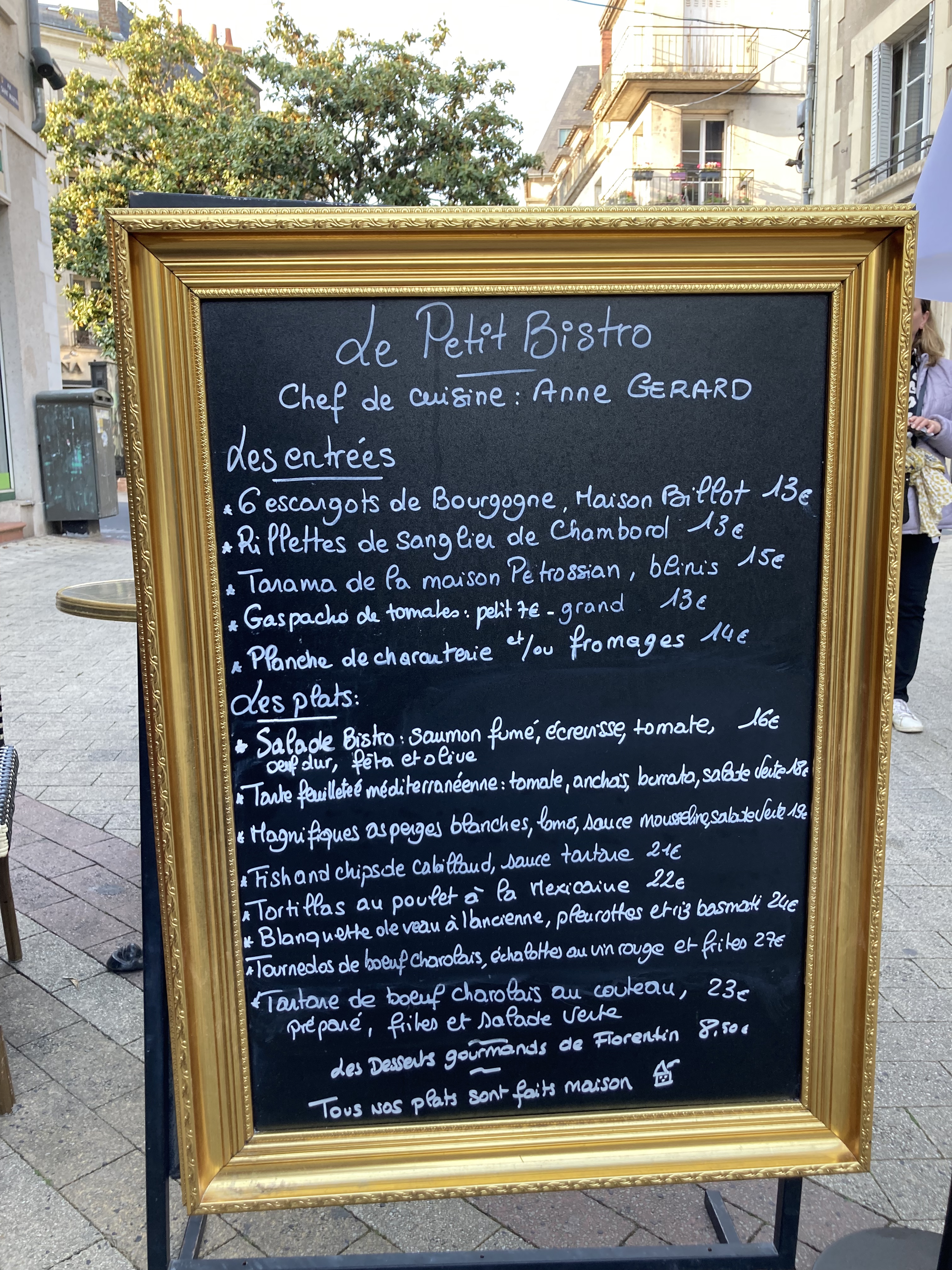 Lors de nos vacances à Blois chez notre famille, nous les avons invité au restaurant. Mon beau-frère allant régulièrement dans ce restaurant, nous avons fait confiance. La composition de la salade Bistro ne correspondait pas à ce qui était indiqué sur l'ardoise. Quantité très juste et à l'arrivée une facture très salée. Au final nous avons été très déçu.