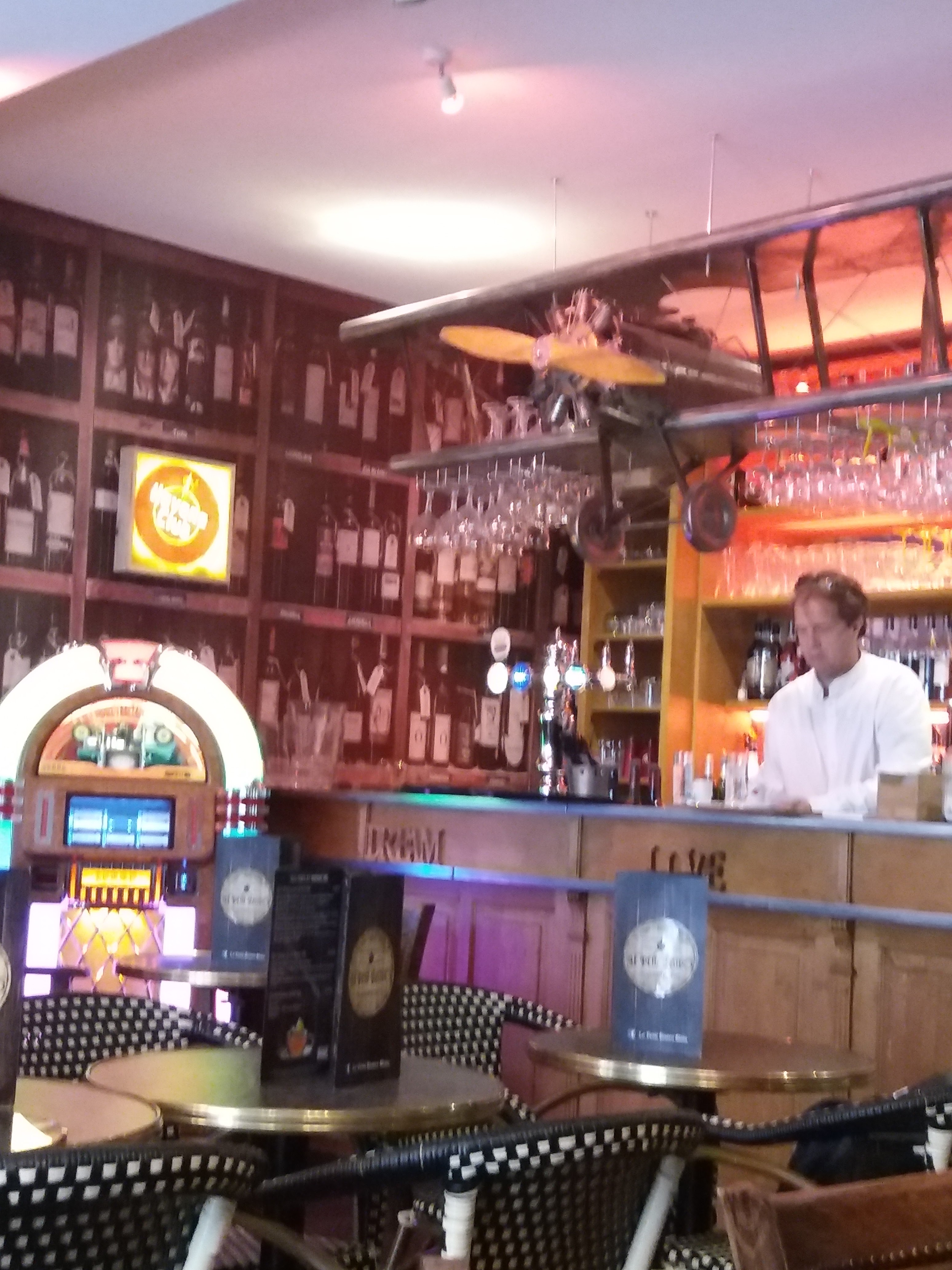 Superbe deco, tout confort, la play liste du vieux juke-box est top. C est un lieu très agréable, la carte avait l air très appétissante, j'ai juste eu le temps de goûté les escargots en guise d apero.