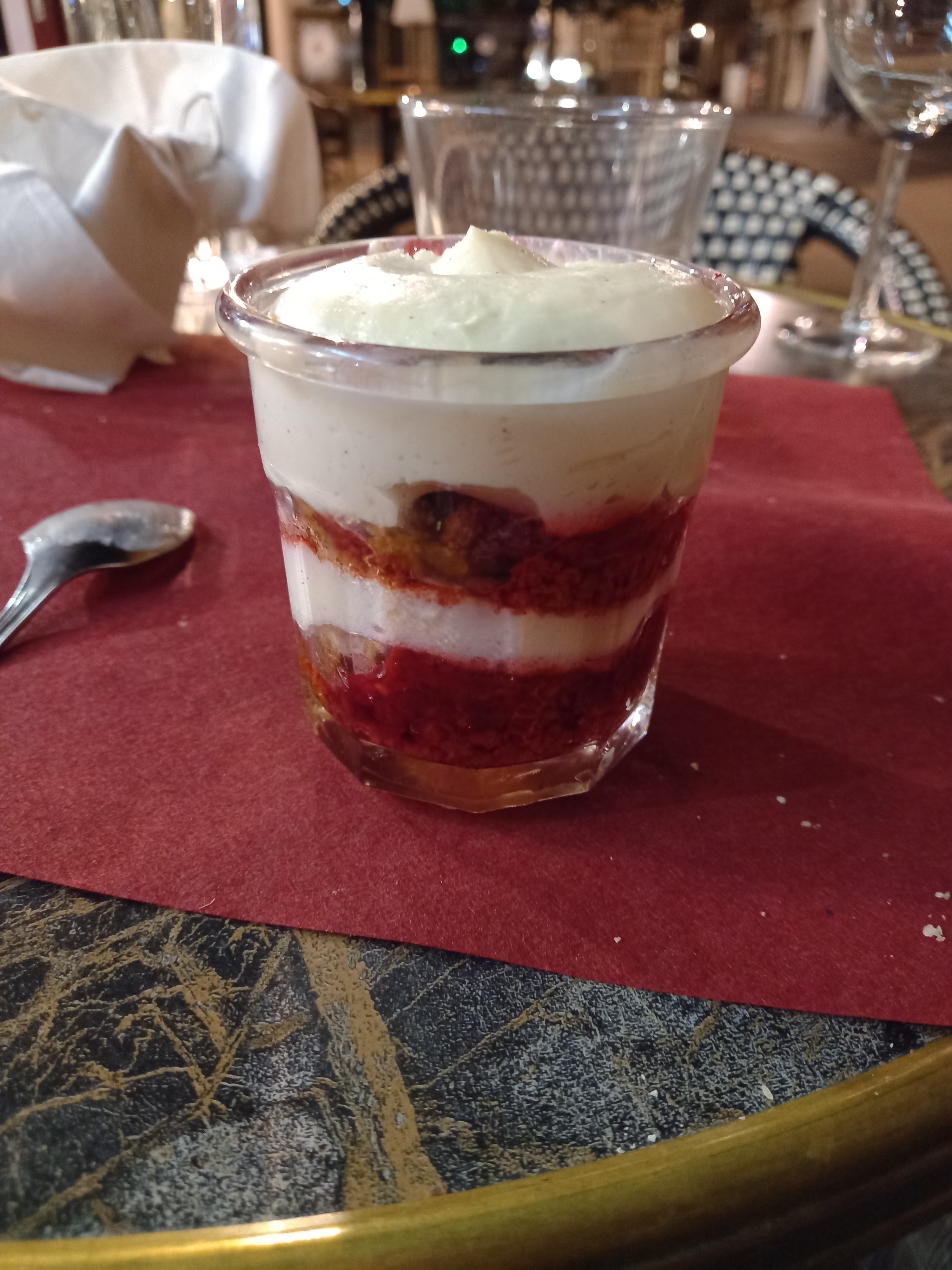 Repas satisfaisant mais la petite soupe au fraise sans saveur particulière à 8€ nous ait resté sur l’estomac et sur la note…