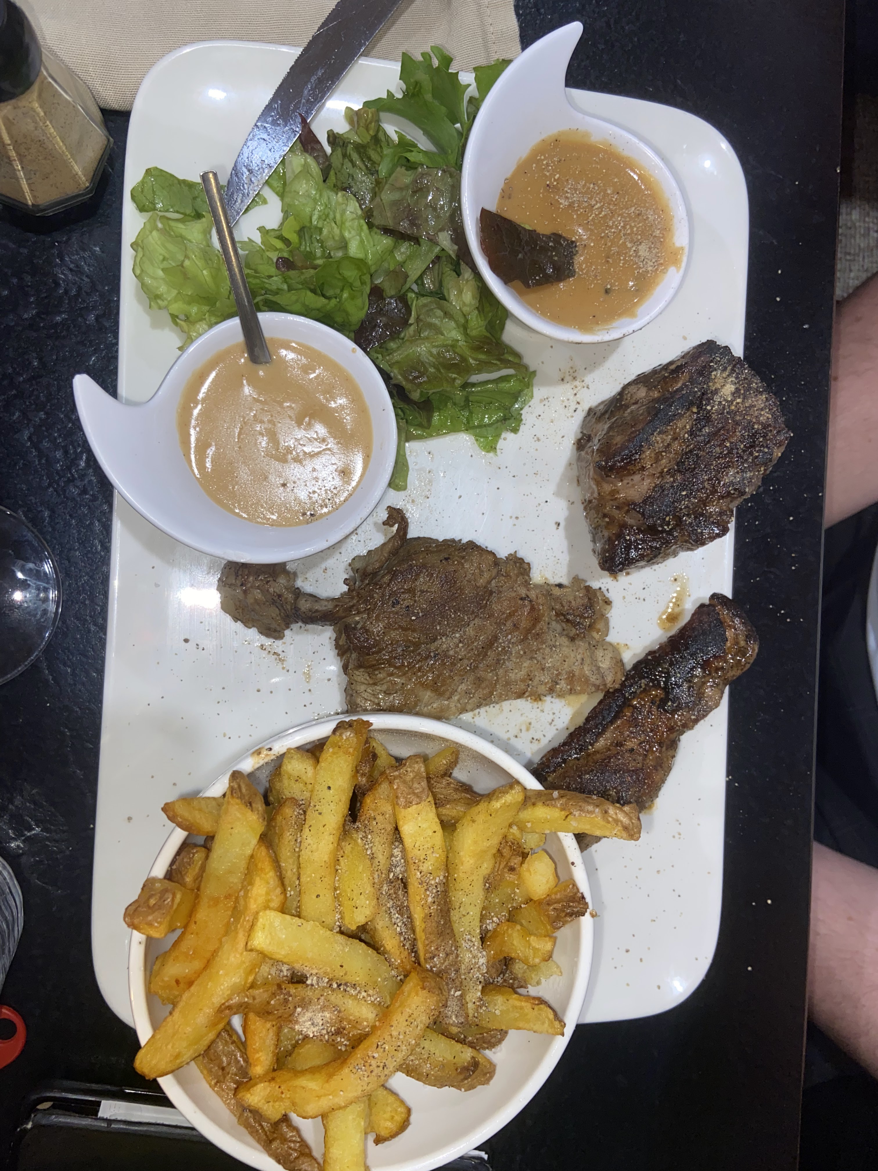 Les plats sont bons mais la viande était rapidement froide. Le rapport quantité prix est correct. La musique n'était pas terrible.