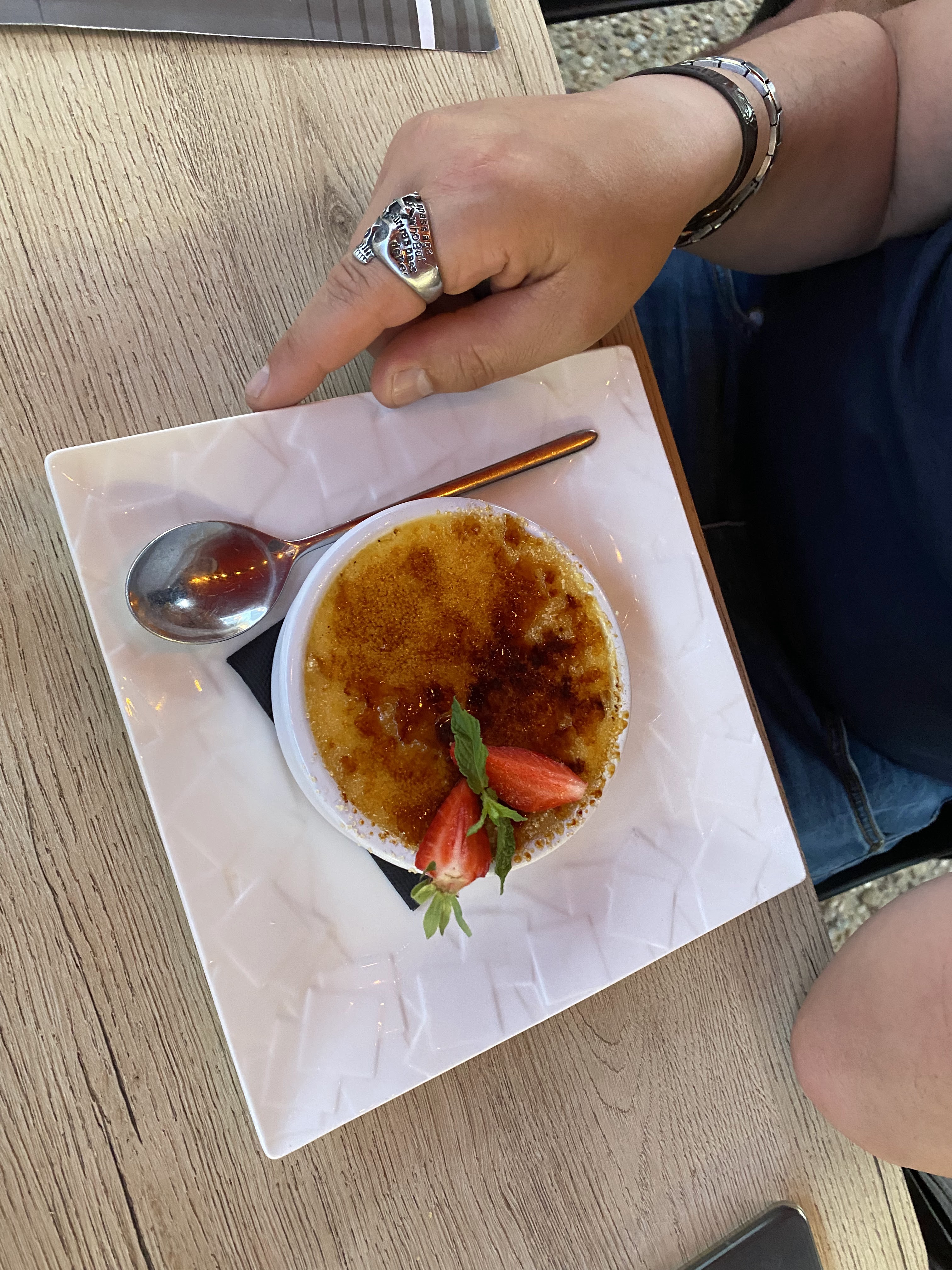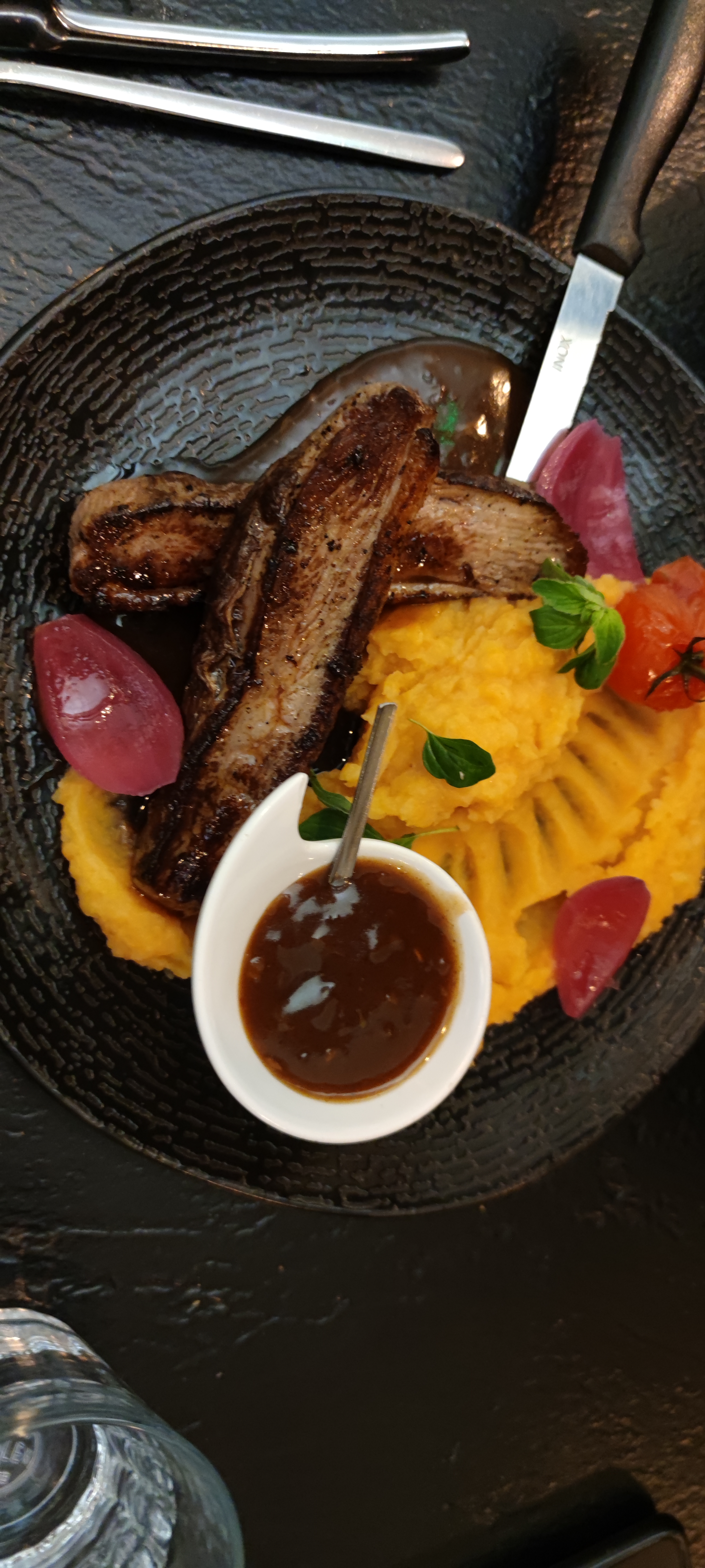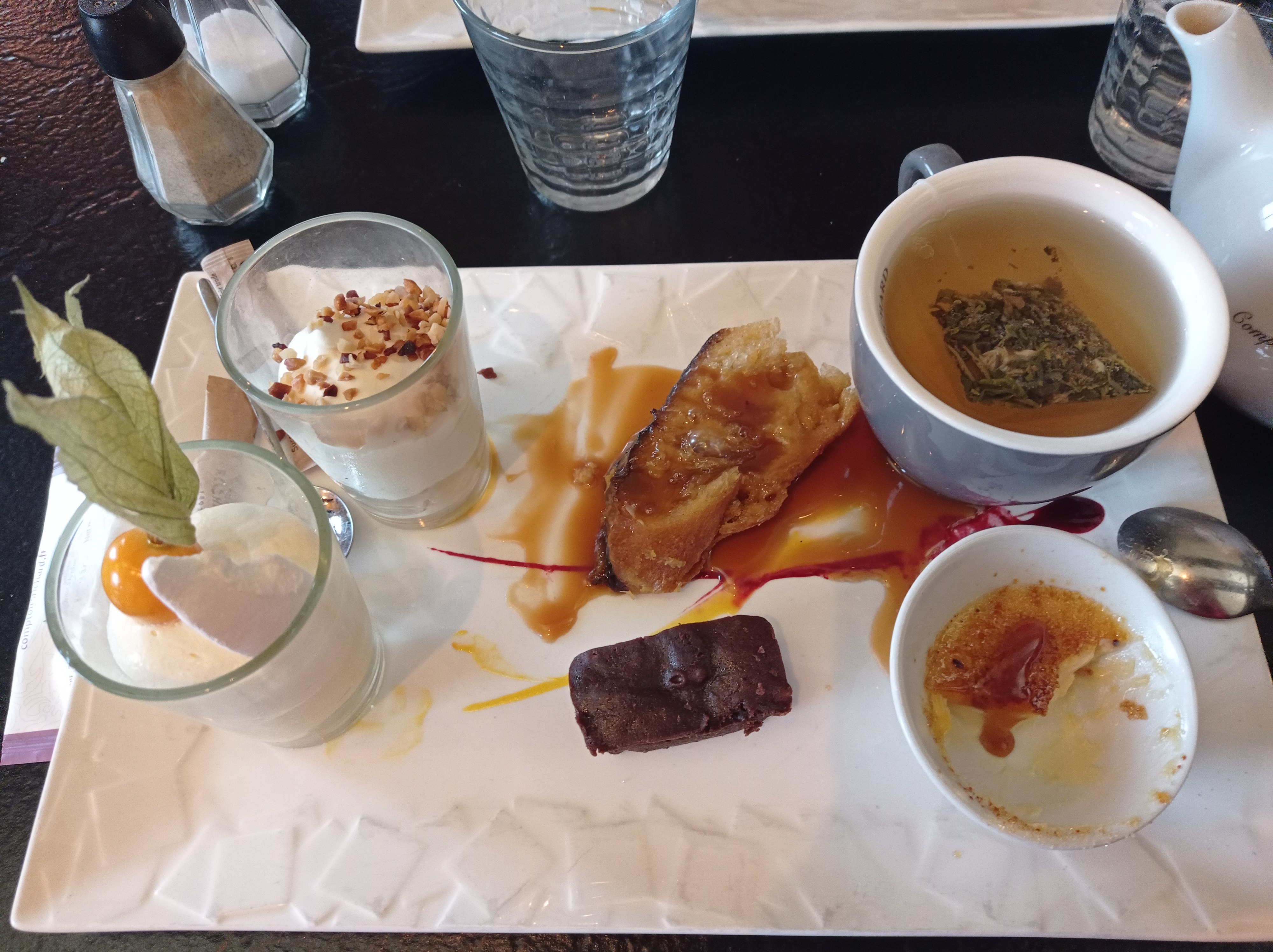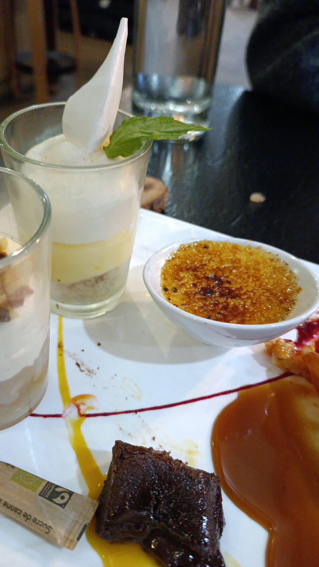 Je voulais faire une belle photo mais ma conjointe avait déjà mangé la moitié de mon dessert 🤣 très bonne adresse. Le cadre est vraiment sympa 👍