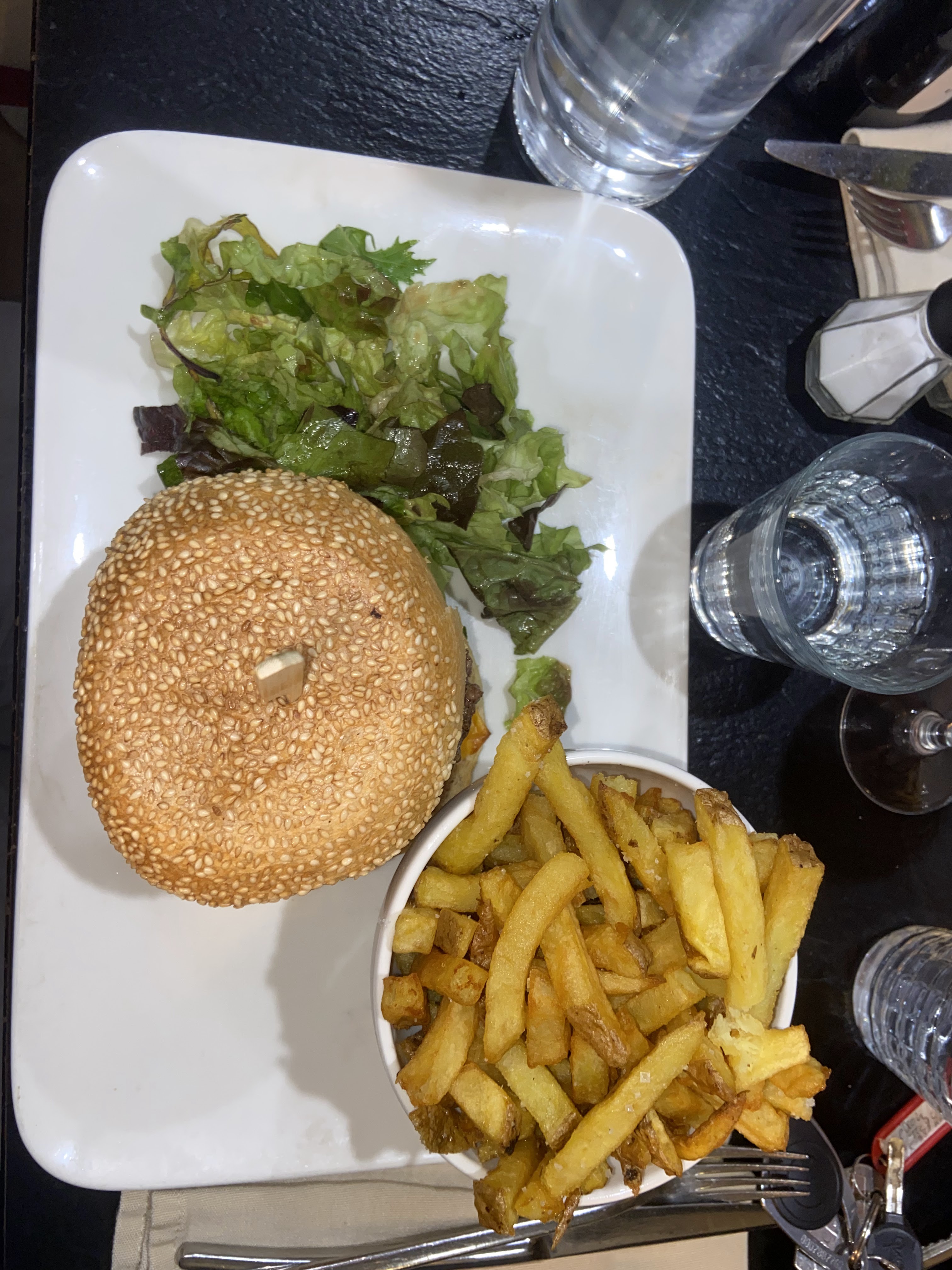 Nous avons bien manger , le burger était très bon. Le tartare l'était également. Les desserts , j'ai pris le pain perdu. Il était très bon , cependant je trouve le prix un peut excessif. Ça reste 3 tranche de pain , une boule de glace et du caramel ... Point négatif, nous avons commander l'apéro , ont n'a a peine eu le temps de commencer a boire nos verres que les plats sont arrivés ... J'ai fait exprès de le faire remarquer a mon mari devant la serveuse, mais ça ne lui a pas traversé l'esprit de nous proposer de nous laisser prendre le temps et revenir avec nos plats après. Du coup le temps de prendre l'apéro nos plats avaient refroidi ( du moins le burger et les frites) c'est dommage ... J'imagine que si ça aurai était possible de nous rapporter nos plats après l'apéro la serveuse l'aurai proposer d'elle même quand je l'est dit. Idem pour la table a côté qui c'est fait la même remarque. Le restaurant reste un endroit sympa , nous étions a une petite table dans le fond , c'était sympa.