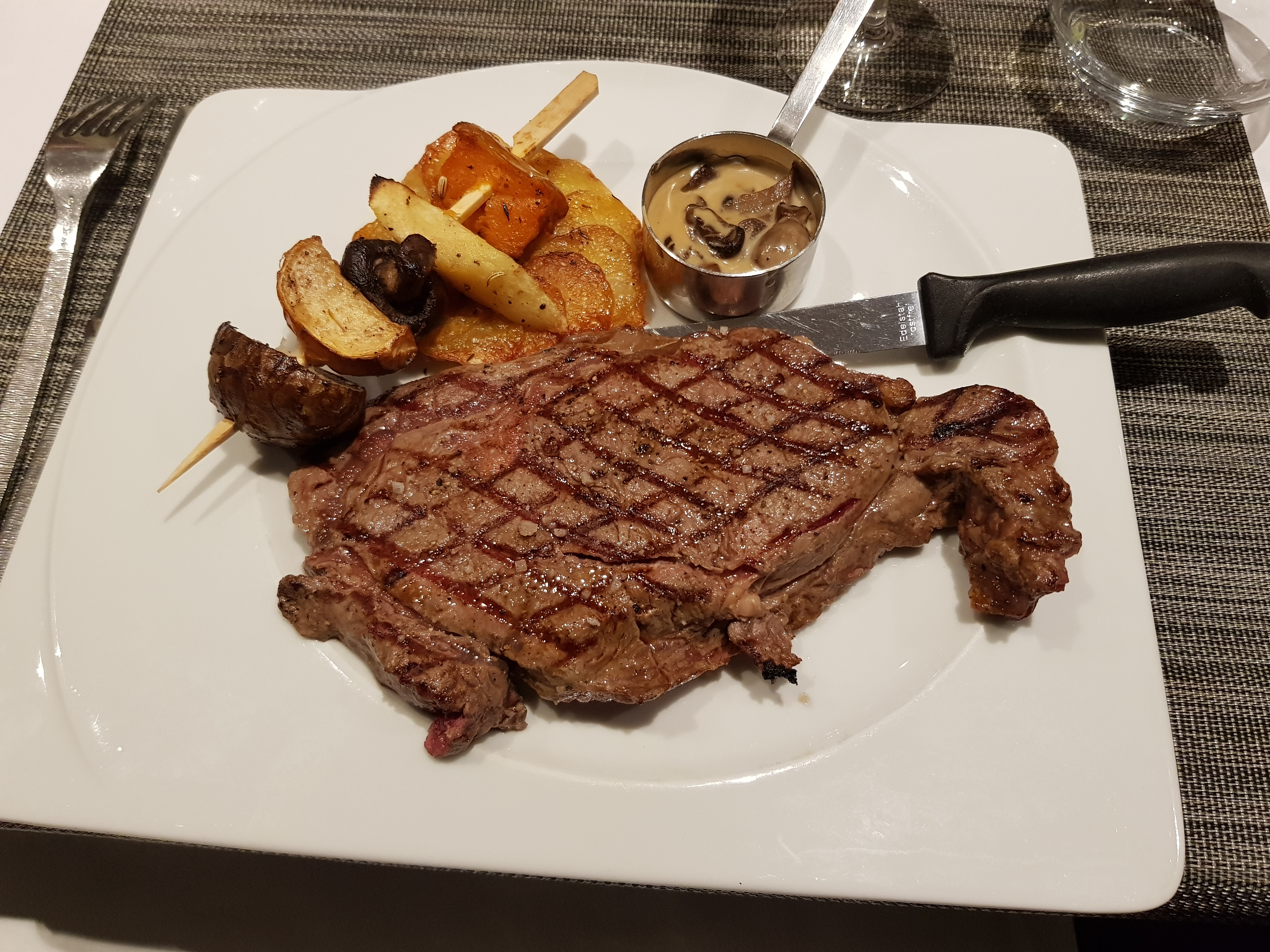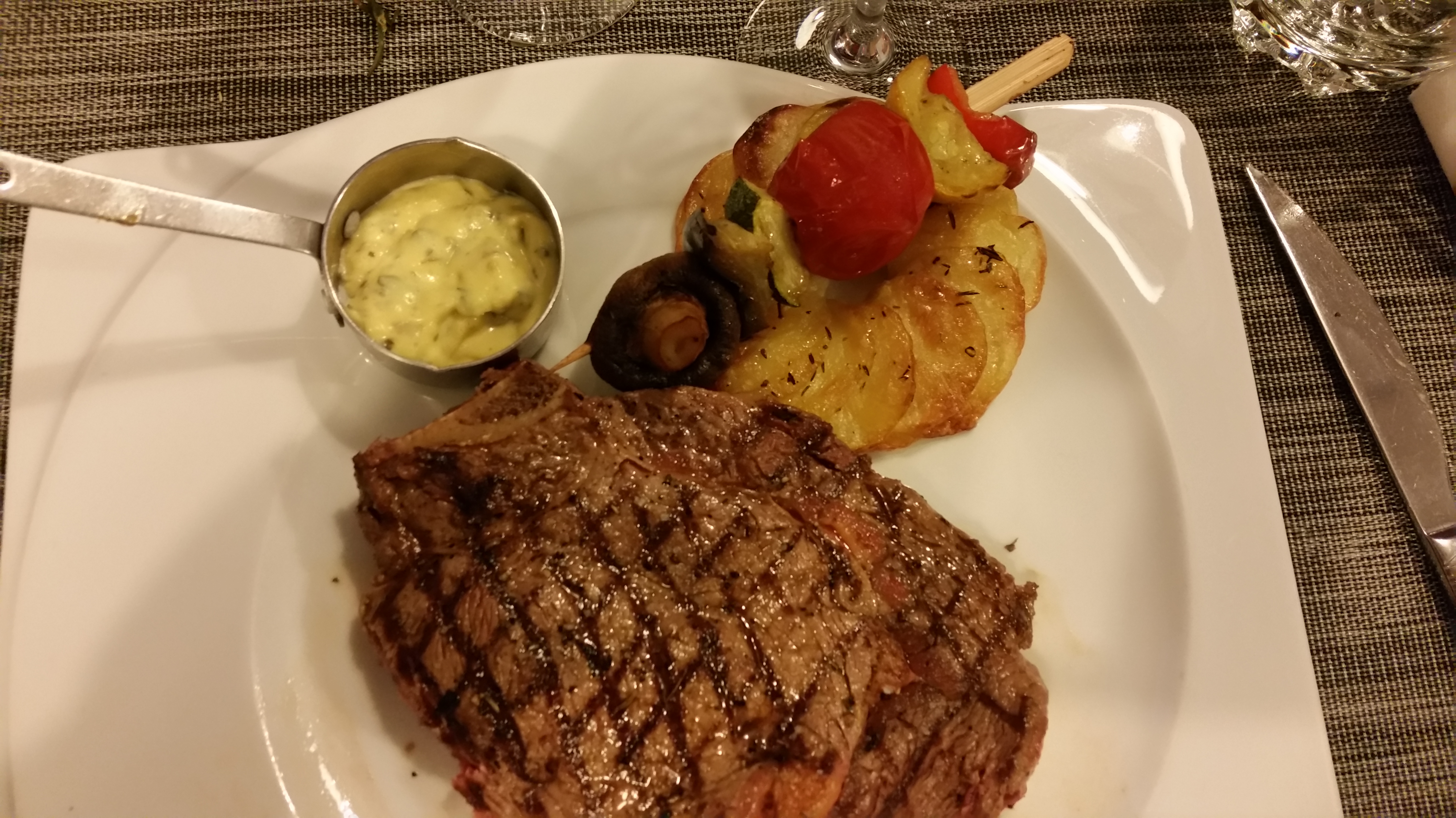 Nous sommes venue manger dans votre restaurant hier soir. L’apéro et l’entrée rien à dire par co tre les plays c’était tout autre chose. 3 cotes de bœufs commandé les cuissons n’étaient pas bonnes. Mon pavé de cerf était très bon mais les légumes beaucoup trop fort je ne sais pas tous ce qu’il y avait exactement. Et mon conjoint a pris le porc au agrumes et la sauce était vraiment tres très corcé et ducoup cela l’emportait sur tout le reste. Rien a dire s les desserts. Par co tre le service était très long.