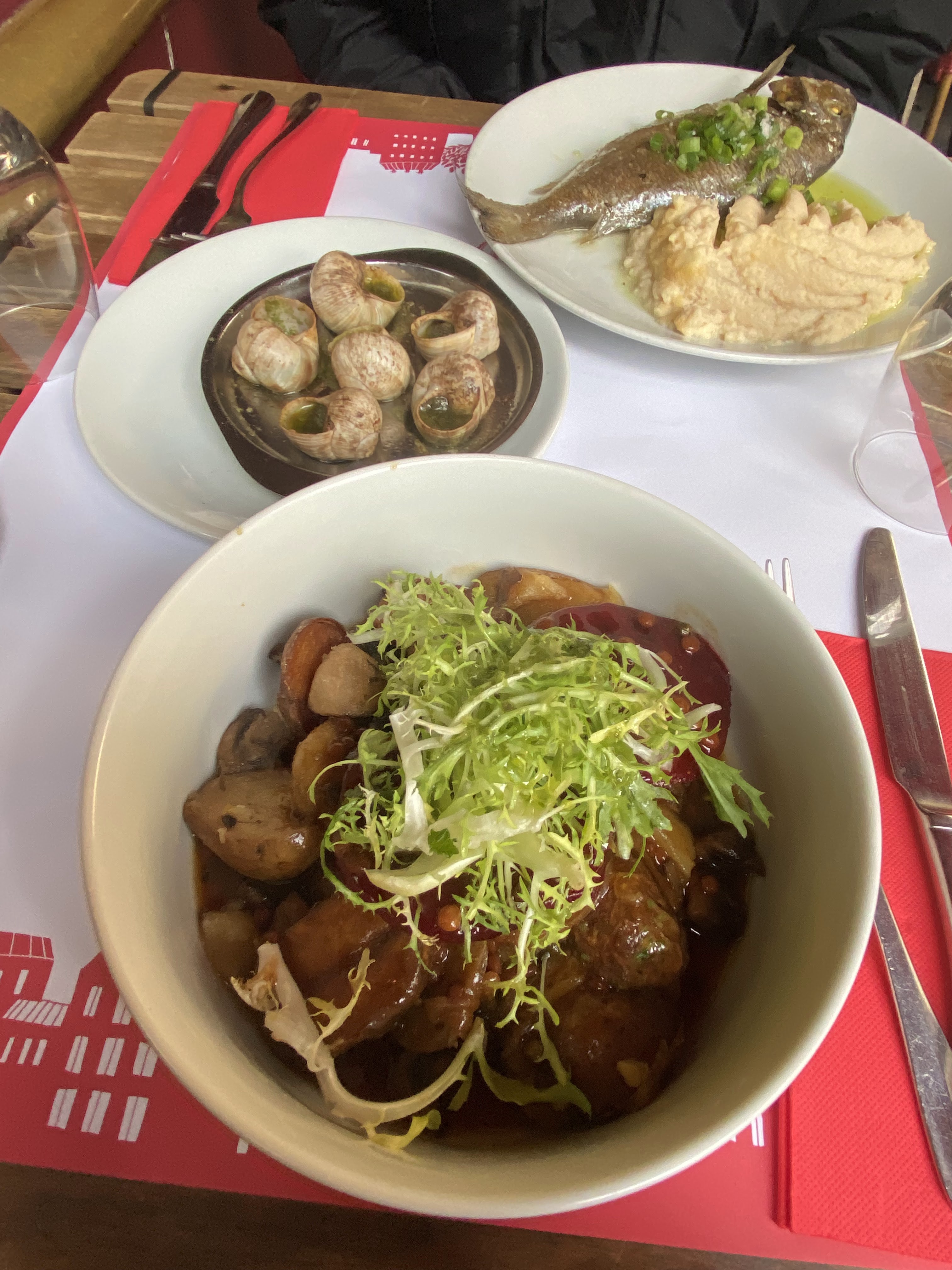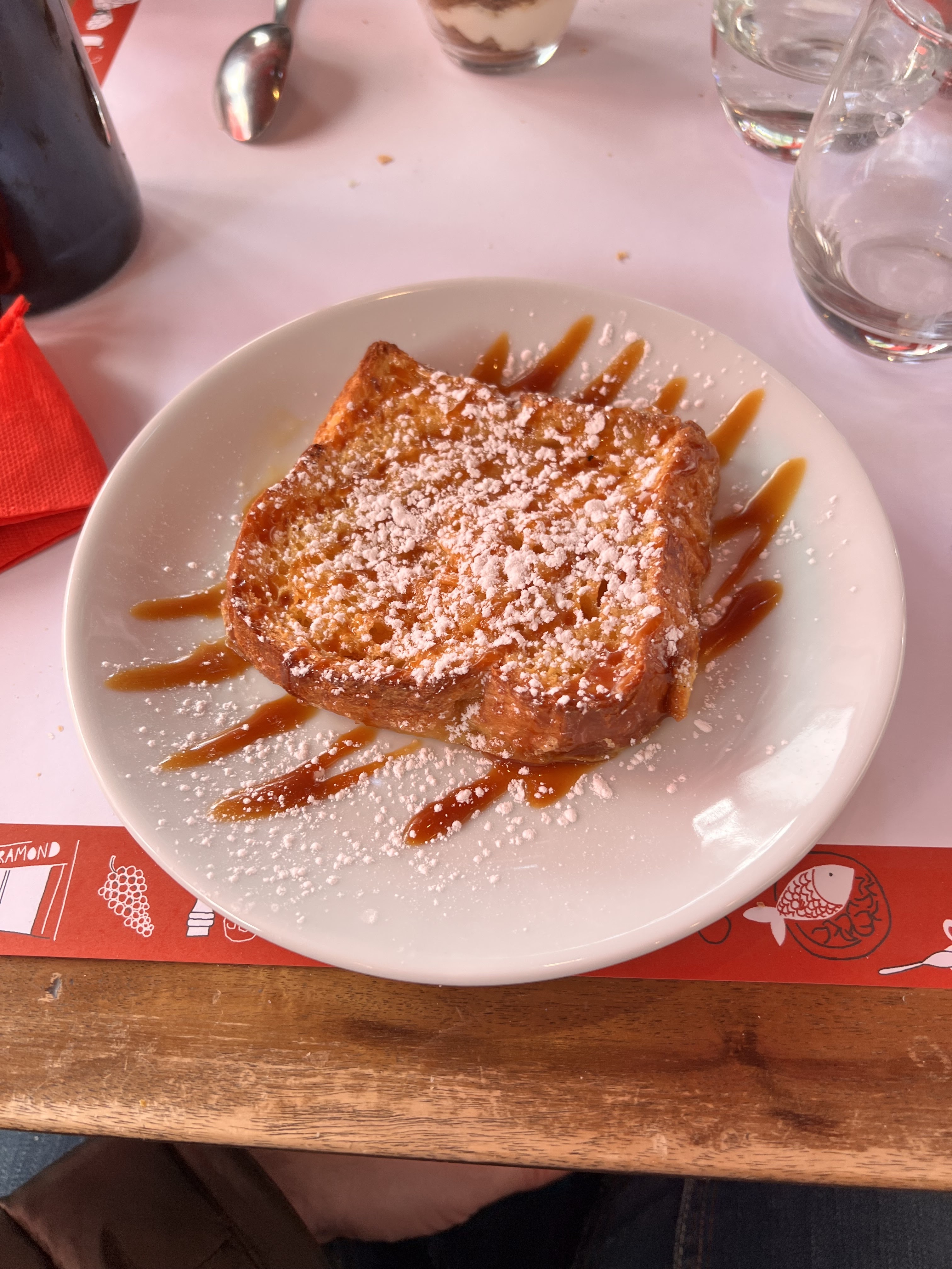 Le cadre est juste magnifique : les décors, mirroirs... vraiment à faire pour la salle!! Certes pas très grande mais il y a un étage. Par contre, pas de clim, donc ça peut être dur en été. Grande terrasse, collée à celle des autres restaurants de la placette. L'avantage du concept est le rapport qualité prix, bien. Manger sans se ruiner. Cuisine simple et bonne, par contre, compte tenu des quantités à fournir, tout n'est pas maison (écrasé de pommes de terre qui ressemble plus à de la purée industrielle), mais ça reste bon dans l'ensemble. Hic sur la brioche perdue, un peu sèche. Serveur : vraiment très sympa et accueillant, à l'écoute.