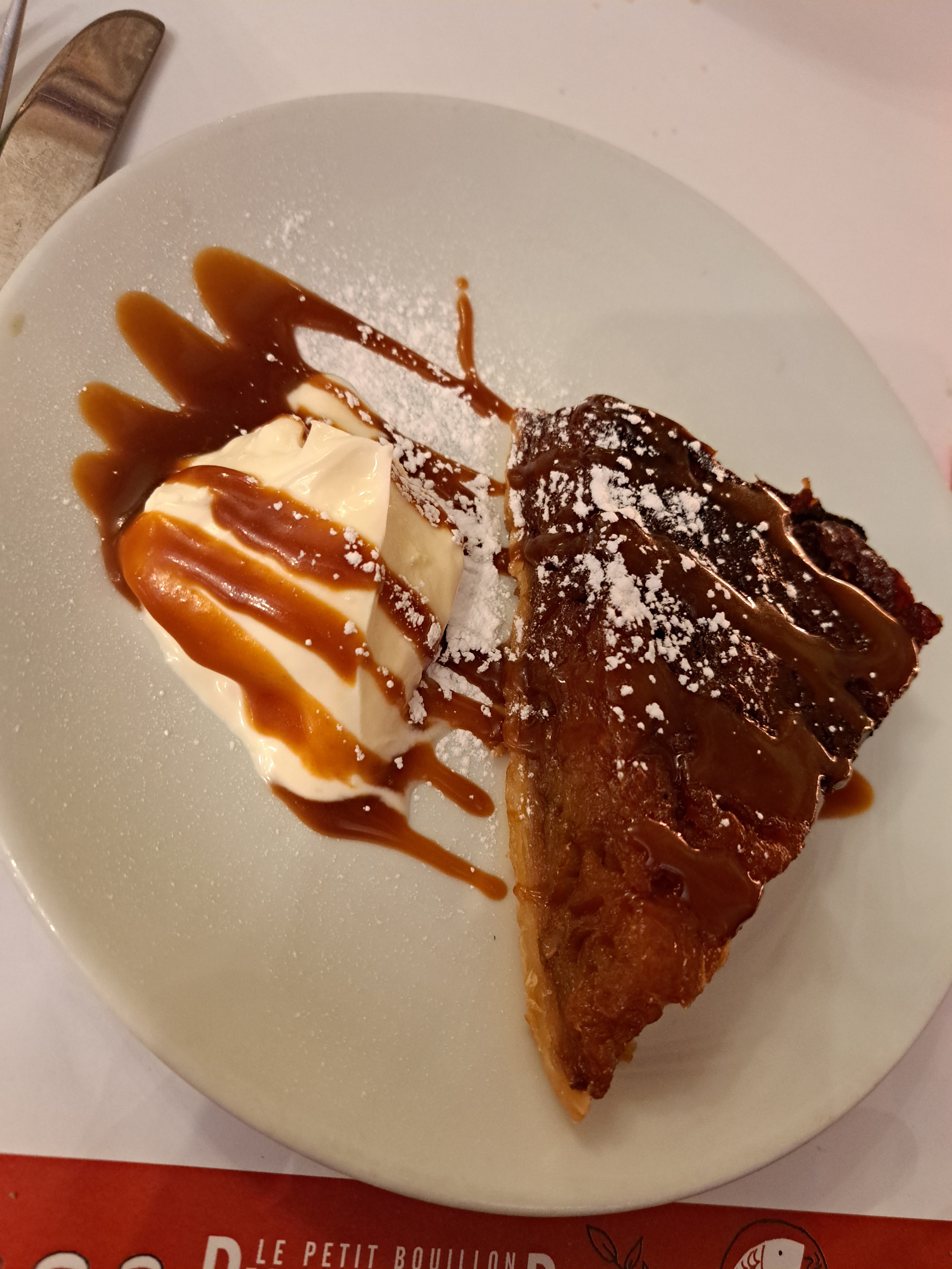 Très bonne surprise ! Une cuisine très correcte et généreuse accompagnée d'un service décontracté et agréable et arrosée de boissons décontractantes à prix populaire que demander de plus ?! L'occasion parfaite pour les novices de s'initier à son premier trou normand ! Merci à vous de rendre accessible une partie de la culture culinaire française à la portée de tous et dans les règles de l'art 🇨🇵 Le combo tarte tatin + caramel + crème en est un fier exemple ! Très tatillon sur la cuisine on est ressorti charmés et bien plus convaincus que par le Bouillon Pigalle, bravo et merci !
