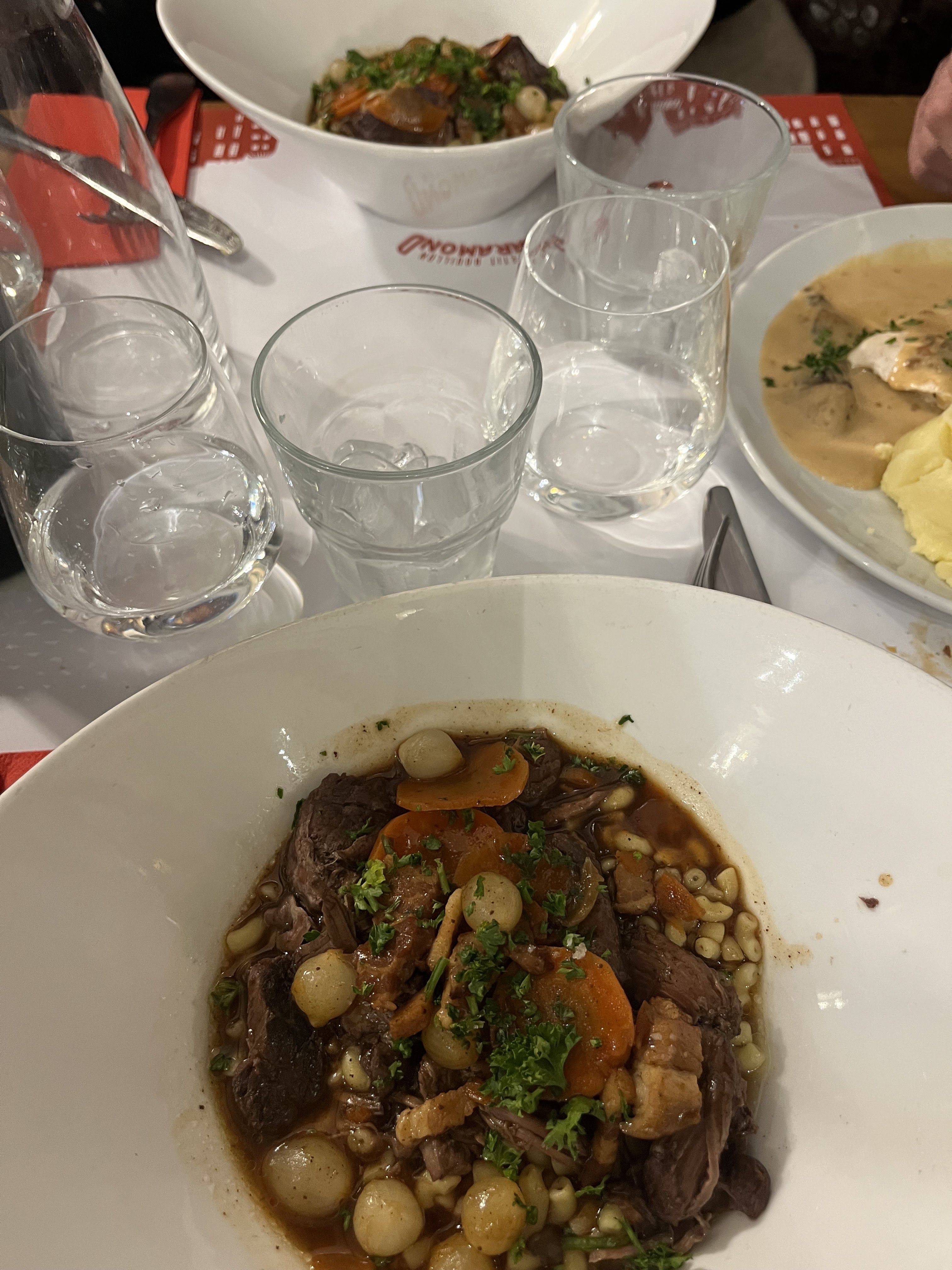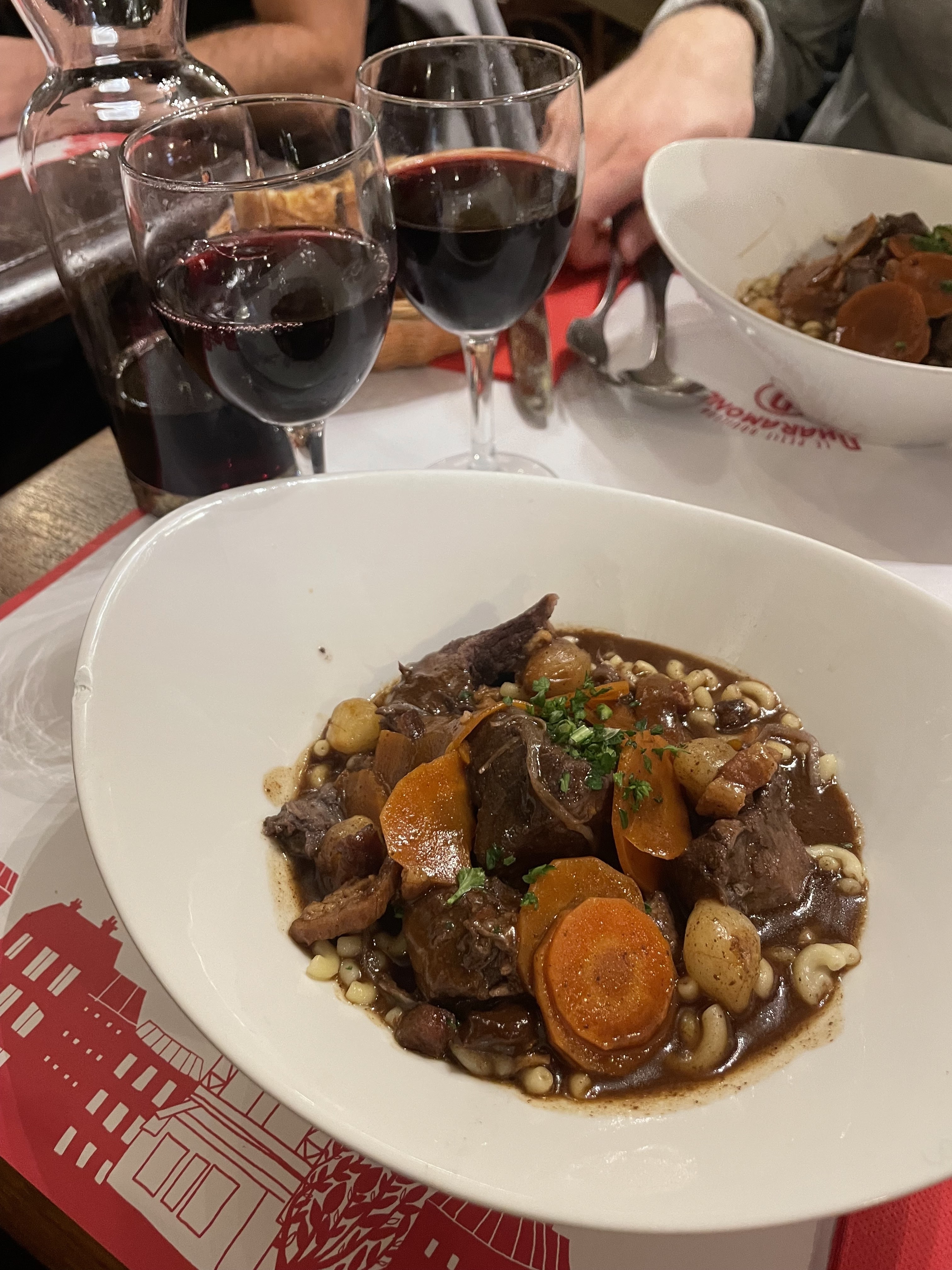 Vous souhaitez manger français mais avec un petit budget ? Le bouillon c'est la solution ! Ce restaurant est très bien situé (à Châtelet), avec un prix très raisonnable et des plats typiques de bouillon. Le boeuf bourguignon était très bon et tendre, le confis de canard était également délicieux. Un super bon rapport qualité prix ! Salle un peu bruyante, mais pour le prix et le quartier, on va pas se plaindre :)