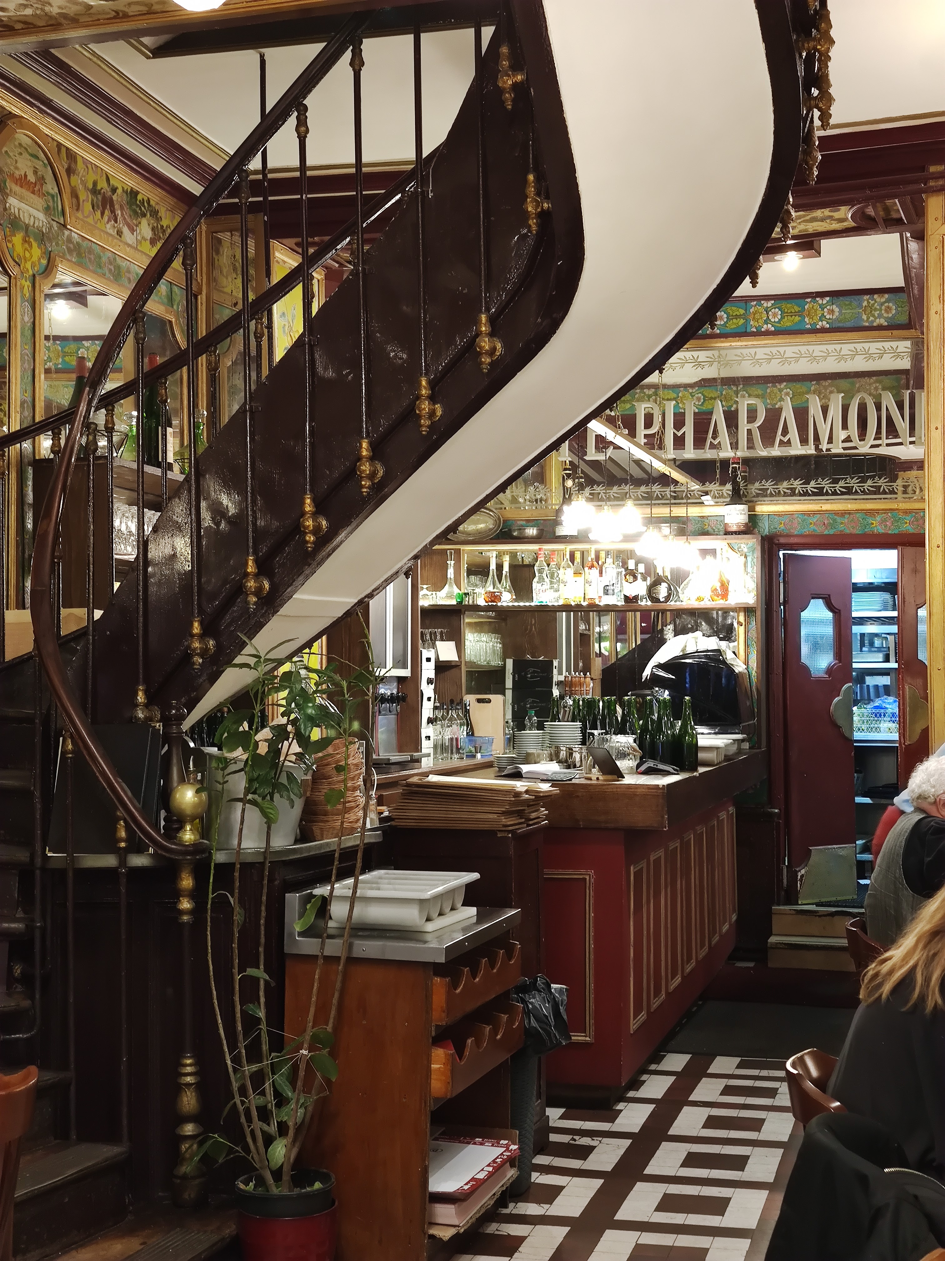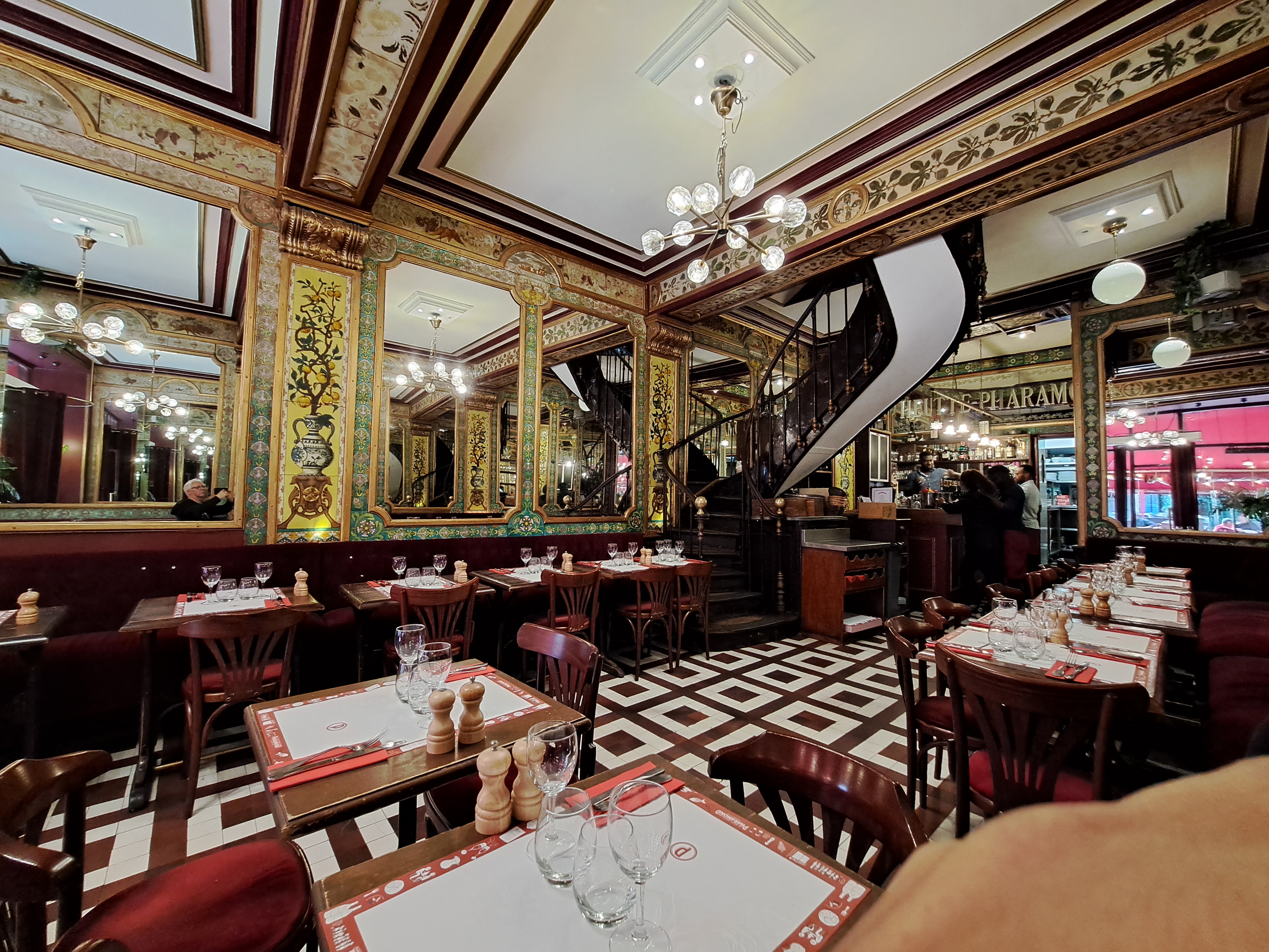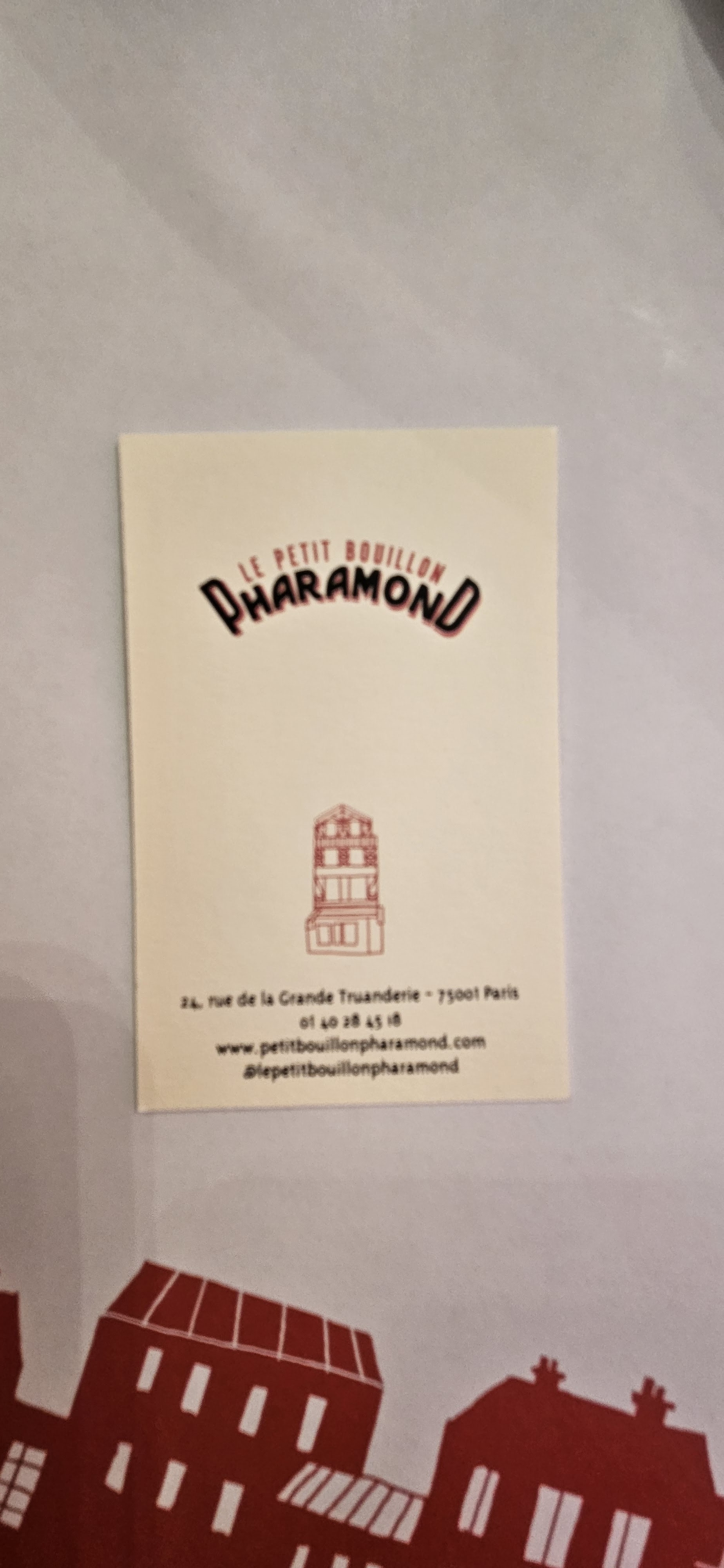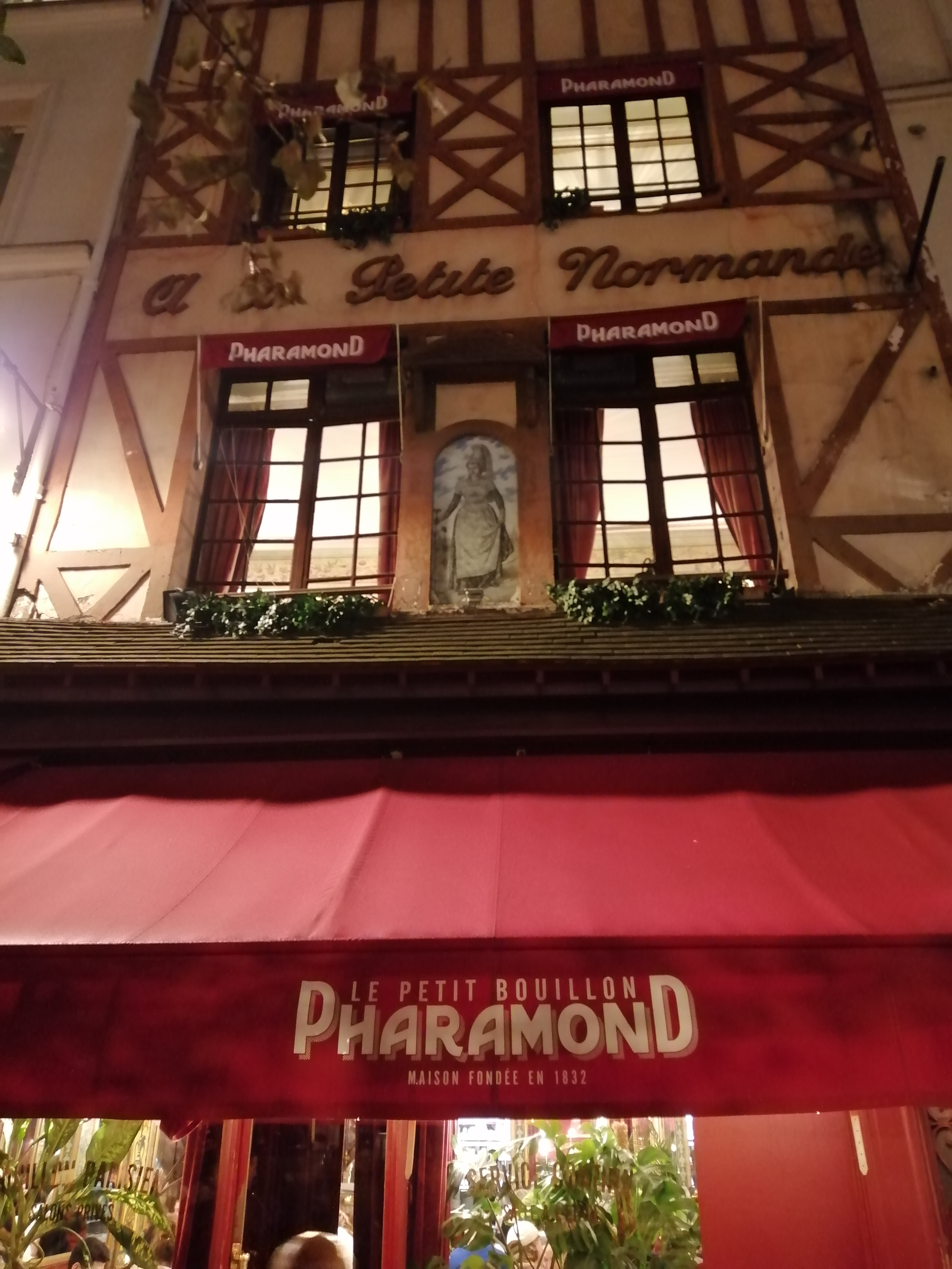 Nous avons (enfin) testé le pharamond. Brasserie parisienne à gros débit, la nourriture est bonne, et le cadre est beau. Gros avantage, au lieu d'attendre dans la queue on prend votre numéro et vous pouvez revenir plus tard sans rester debout dans la queue. Pour trois entrées, deux plats, deux desserts, un trou normand et un digestif, un 1/2 litre de vin rouge, on s'en sort pour 64€. Pour nous c'est un restaurant validé, on reviendra 👍 Merci au staff, super équipe