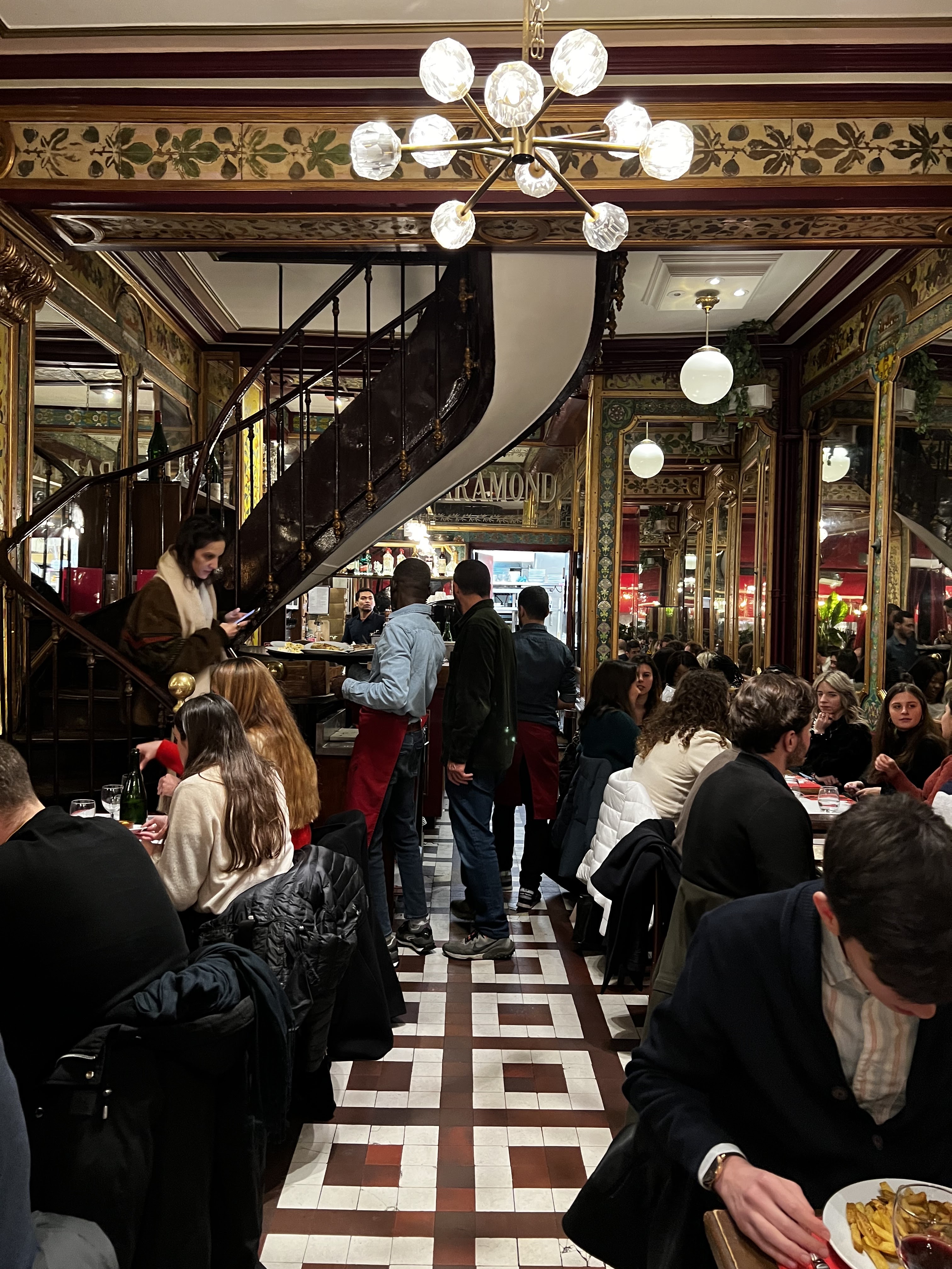 Un classique des bouillons de Paris, forcément lieu incontournable avec un grand choix, de qualité et abordable. Entrée - Plats - Fromage - Dessert + vin = environ 44 euros Il y a beaucoup d'attente,. mais l'attente en vaut le coup, il est possible d'attendre à côté dans un bar pour que l'on nous appelle
