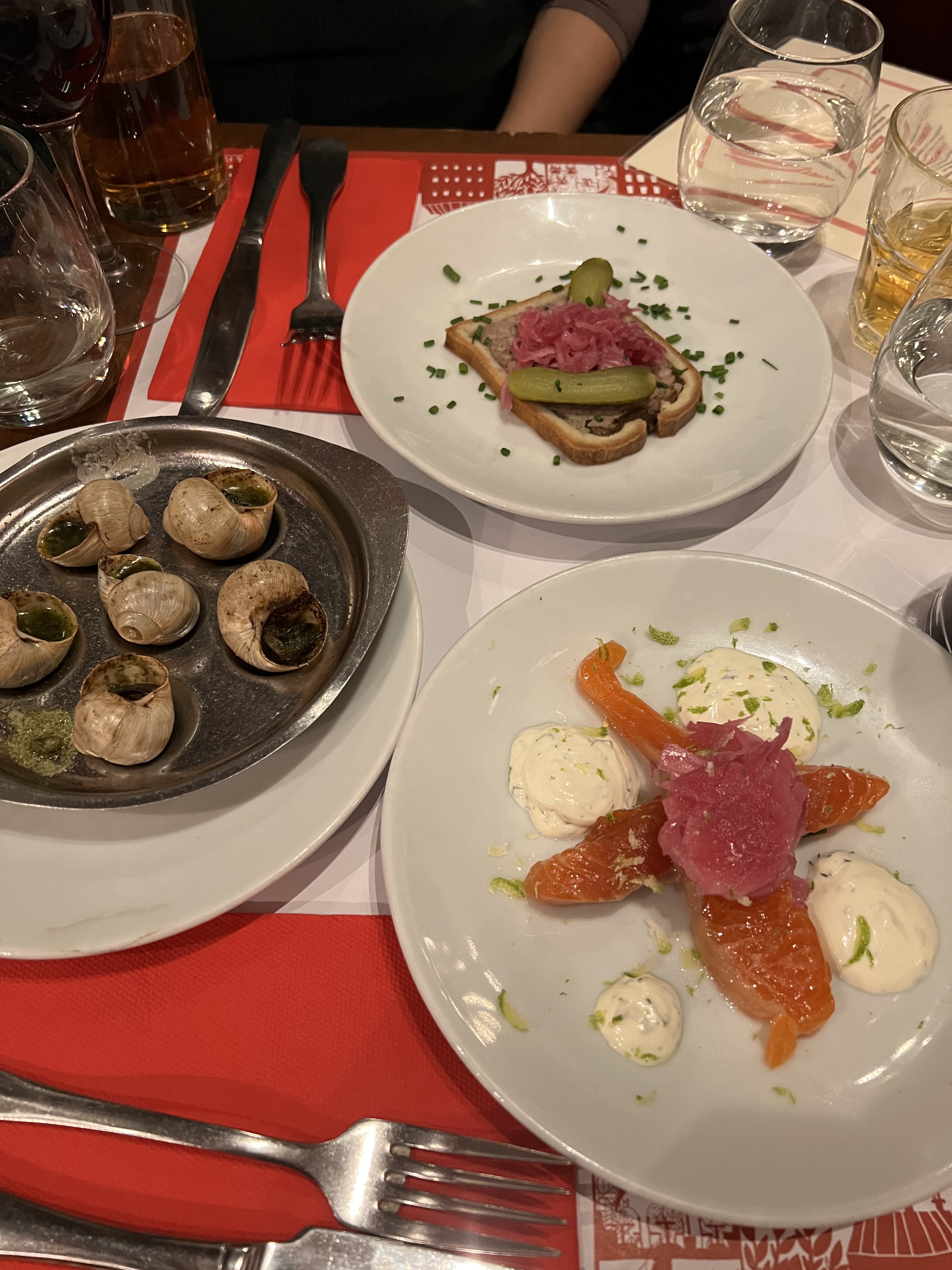 Super endroit à Paris avec une cuisine délicieuse à un prix abordable ! C'était bien que le vendredi soir, il n'y ait pas de file d'attente à l'extérieur. Ils ont suggéré d'aller au bar d'à côté, où ils vous ont appelé par votre nom lorsque c'était votre tour d'entrer dans le restaurant. Au bar, vous pouvez commander des boissons et des collations qui vous éviteront certainement d'avoir faim. Et nous avons attendu une place pendant une heure. Le restaurant a plusieurs étages, une atmosphère chaleureuse et un personnel serviable. Lorsque nous manquions de pain, ils remplissaient immédiatement le panier avec une nouvelle portion. Savoureux! Et nous avons attendu environ 7 minutes pour la nourriture.