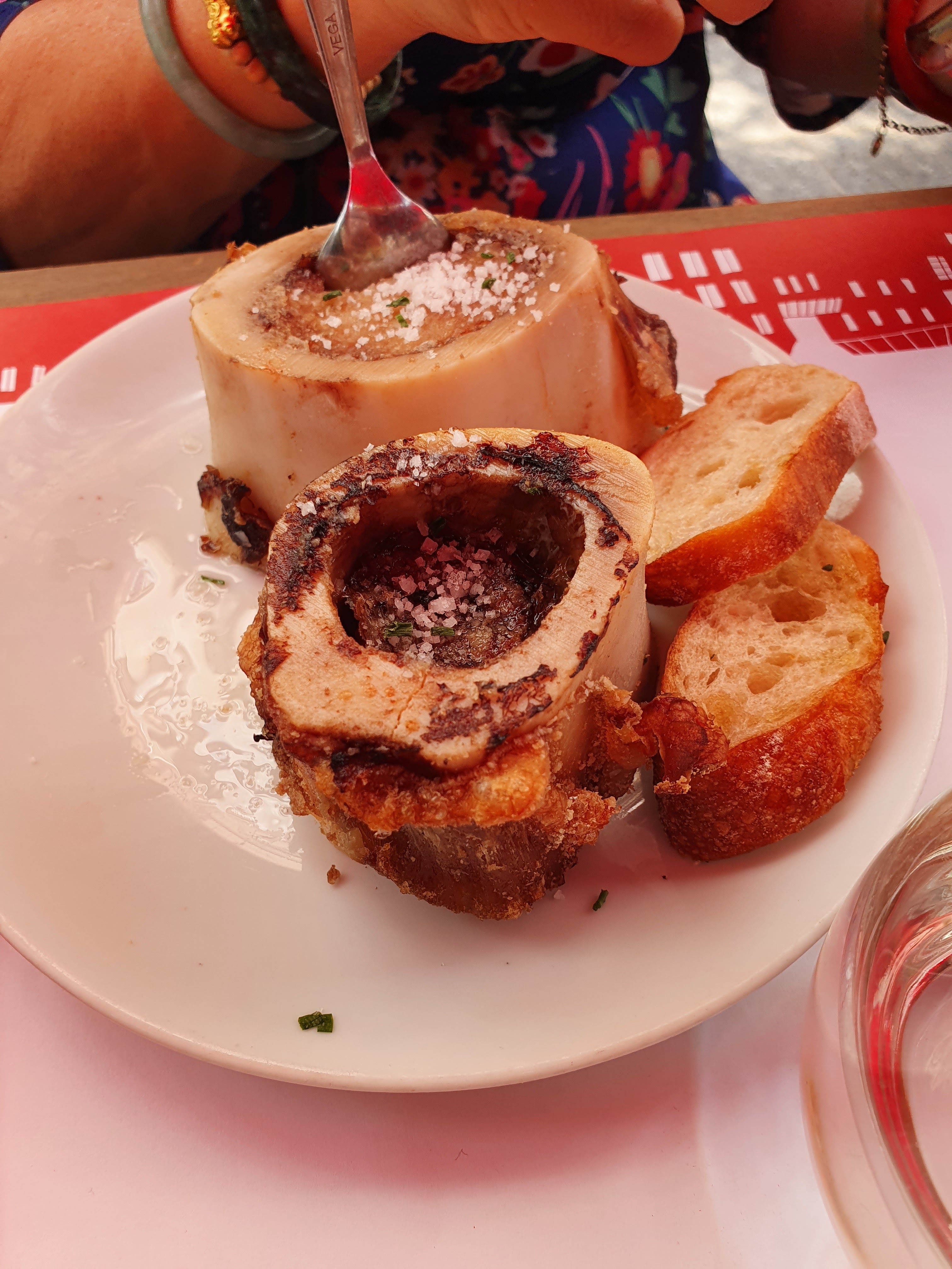 Súper bouillon en plein centre-ville, endroit très charmant. Des plats délicieux, j'ai pris l'os comme entrée, les tripes, et le pain perdu comme dessert. Tout était Súper bon. Pas de réservation possible donc je vous recommande d'attendre dans la ligne ou arriver dès l'ouverture