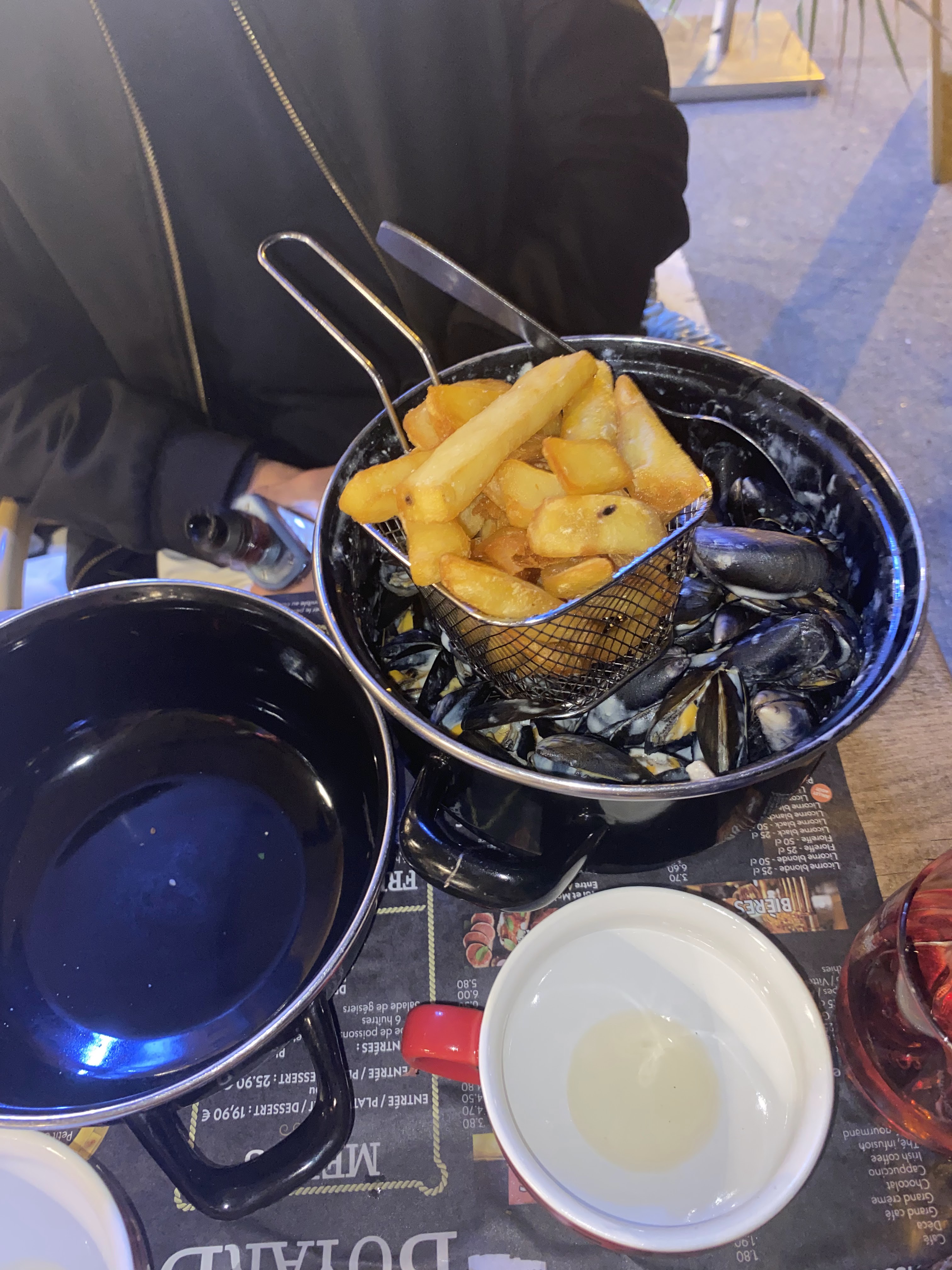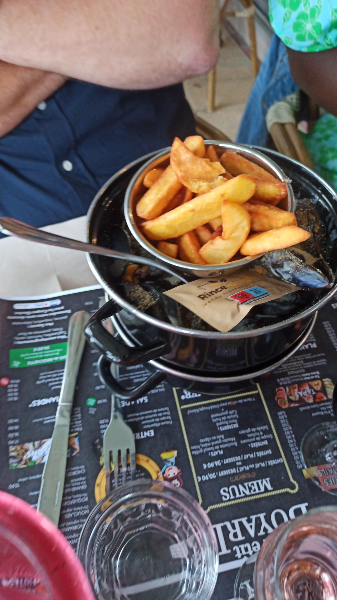 Trop, trop........ long , pas organiser, ils debarasse et essuie des tables alors que les clients attendent et aussi font des retour a vide ce qui leur fait perdre un temps précieux . Mal indiqué que seul les frites sont a volonté et du pain pour saucer aurai ete bienvenue sans avoir a gueter le regard des serveur et serveuse ce qui aurait pris trop de temps et finir par saucer froid . Sinon les moules etait correcte et le dessert aussi. N'y reviendra pas et ne le recommande pas