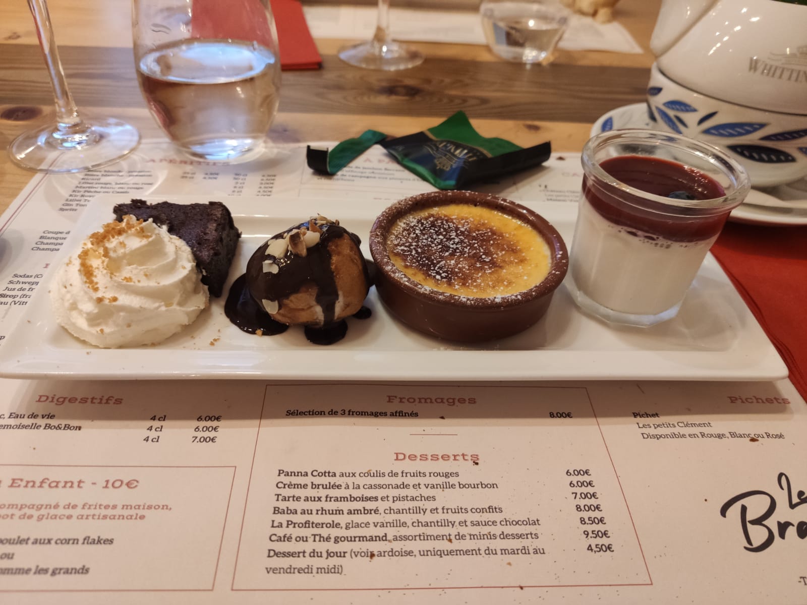 Nous avons mangé il y 3 mois j'avais pris un cassoulet délicieux et profiteroles trop bien je recommande