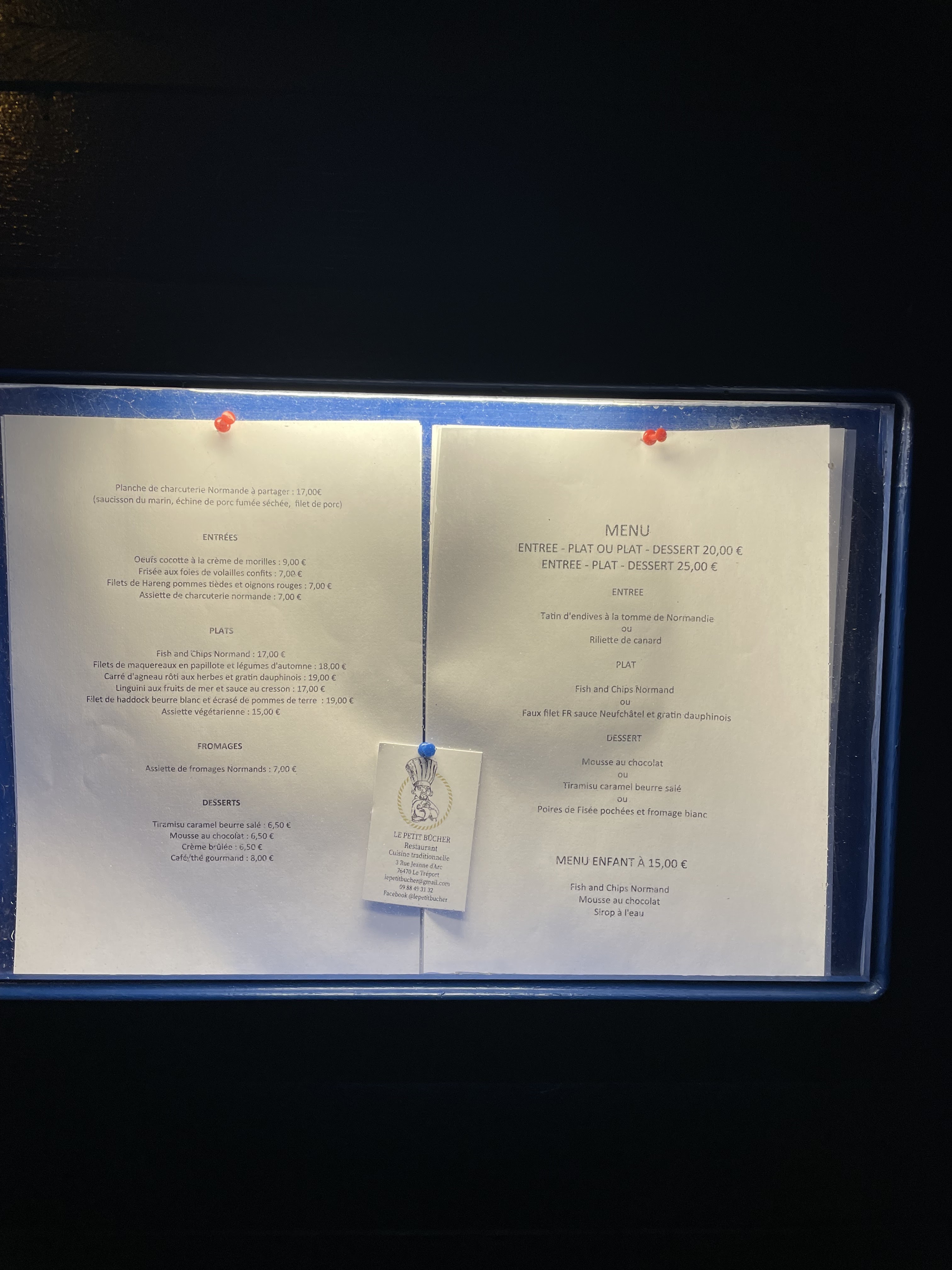 Bonjour Après un 3ème passage durant nos congés dans ce restaurant une nouvelle fois nous avons essayé de nouveaux plats tous plus frais les uns que les autres ,aujourd’hui le Fish and chips normand (et croyez nous les anglais n’ont qu’a bien se tenir!!!)les œufs cocottes cuits au top!! Et pour finir cette mousse au chocolat extra légère photos à l’appui. Bref sans hésiter « le Petit Bûcher ou rien » Merci au chef Jean Marc et à Sophie pour sa bonne humeur, sans oublier Daphné pour son aide précieuse à qui nous souhaitons une bonne continuation dans sa vie professionnelle. À très bientôt Xavier