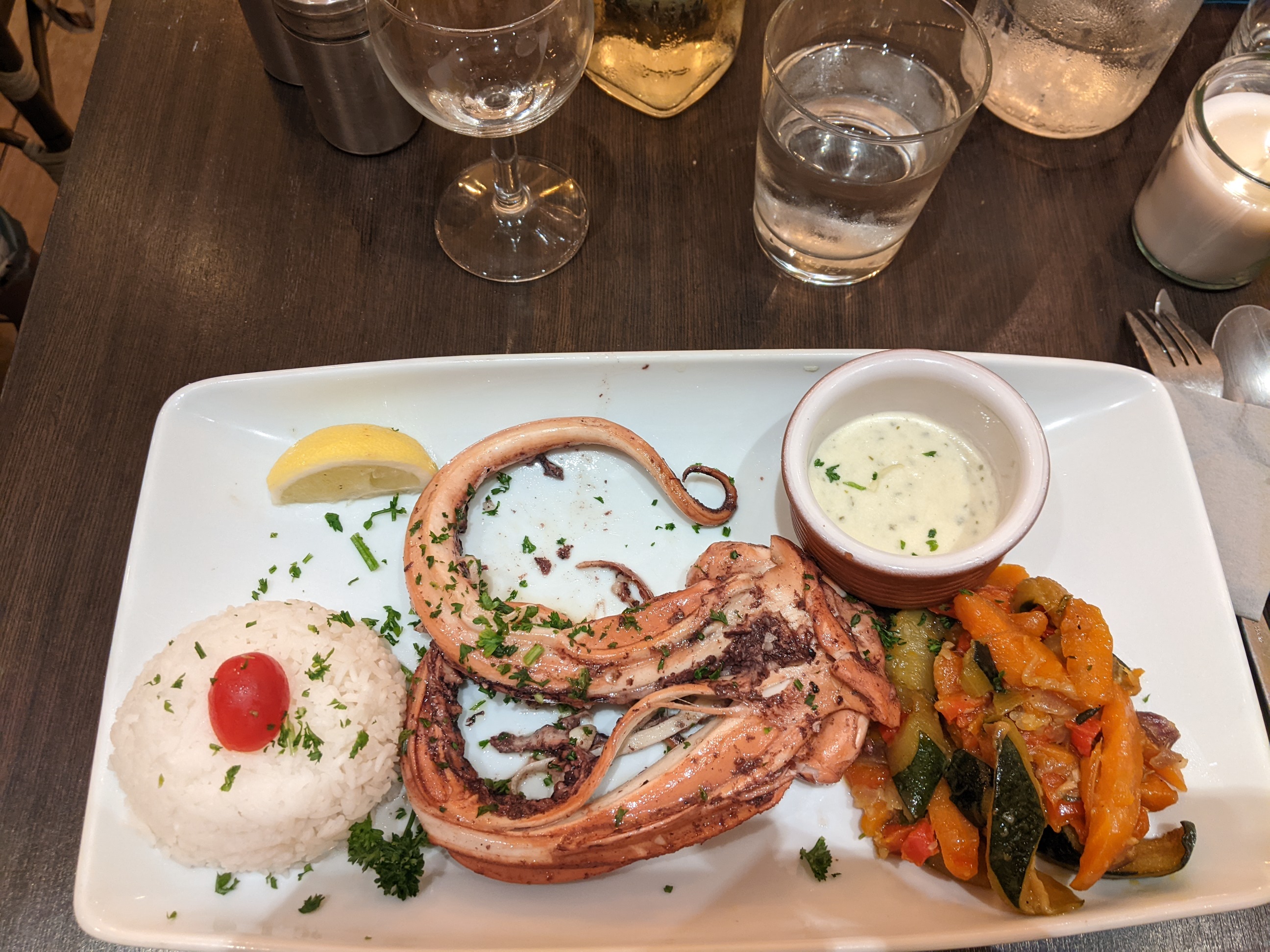 Restaurant qui ne paye pas de mine de l'extérieur mais qui propose une bonne cuisine, avec des plats généreux et bien assaisonnés. Nous avons pris une salade de poulpe délicieuse, et des calamars frits très bons également ! Cependant il n'y avait pas beaucoup d'ambiance il faut le dire, après tout c'était un lundi midi, donc assez calme, les gens travaillent et ne sont pas tous dehors à profiter des terrasses ;)