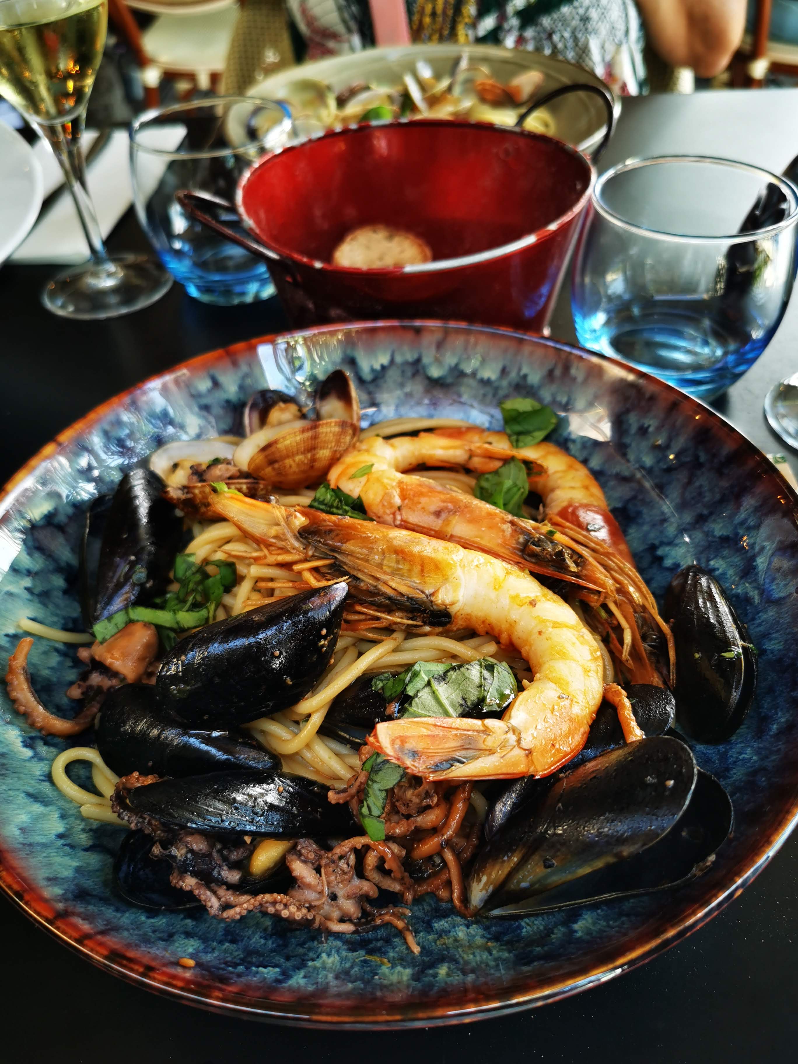 Lieu accueillant, cependant le serveur a mis du temps à prendre notre commande. Mauvaise communication entre les serveurs, les verres de vin ont failli nous être servi deux fois. Déçue du plat également, très peu de spaghetti pour un plat à 26€ c'est moyen... même si le goût et la qualité était là.