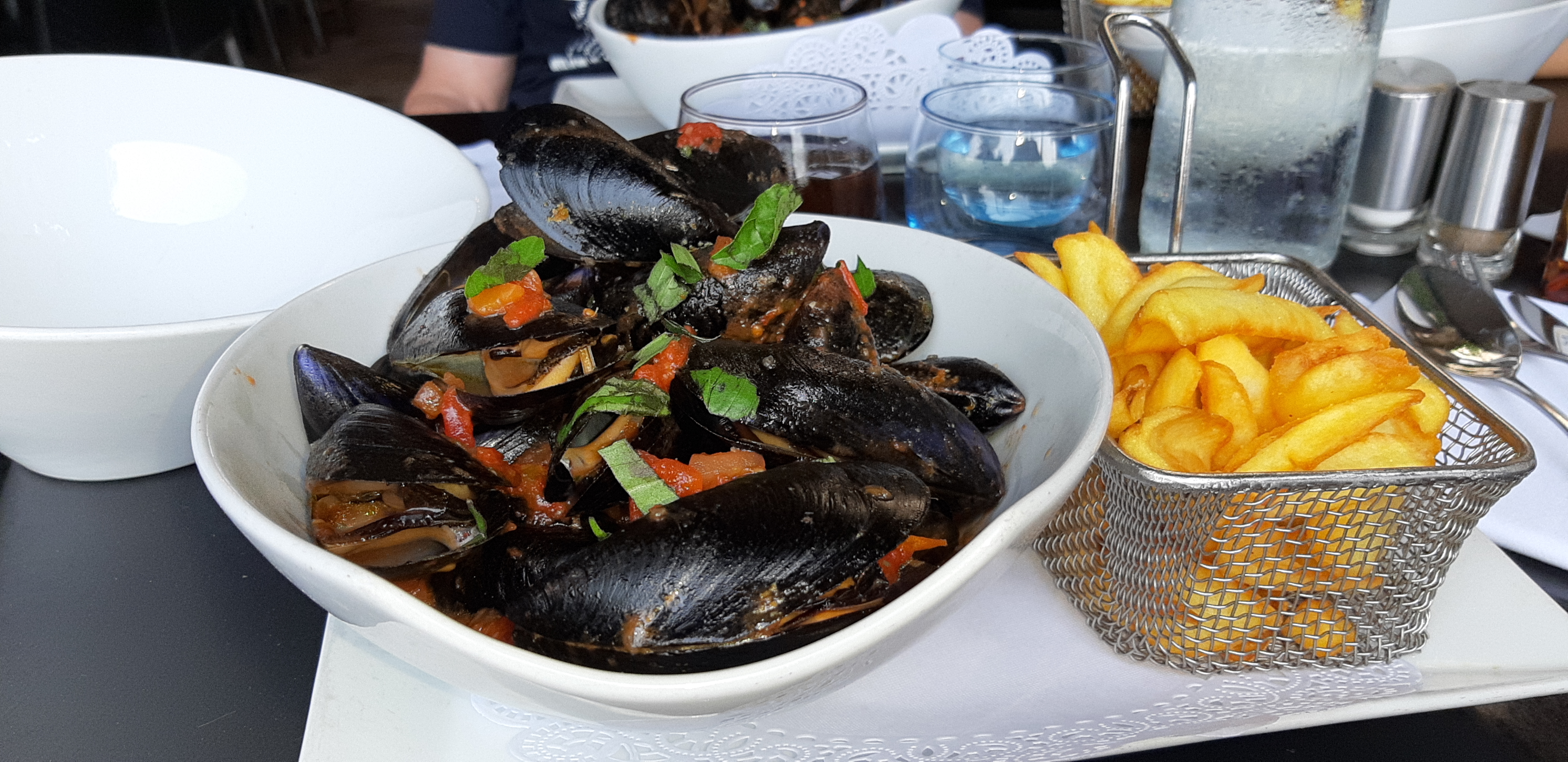Les meilleures moules frites jamais mangées! Super cocktails et les pâtes aux fruits de mer sont aussi très bonnes. Le tout avec une jolie petite vue sur le port et un super service! A faire et refaire