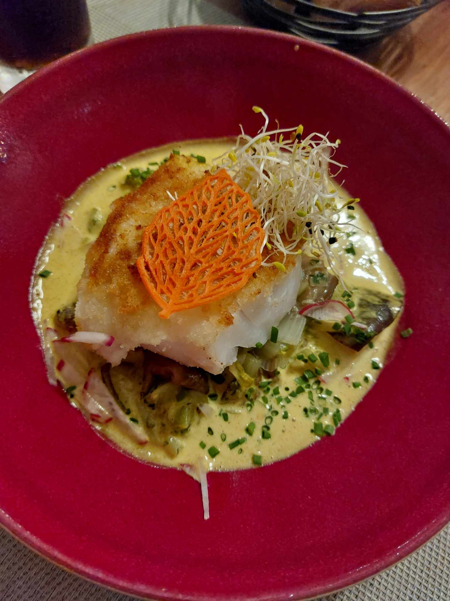 Menu commandé pour le réveillon à déguster chez soi au chaud. Tout était excellent et la quantité parfaitement pensée. Nous sommes curieux de revenir manger sur place, d’autant plus que l’accueil a été plus que chaleureux Bonne année à toute l’équipe