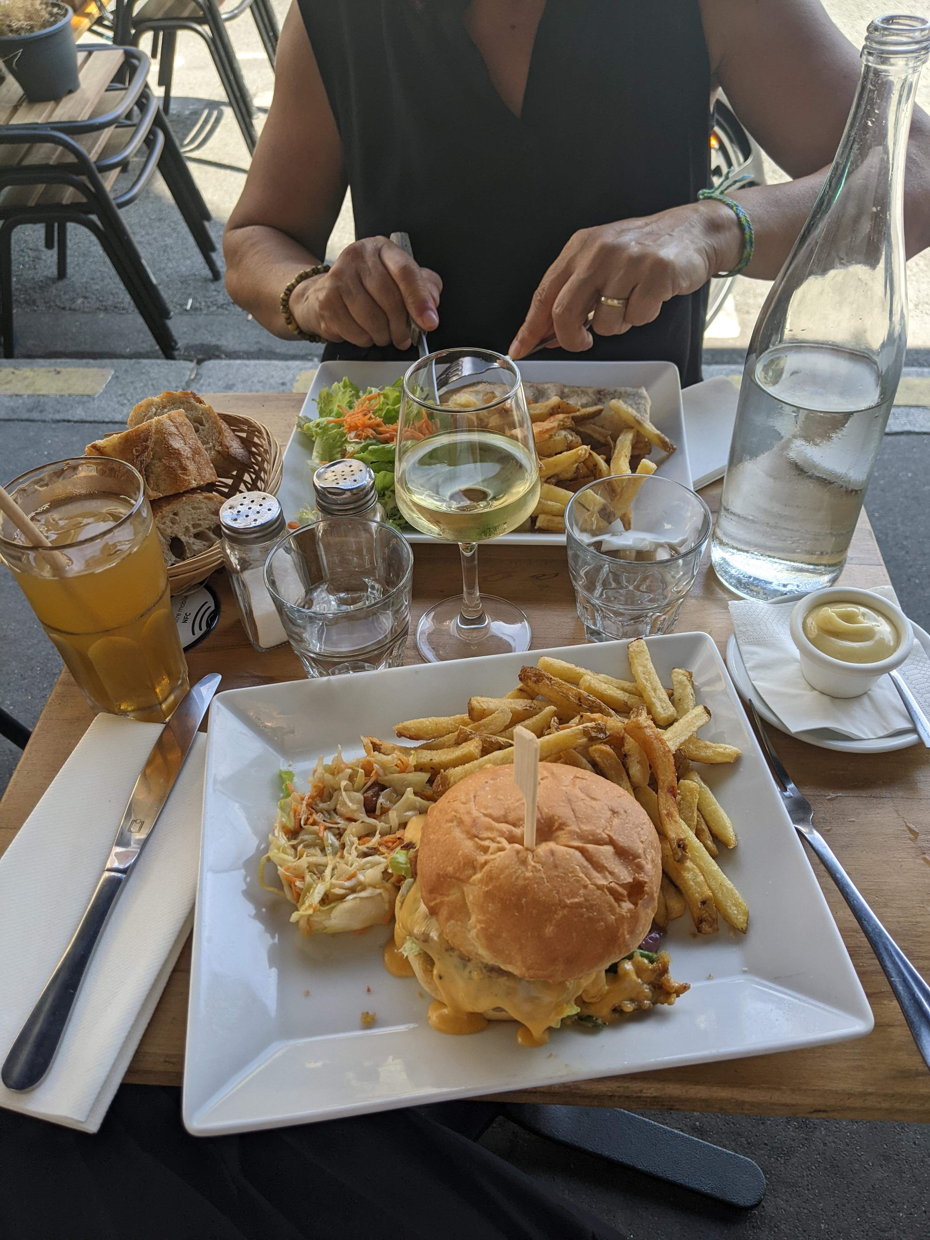 La planche mixte est énorme et variée. Les frites de patates douces sont succulentes,le pain est bon.