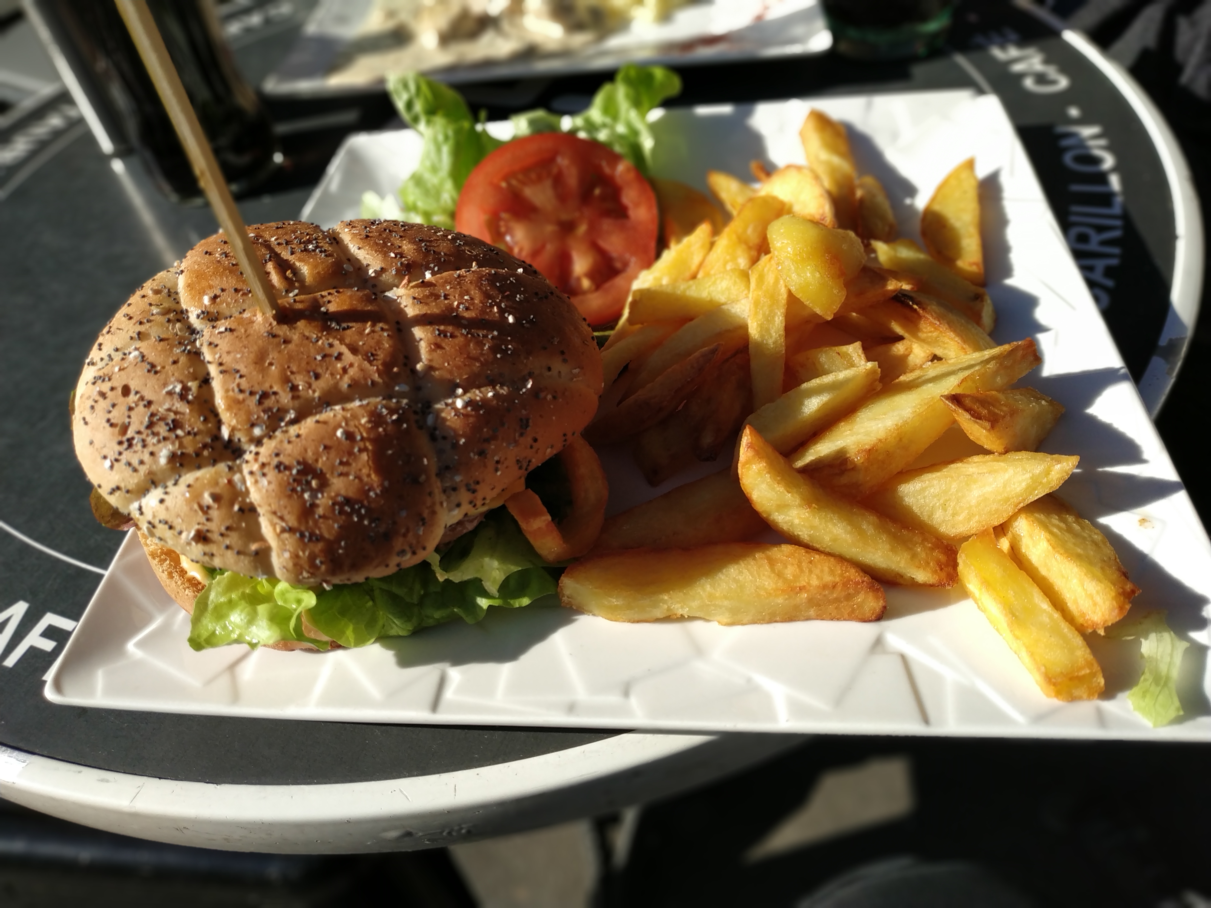Par un froid mais ensoleillé midi de février, nous avons tenté la terrasse. Bon, la vue sur le canal n'est pas la plus sympa, mais c'est toujours mieux que sur le périf . Les plats sont servis rapidement. Si le burger et la viande était bonne, le poulet et son riz faisait trop industriel et les portions trop légéres. Dommage. Le rapport qualité / prix est donc un peu trop élevé pour moi. On va dire qu'on paie la vue et l'emplacement. Par contre, service impeccable et rapide.