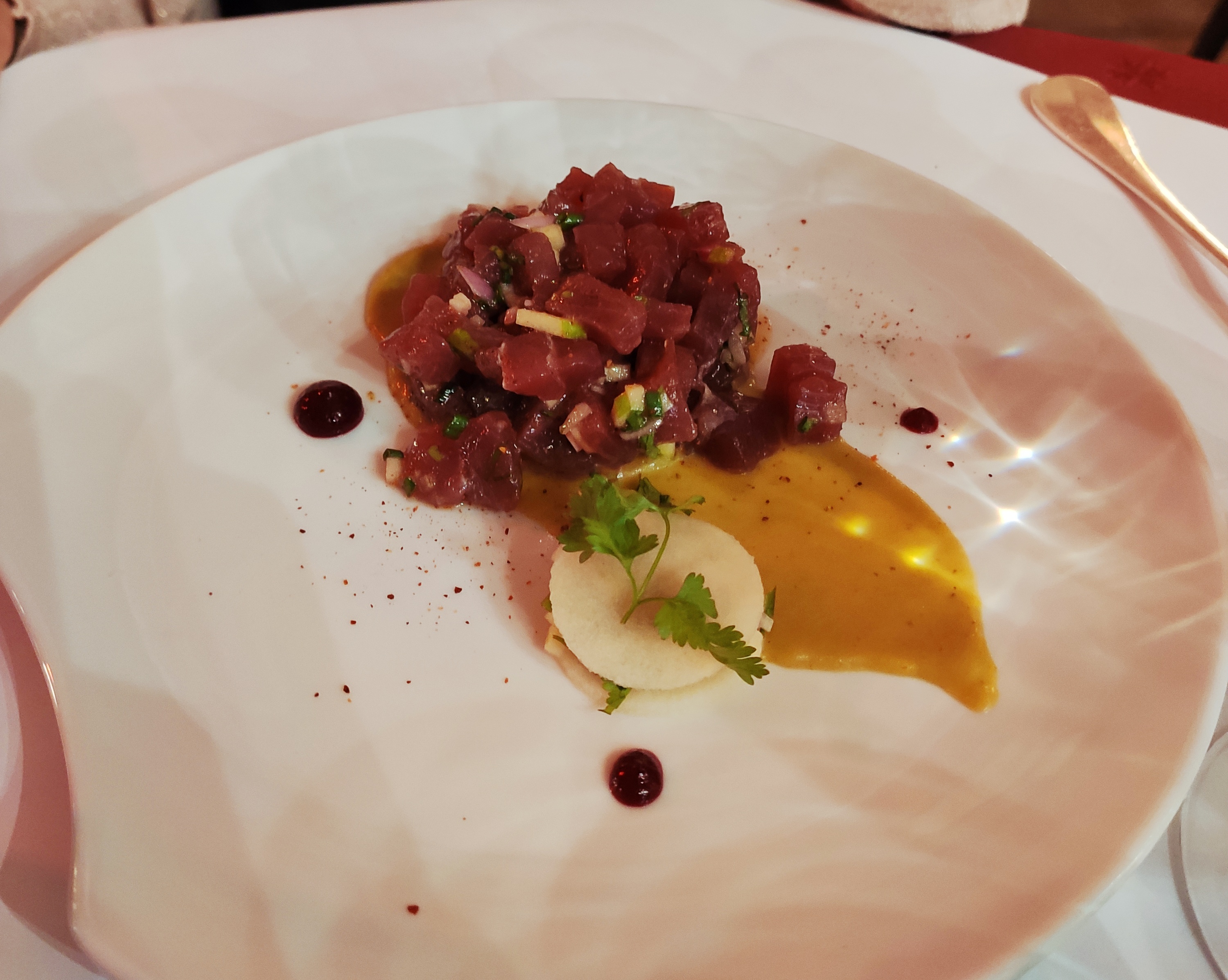 Je me suis régalé d'un tartare de thon délicieusement assaisonné et d'une echine de porc fondante à souhait. Merci à mon ami Philippe pour la découverte. Gérant un peu fatigué, victime de son succès ? Un accueil un peu froid du coup.