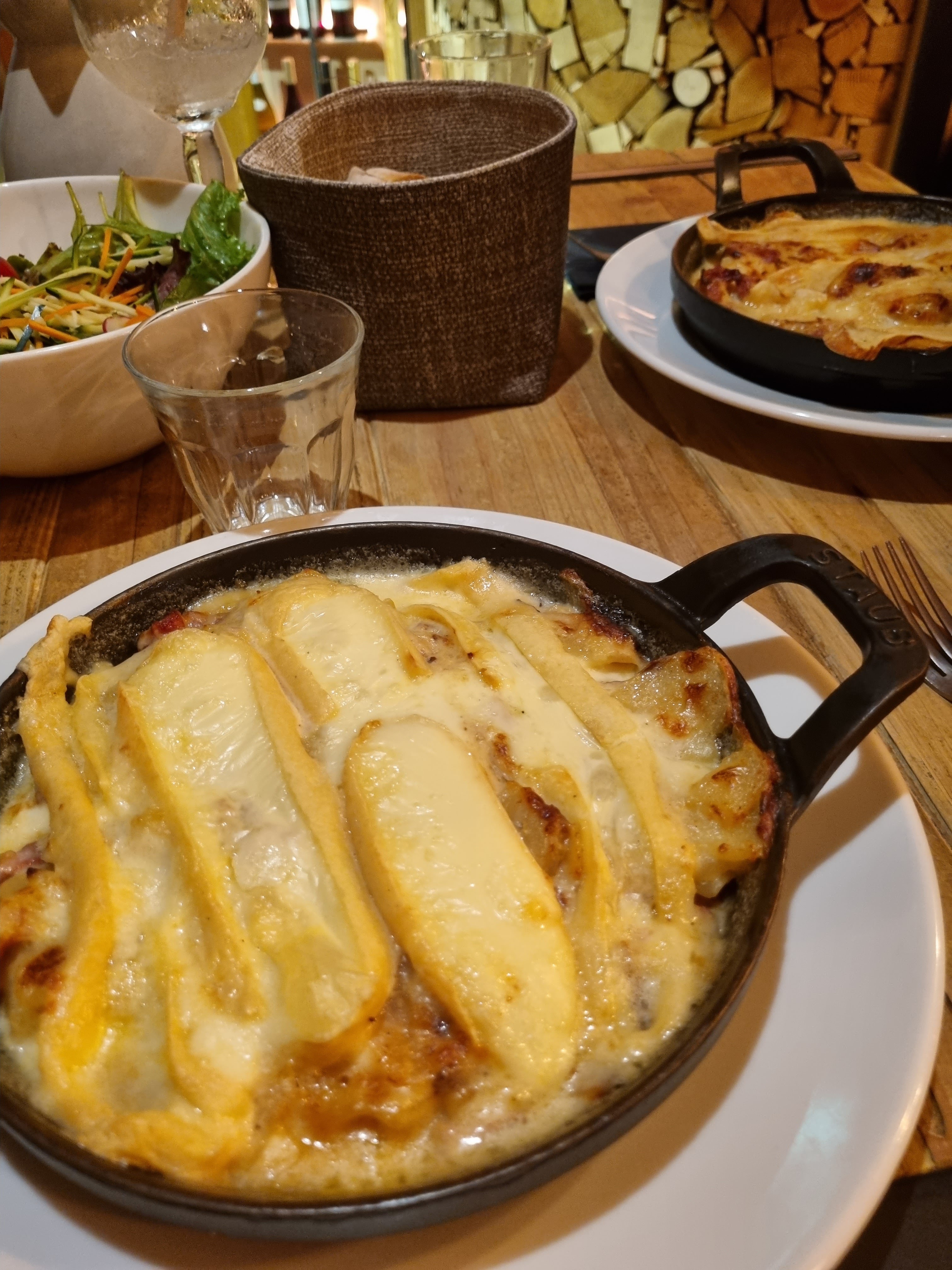 Un joli petit restaurant avec une bonne cuisine et un bon rapport qualité-prix dans l'ensemble. Quelques verres et un repas de 3 plats - nos plats principaux étaient la tartiflatte traditionnelle savoyarde, ce qui était une excellente option. Servi également avec une grande salade, personne n'a été déçu et puis une excellente Crème Brûlée pour terminer. Personnel poli et serviable, que demander de plus.