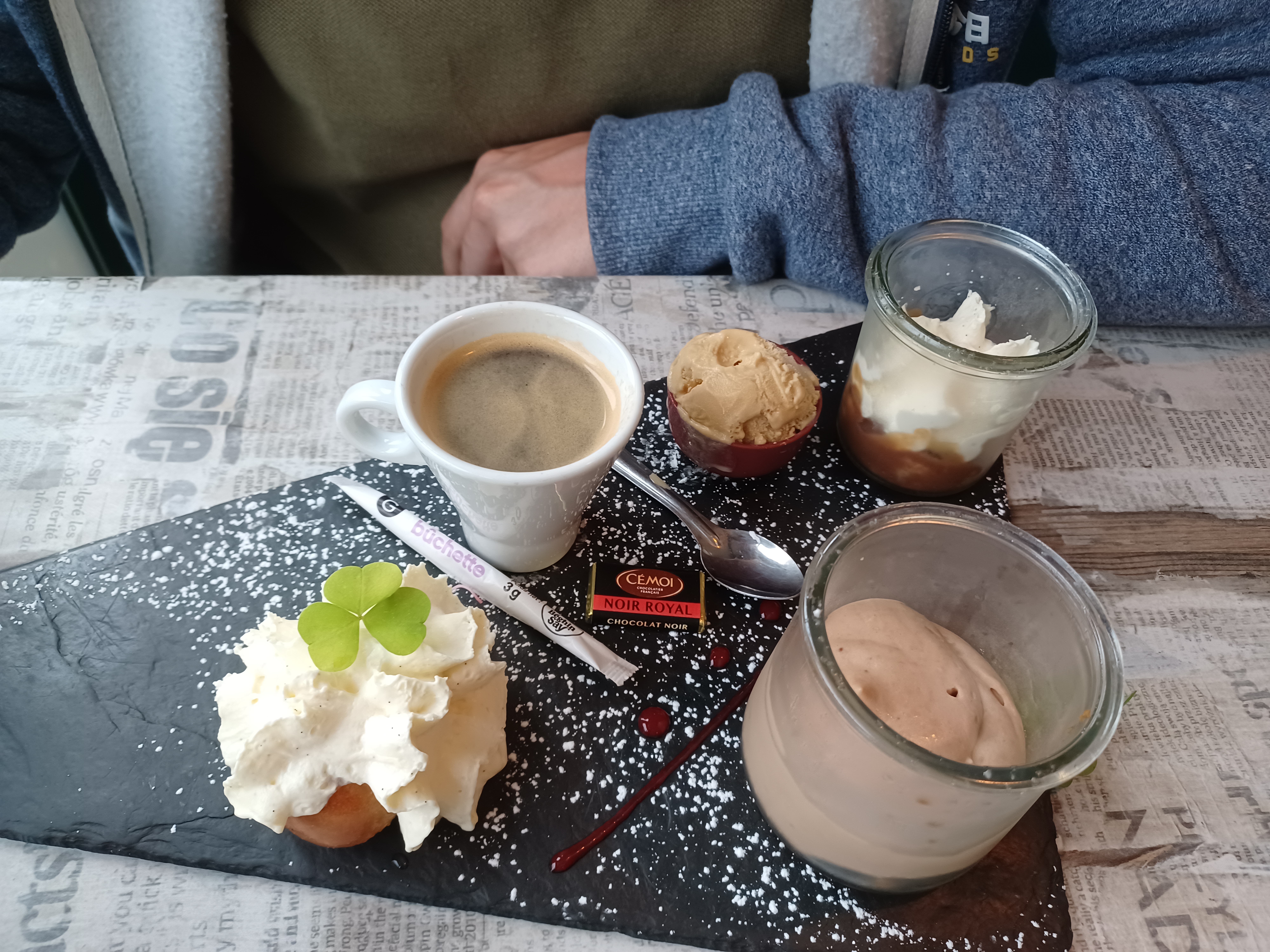 Serveuse très sympa, malgré un resto bien plein, pas trop d'attente. De belles et très bonnes assiettes, des désserts excellents. Je conseille de vous y arrêter manger, mais réservez avant.