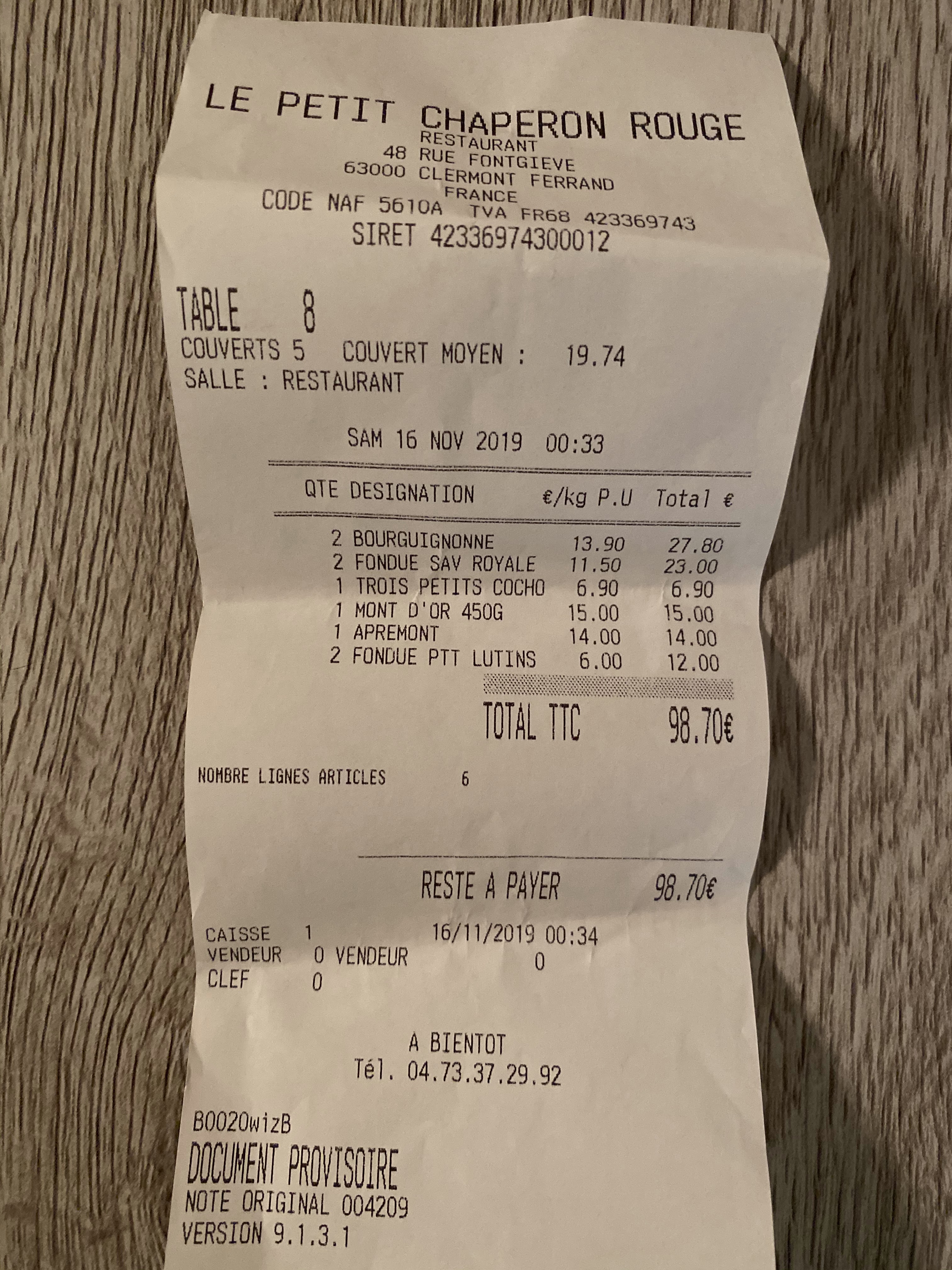 Comme disait Gandalf fuyez pauvres fou j'aurais dû l'écouter... Le petit chaperon beurk est à éviter absolument. Le fromage est d'une qualité plus que médiocre. Jésus transformait l'eau en vin, quant au restaurant il transforme le fromage en huile... Personnellement on préfère la première transformation. Souhaiter moi bonne chance de ne pas tomber malade moi ou ma compagne cette nuit. De plus, la mauvaise foi de la patronne quand on lui a dit que son fromage n'était pas bon en disant 'il est meilleur dans son pays... Bref le resto d'à côté à de beaux jours devant lui. XOXO