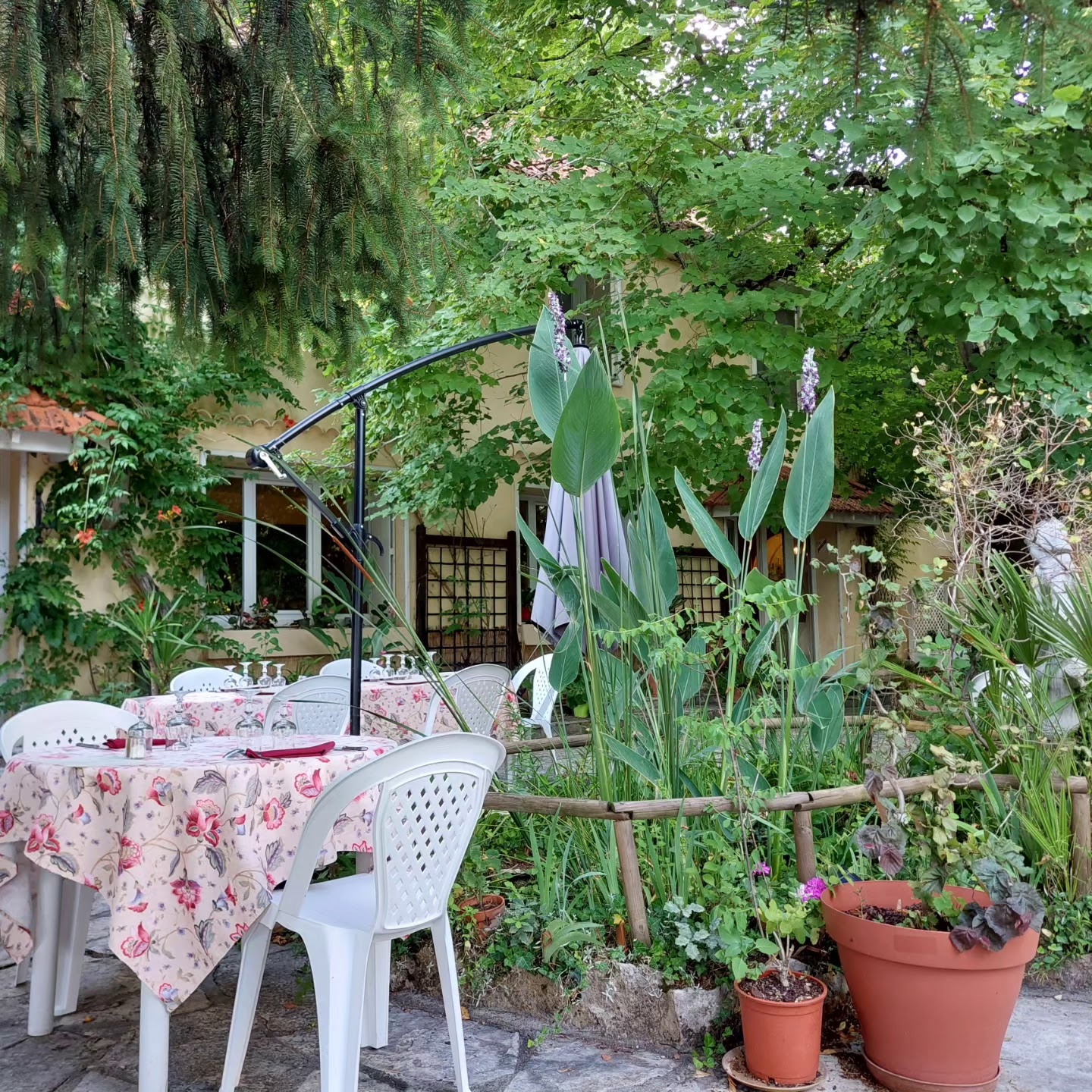 Magnifique cadre de verdure ..et repas gastronomique. Service impeccable ,et très sympa. A recommandé.