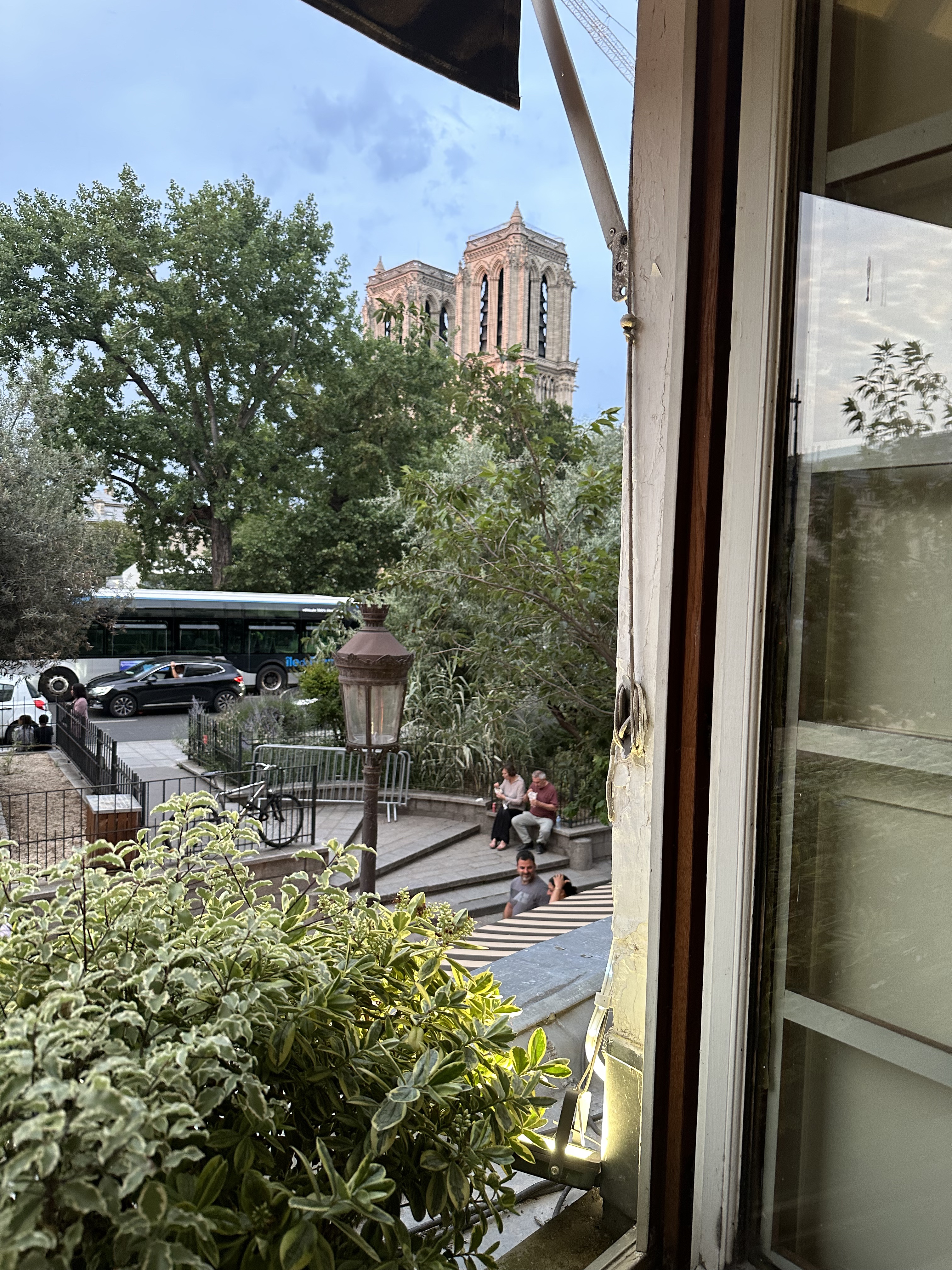 Très belle vue sur Notre Dame de Paris. Personnel très bien. Très bon.