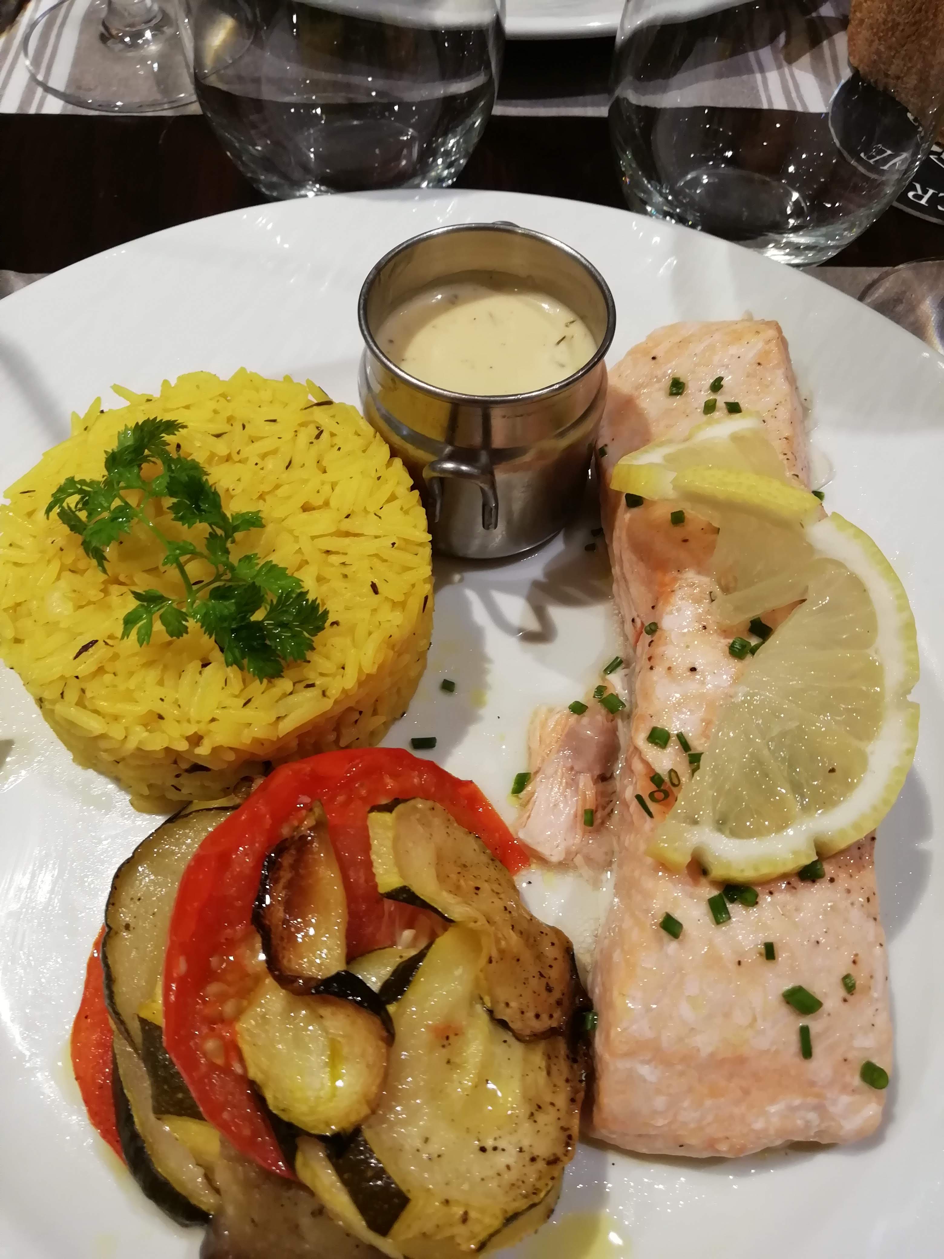 Moment agréable. Première fois que je déjeune dans ce restaurant. Une belle découverte. Des produits frais et de qualité. J’ai dégusté et aimé le risotto au saumon.