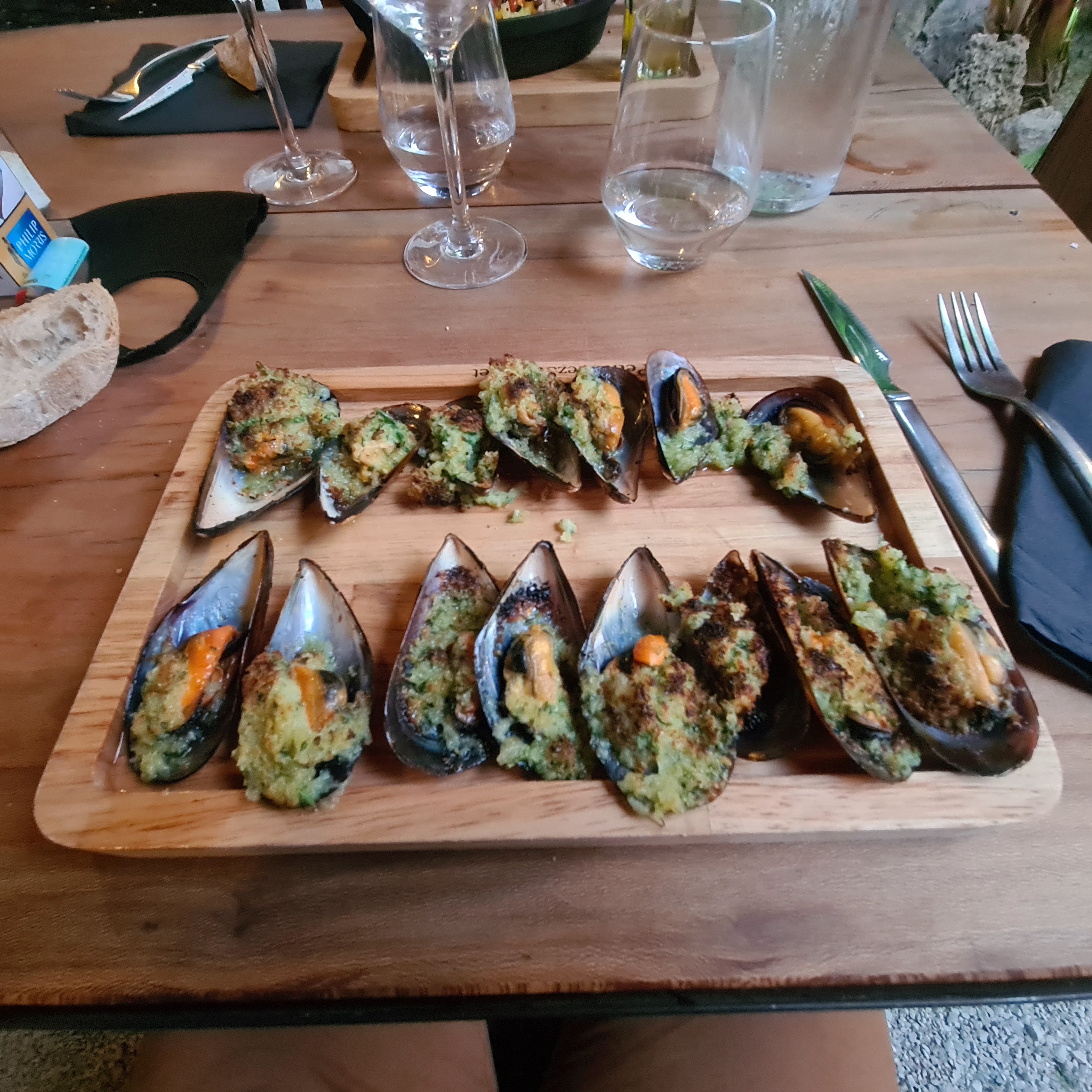 Peu de plats Mal détaillés en plus, viande tellement cuite que c'était du carton mais j'avais tellement faim que je me suis forcé. Frites surgelées cuites à la friteuse immengeables car ma femme est belge et fait les meilleures frites au monde 😎 apéro et entrée moules farcies au top 👌😇 je voulais impressionner ma femme Elle s'est foutu de moi MERCI 👿