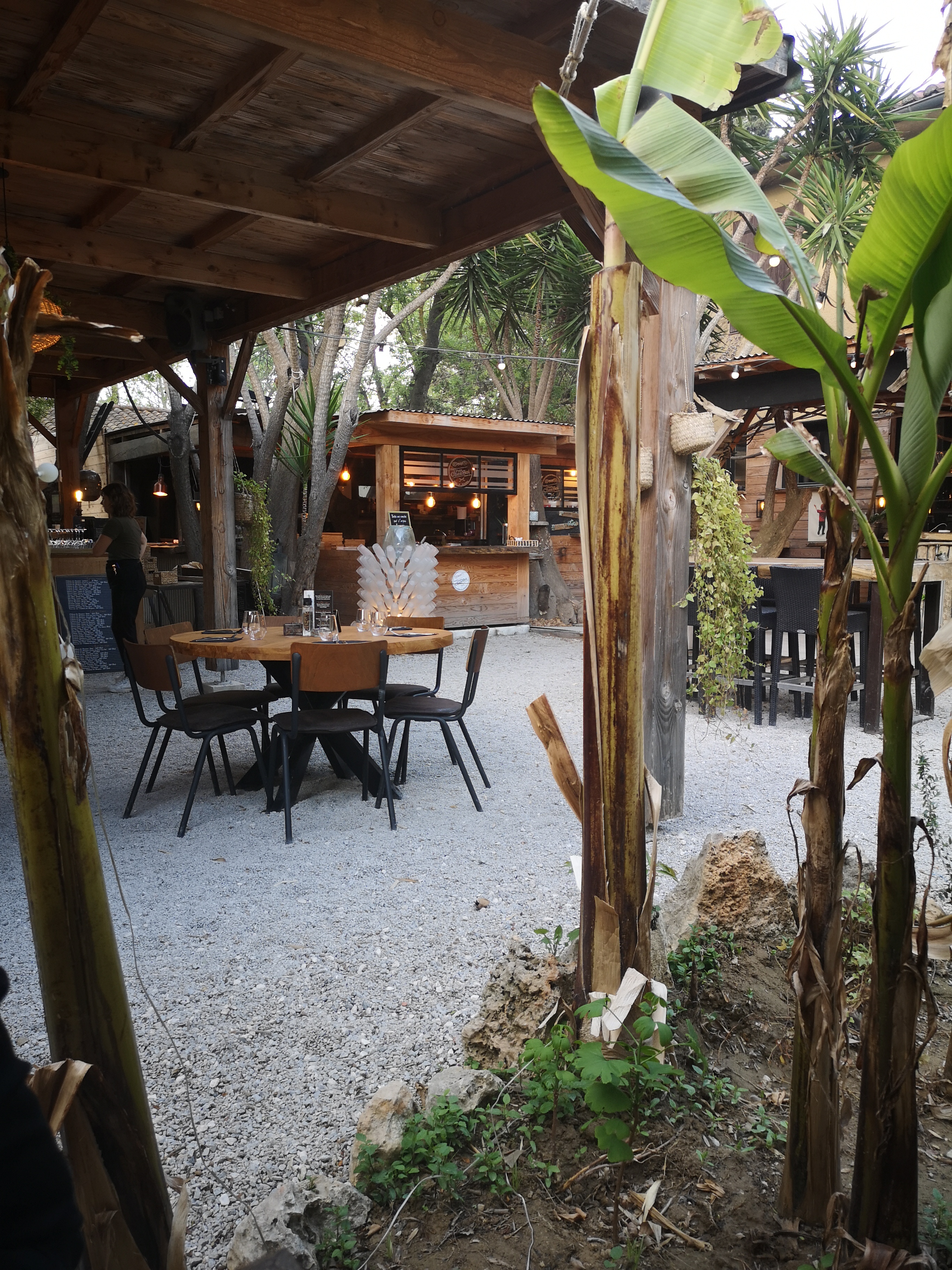 Derrière les palissades en bois vous serez émerveillé de découvrir un jardin aux bananiers, bambous, tables rustiques en bois... C'est du beau, du fait maison, avec amour et passion...La cuisine aussi!! J'adore cet endroit, tout est parfait pour un bon moment à toute occasion. Félicitations !