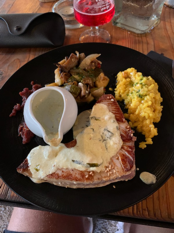 Accueil agréable, service agréable. Choix du poisson du jour hier c'était filet de loup très bon ! Très bien cuit et en accompagnement un risotto safrané avec des petits légumes c'était très bon. Dailleurs l'assiette est retourné en cuisine vide. Cadre sympathique.