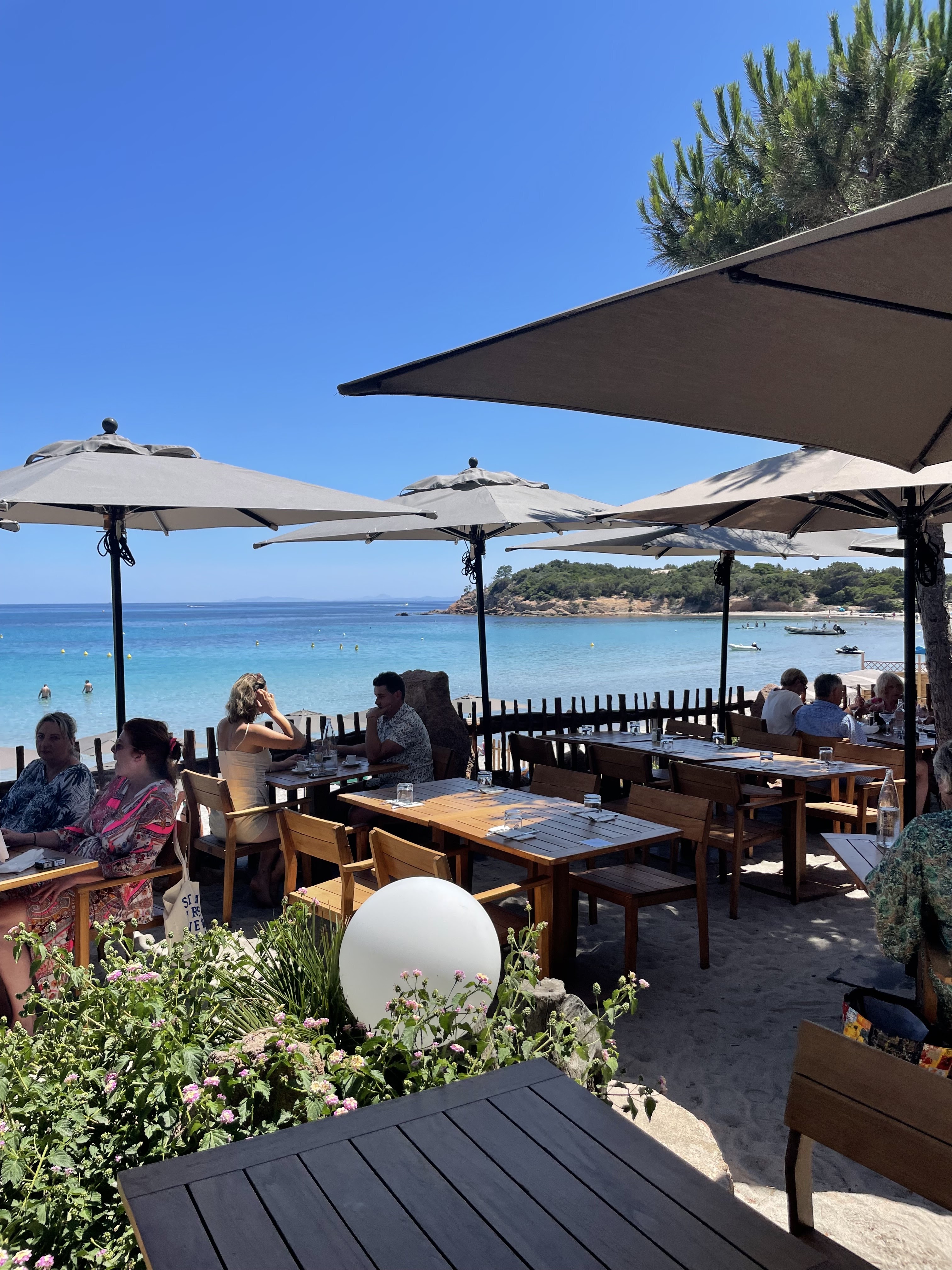 Nous avons été conquises par ce restaurant en bord de mer, si bien que nous avons finalement testé toutes leurs prestations (déjeuner, dîner, location de transat). Les points + : - la vue incroyable sur la jolie plage de Palombaggia - la décoration soignée et sans fioriture, - une carte variée terre & mer qui mixe avec brio spécialités corses et incontournables de l’été - mention spéciale pour le service qui a permis de rendre nôtre expérience exceptionnelle (merci à Mariana, Manon et votre collègue bretonne dont nous ne connaissons pas la nom)