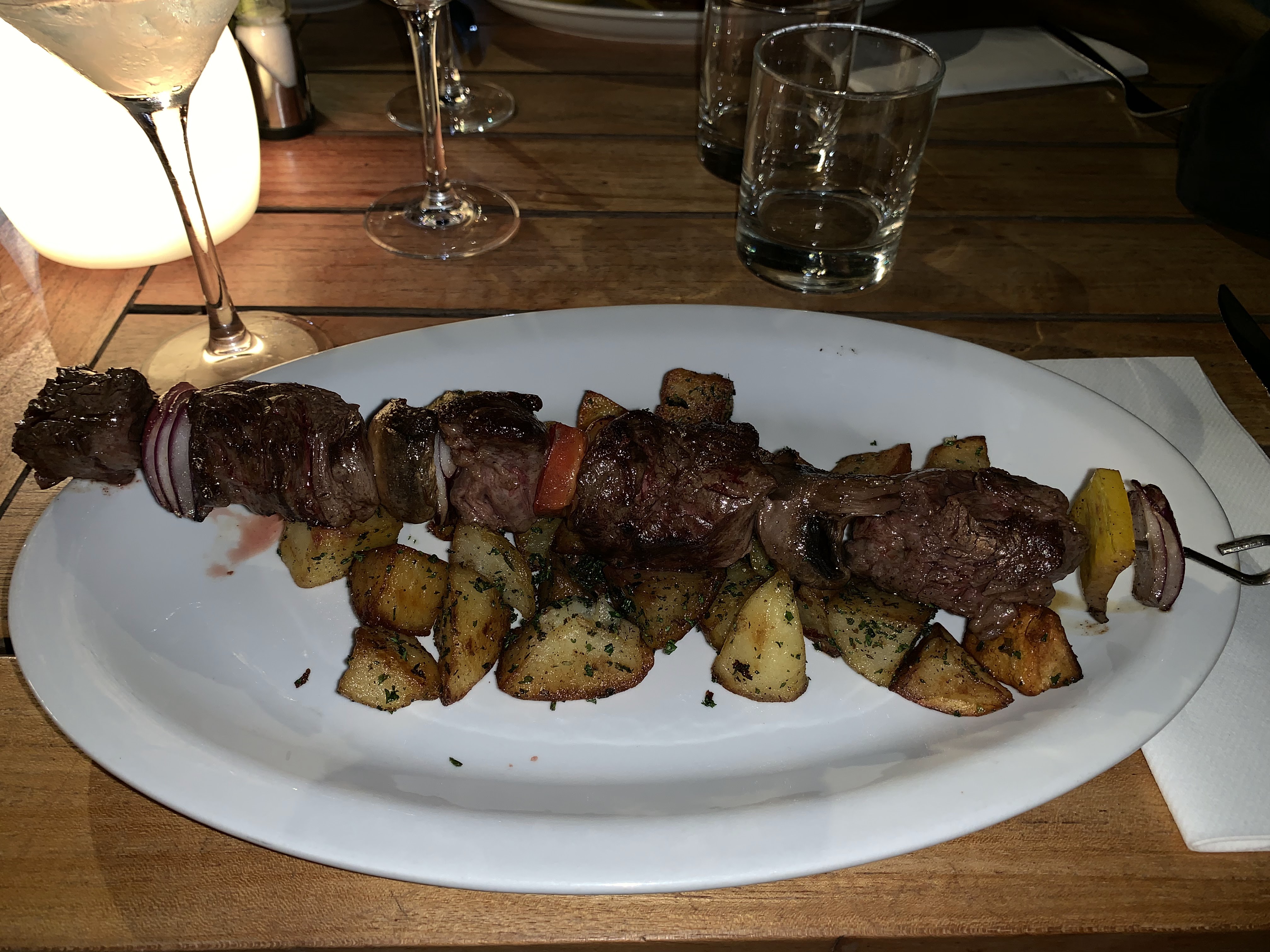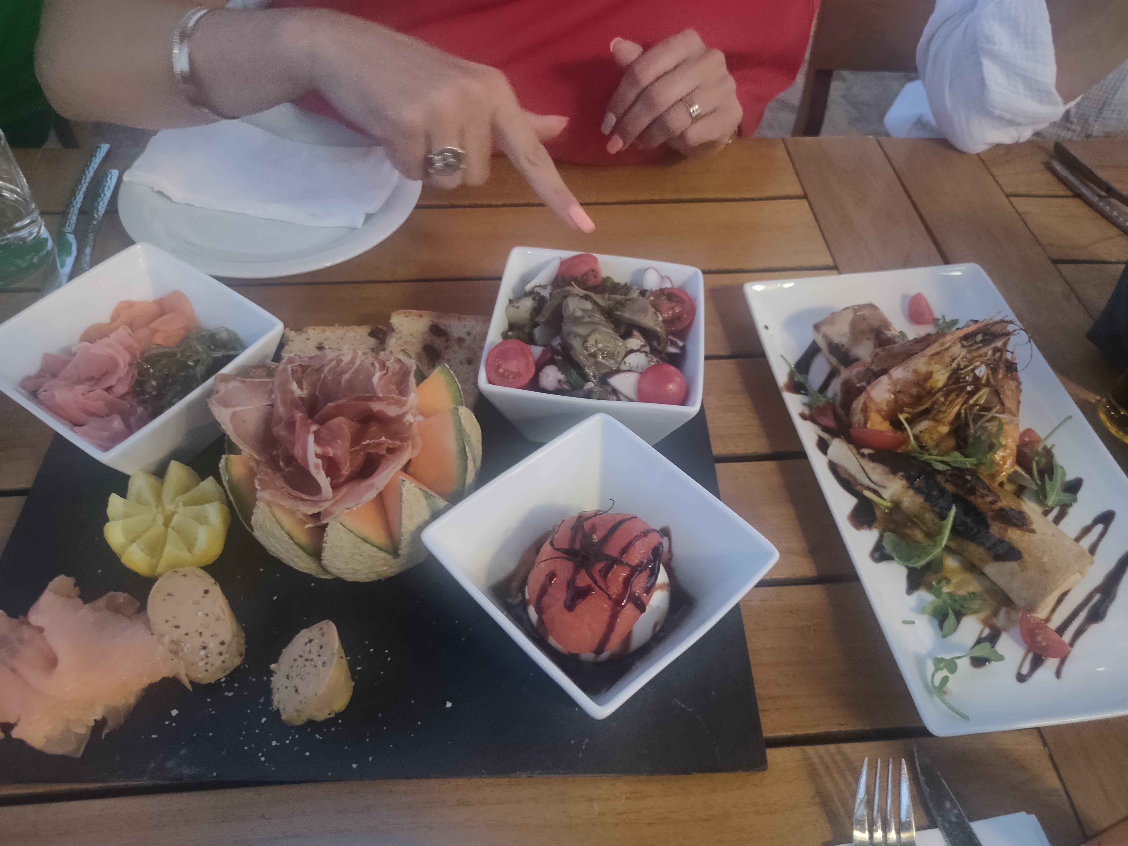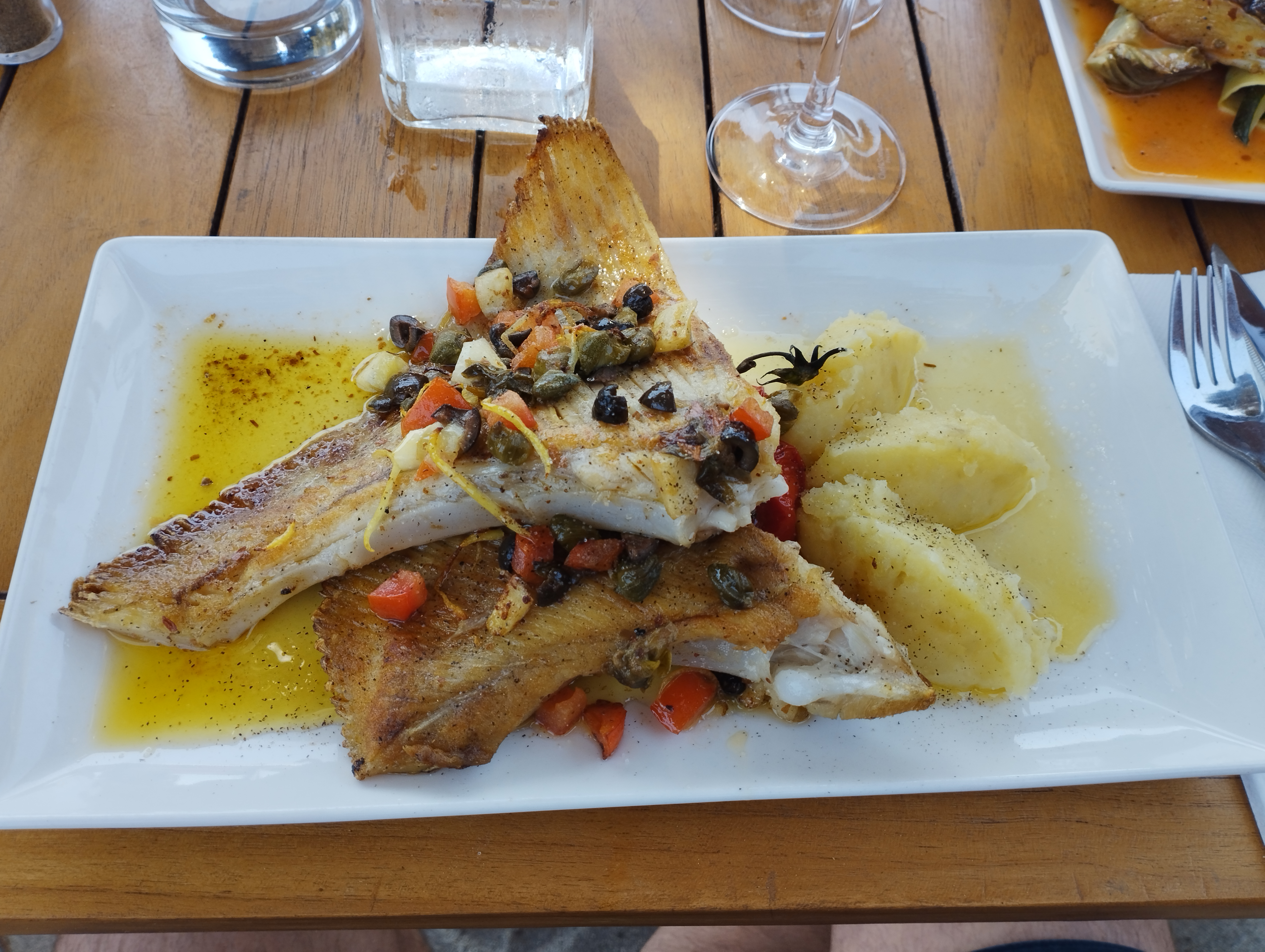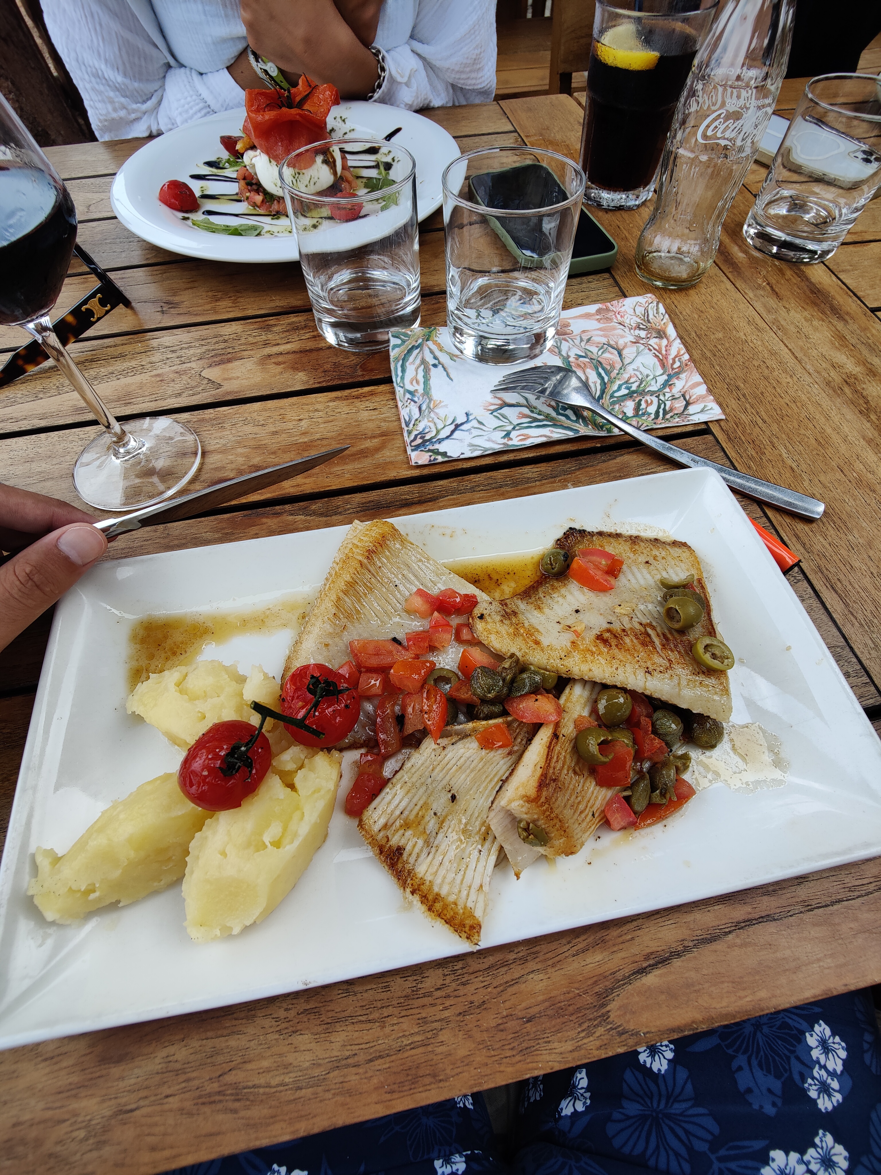 Oui trois étoiles…malgré une vue de carte postale, le poisson qui était bon, le serveur aimable, bref tout ce que l’on peut attendre d’un restaurant de cette gamme. MAIS…dès la pose des plats…une dizaine ou quinzaine (sans exagérer) de guêpes viennent se poser dans les plats ou nous frôlent, durant tout le repas. Les trois tables à nos côtés ont eu la même mésaventure. Manifestement je pense que c’est quelque chose de courant car le serveur n’a pas jugé bon de nous changer de table mais a posé du marc de café. Puis les moustiques vous accompagnent pour le désert. Donc en somme : très bon resto soyons honnêtes, mais nous n’avons pas pu réellement apprécier le travail de bouche offert par ces professionnels et rendre honneur à leur art, du fait de ces insectes voraces…nous avons mangé en vitesse et sous le stress, très loin de l’idée de détente offert par le cadre du lieu. Petite photo jointe avant l’arrivée des bestioles…