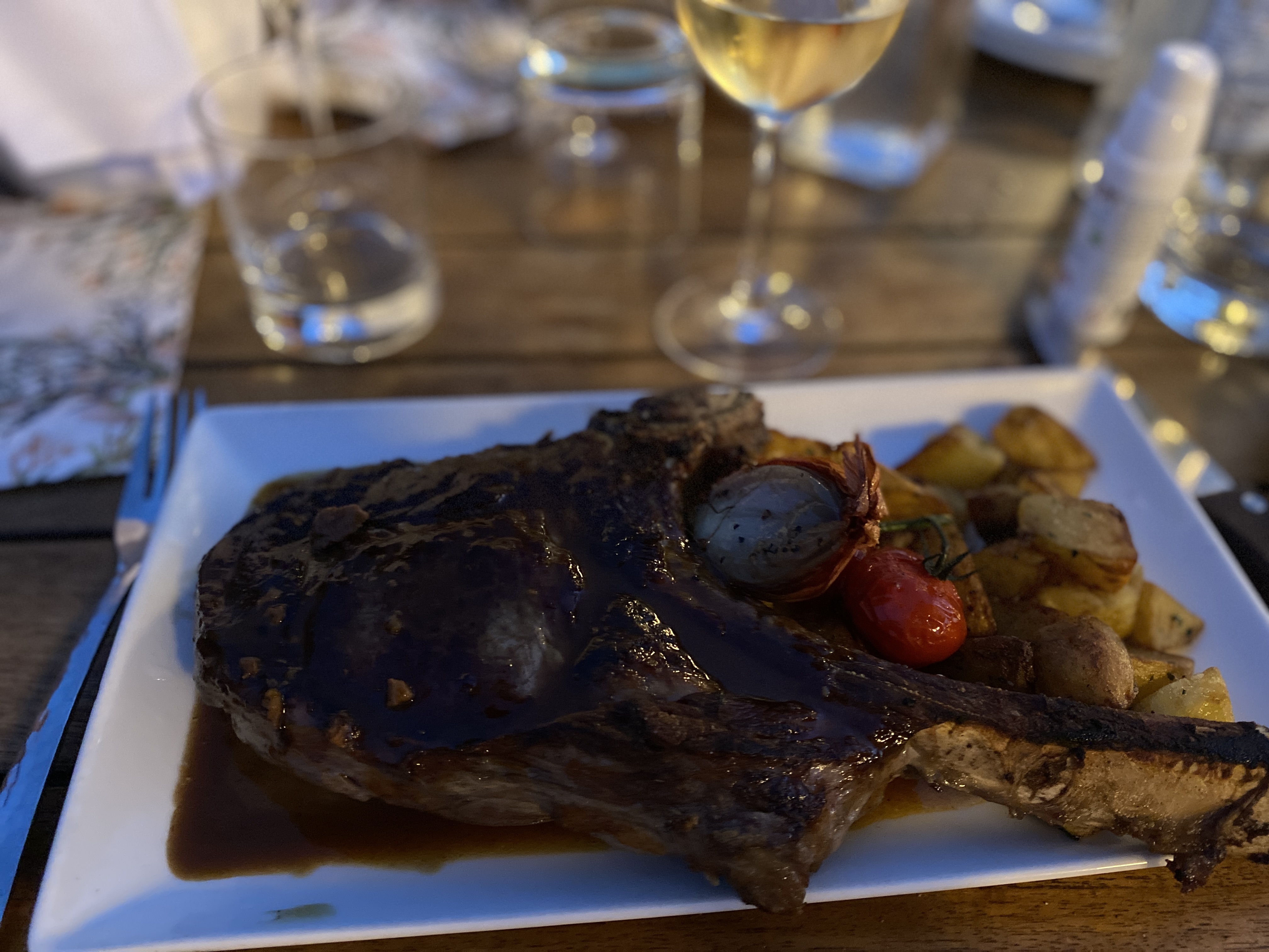 Très bon emplacement. Serveurs souriants. Belles assiettes, j'ai testé les côtelettes de sanglier mais je suis tombé sur un plomb de chevrotine qui était logé dans la viande et que j'ai croqué comme vous pouvez le voir sur les photos...