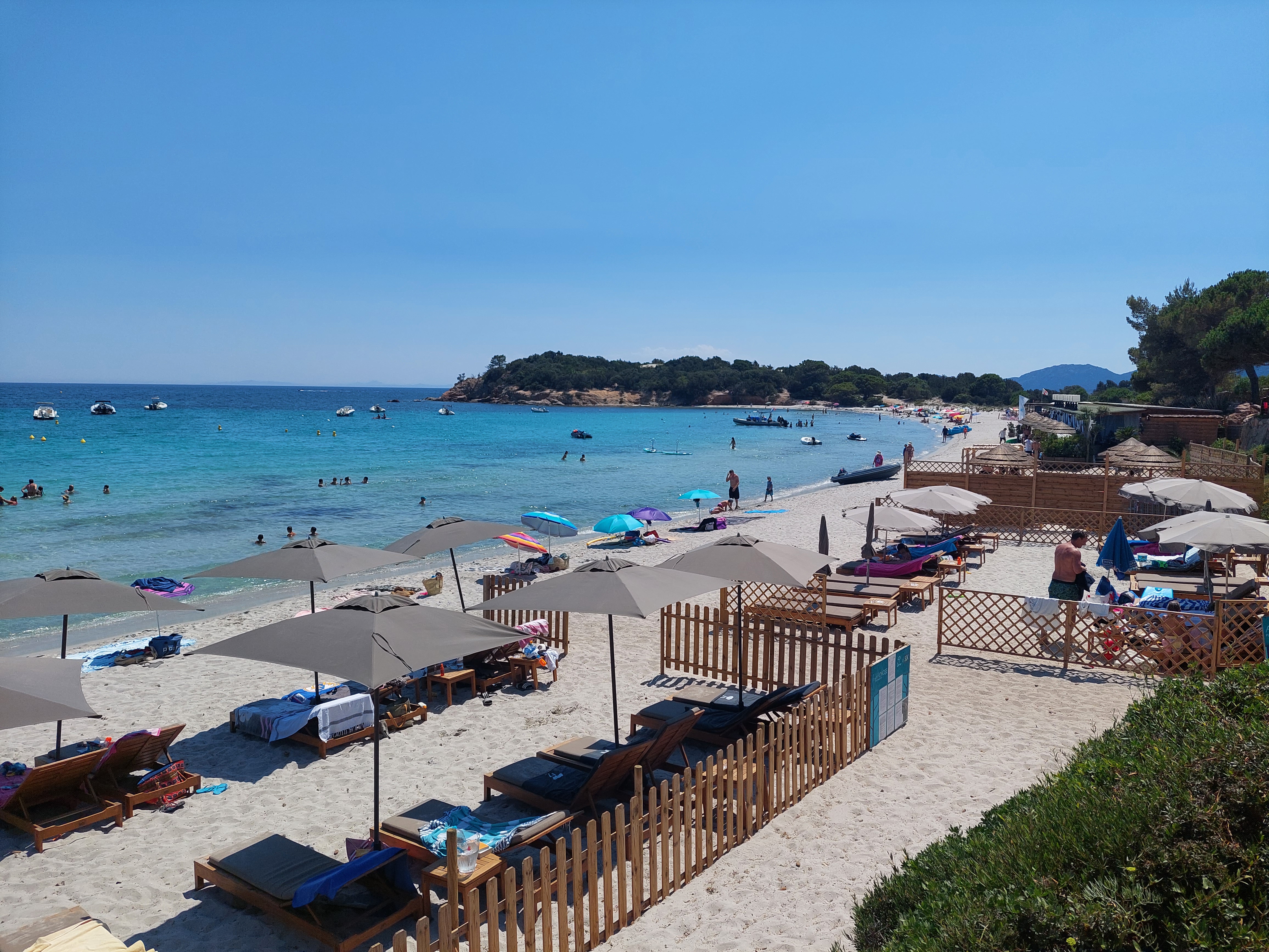 Établissement très sympa. Idéalement situé à palombaggia. Tarifs des transats à louer raisonnable. Équipe jeune et sympa. Le seul hic c’est sûrement le tarifs des cocktails (mais le lieu explique cela) ; Et une dame âgé qui tien a m’arrêter et à me montrer ou je peut garer mon scooter A CHAQUE FOIS, alors que je lui explique à chaque fois que je suis un habitué) et parfois m’oublie, part faire autre chose, me laissant en plan.. Mise à part cette dame que j’évite car elle me faire perdre du temps de bronzage , l’établissement est sympa. Je recommande.