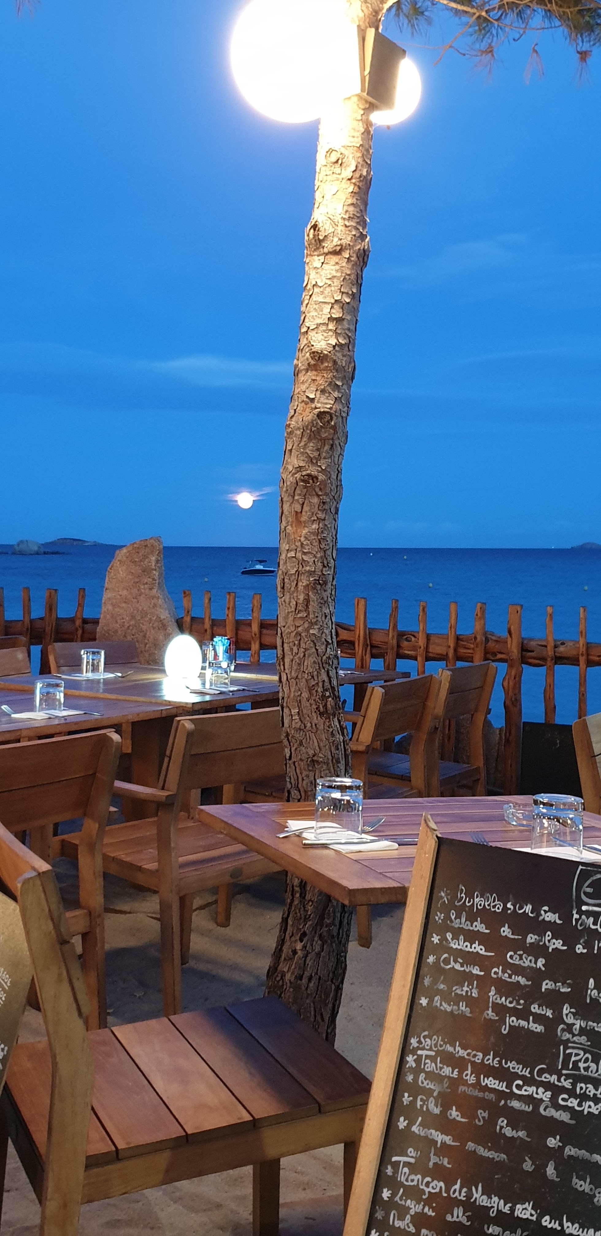 Coup de cœur à tout niveau. J'y retourne pour la 3ème fois en 2 semaines. Patron et personnel très professionnel et vraiment adorable. Les cuisiniers font du très bon travail, je me régale de l'entrée au dessert. L'emplacement est magnifique, et le petit plus c'est quand il y a des soirées chants Corses, c'est magique.