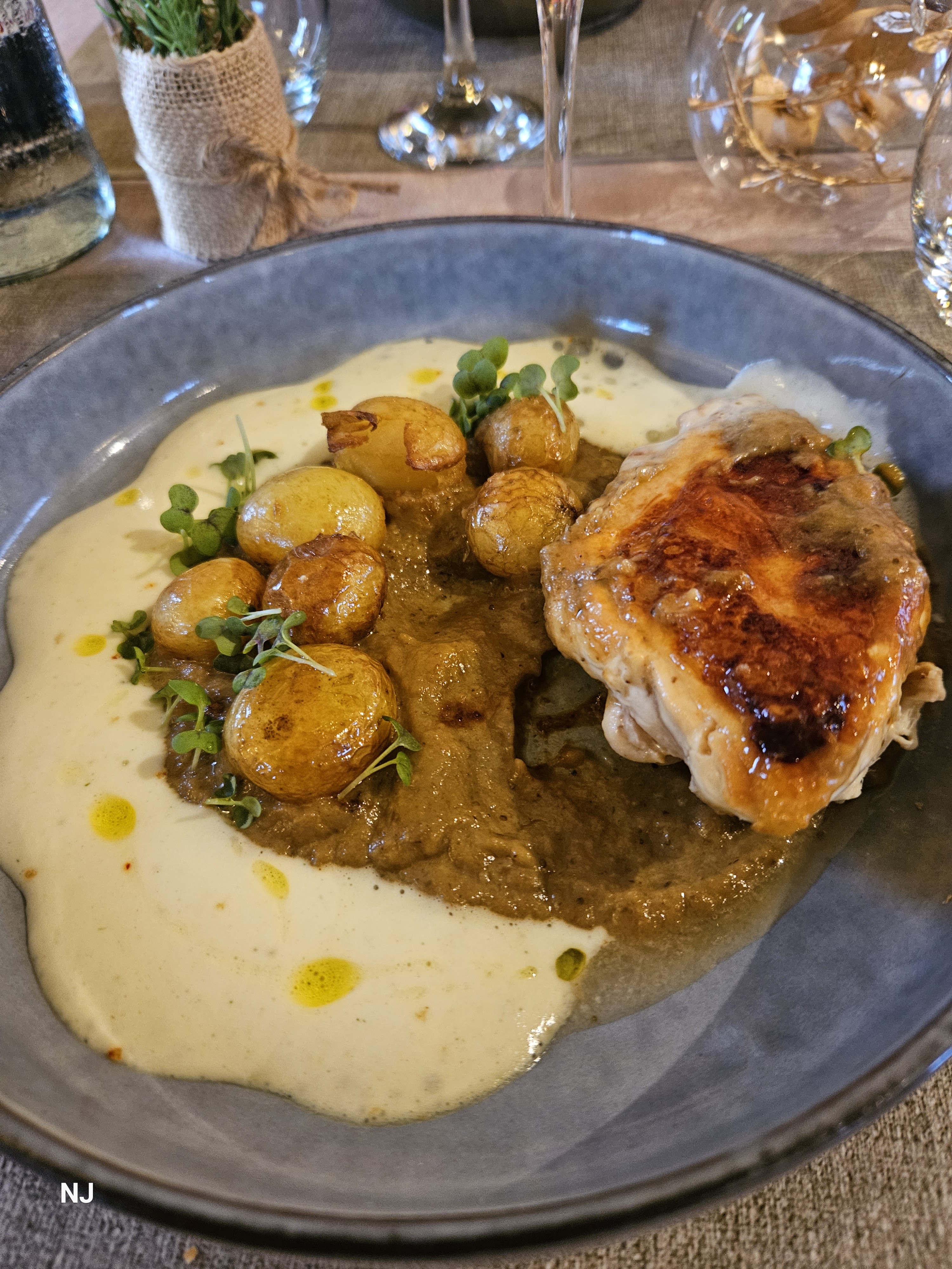 Belle présentation des plats.cuisine du jour avec de bons produits et service parfait. Seul petit bémol assiette de fromages sans grand relief. Je recommande malgré tout cet établissement qui vaut le détour.