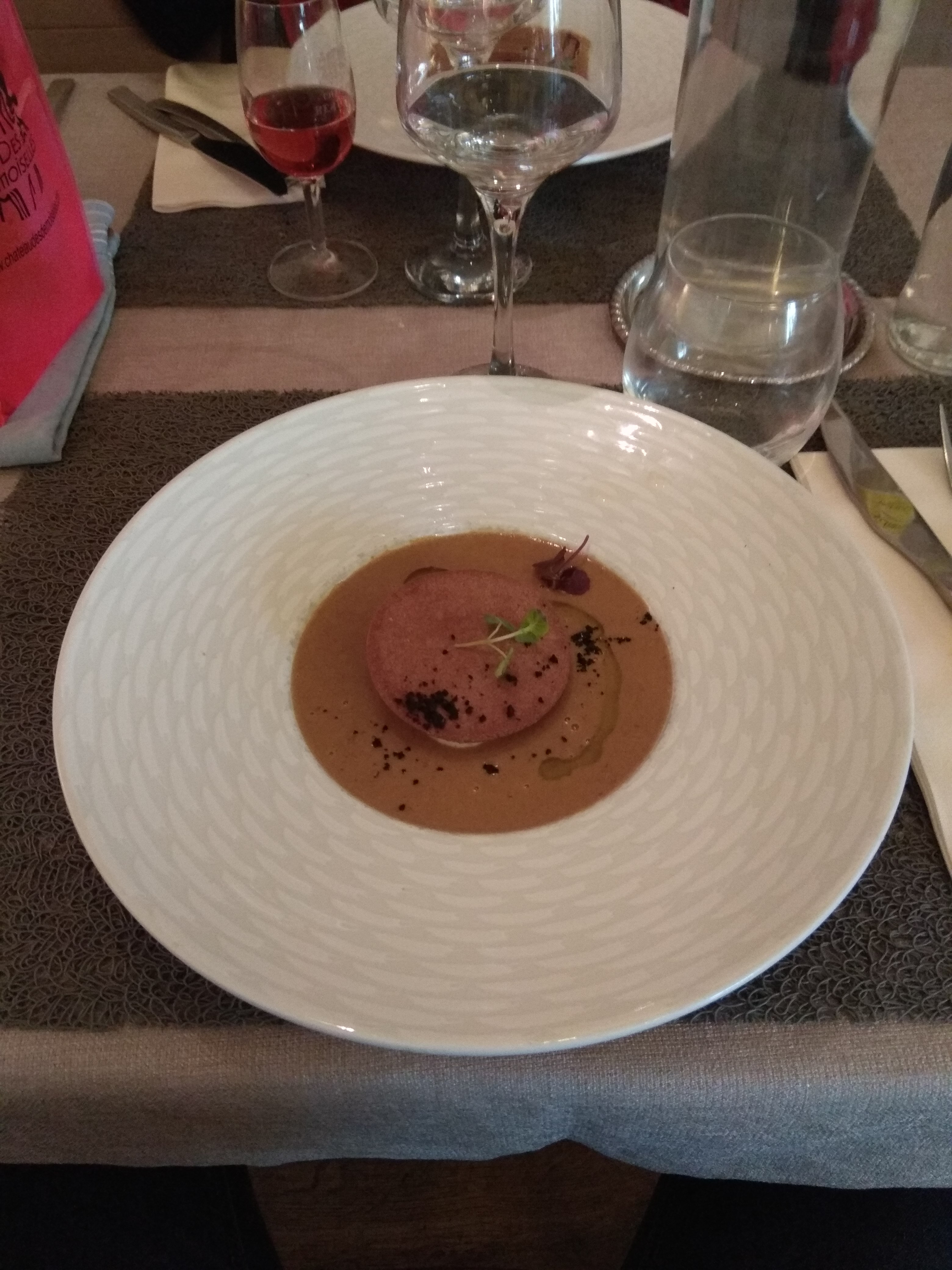 L'entrée, pourtant une 'simple' salade de melon mariné au Pinot, fois gras (pas trop), jambon, lard (ou jambon) grillé et mozzarella di buffala, m'a totalement surpris par l'efficacité du mélange des saveurs. Un régal. Vient le plat, à l'énoncé un peu gras, par la présence d'andouille notamment, mais le résultat est parfaitement équilibré. Les desserts étaient bons mais sans la surprise de l'entrée et du plat. En tout cas, bravo.